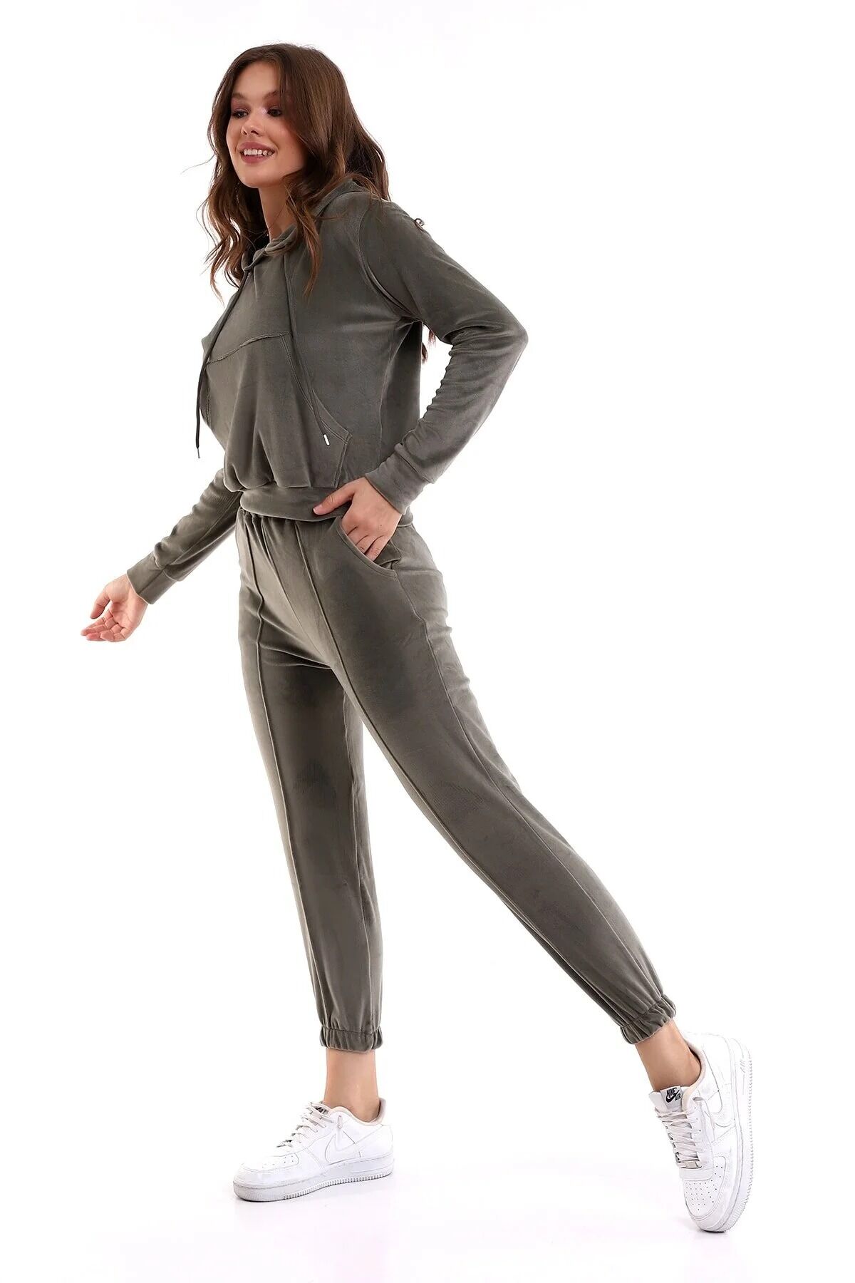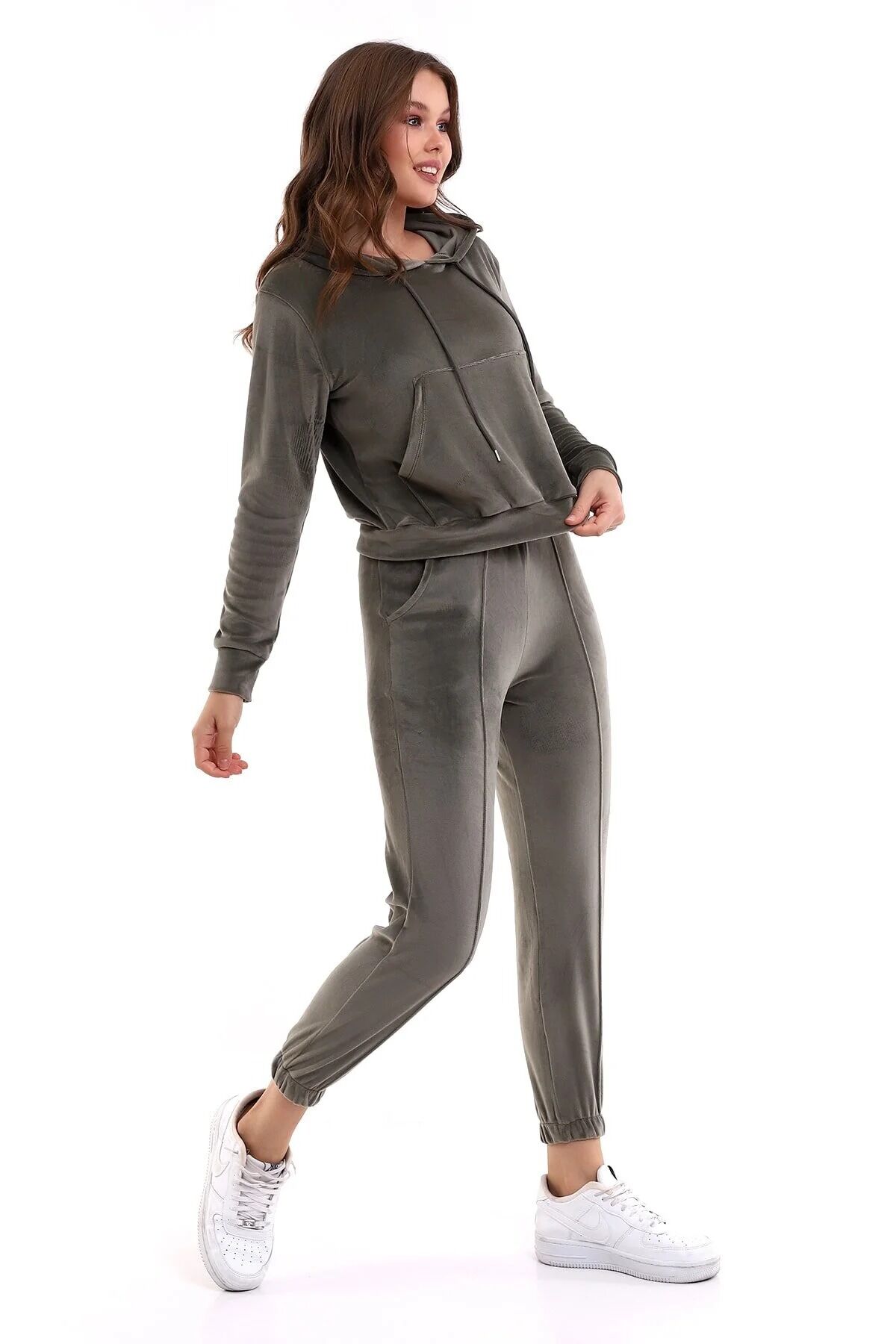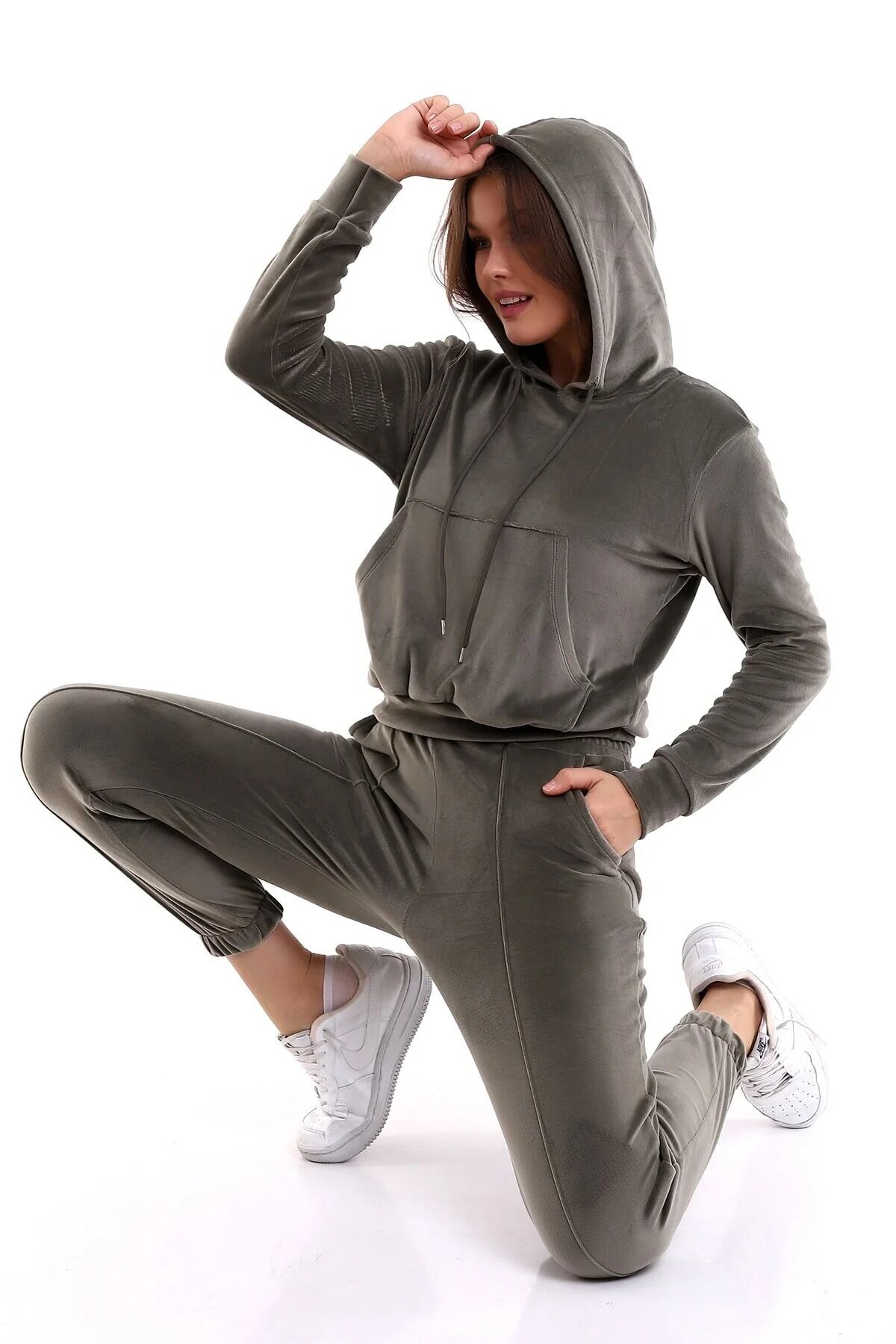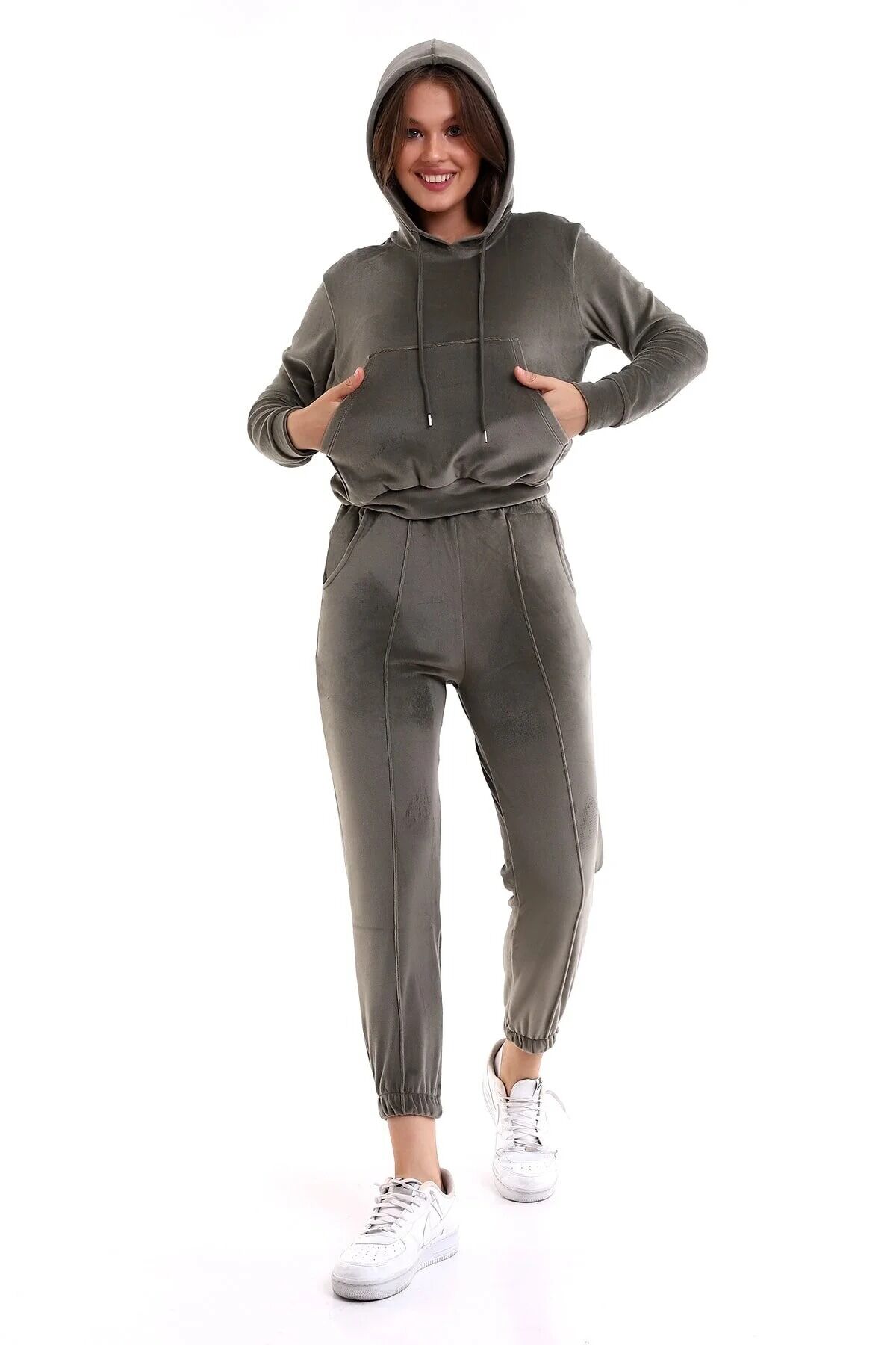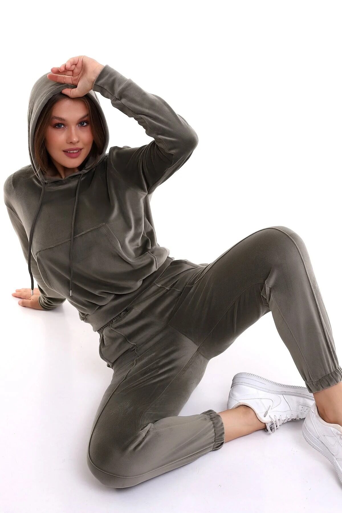 Kadın Yumoş Kadife Eşofman Takımı 6091 M - HAKİ