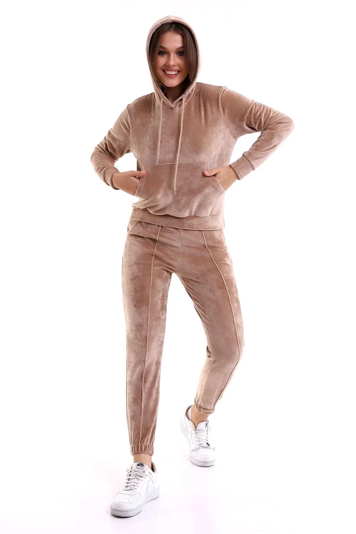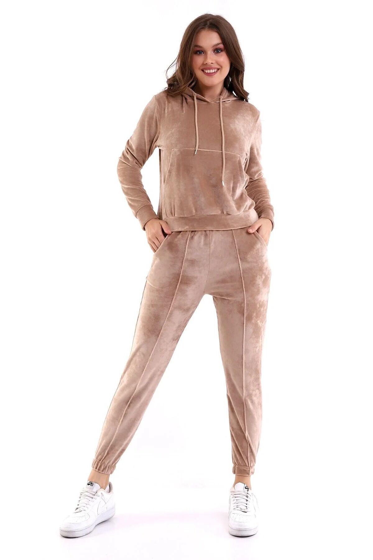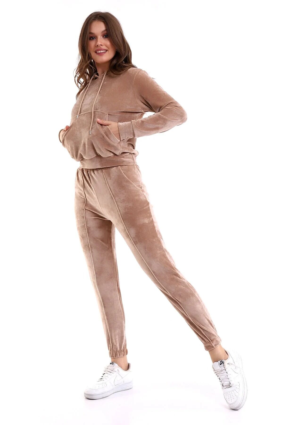 Kadın Yumoş Kadife Eşofman Takımı 6091 S - BEJ
