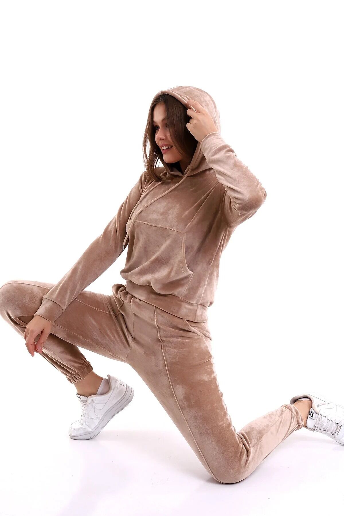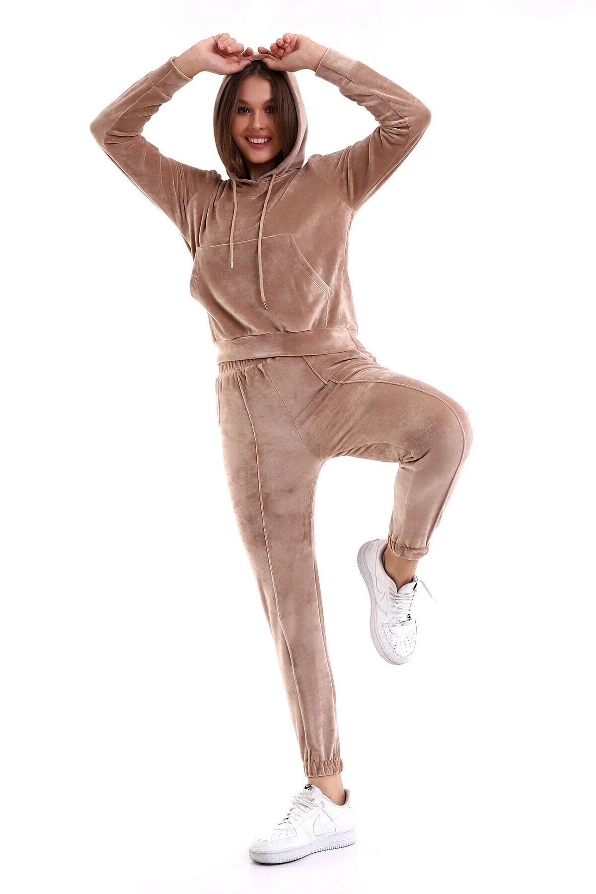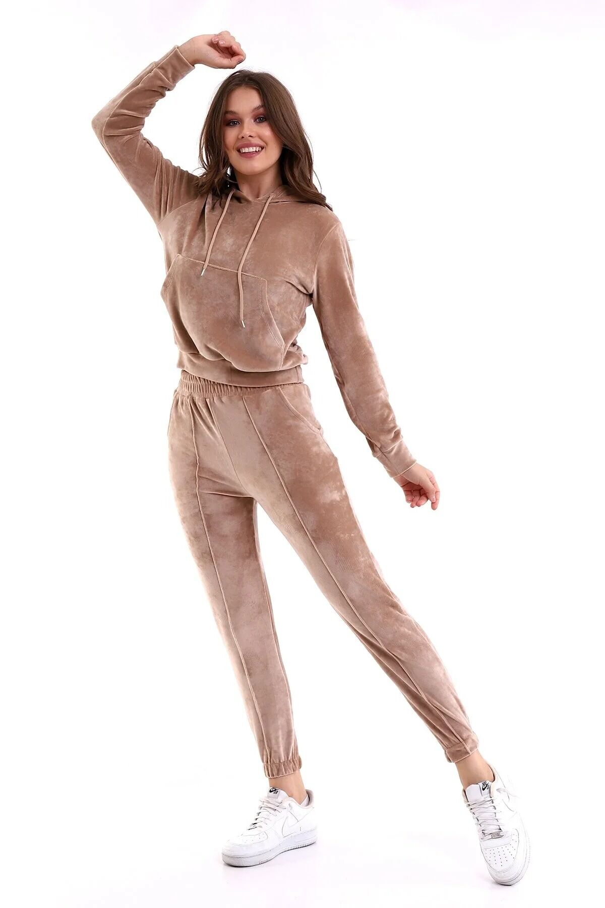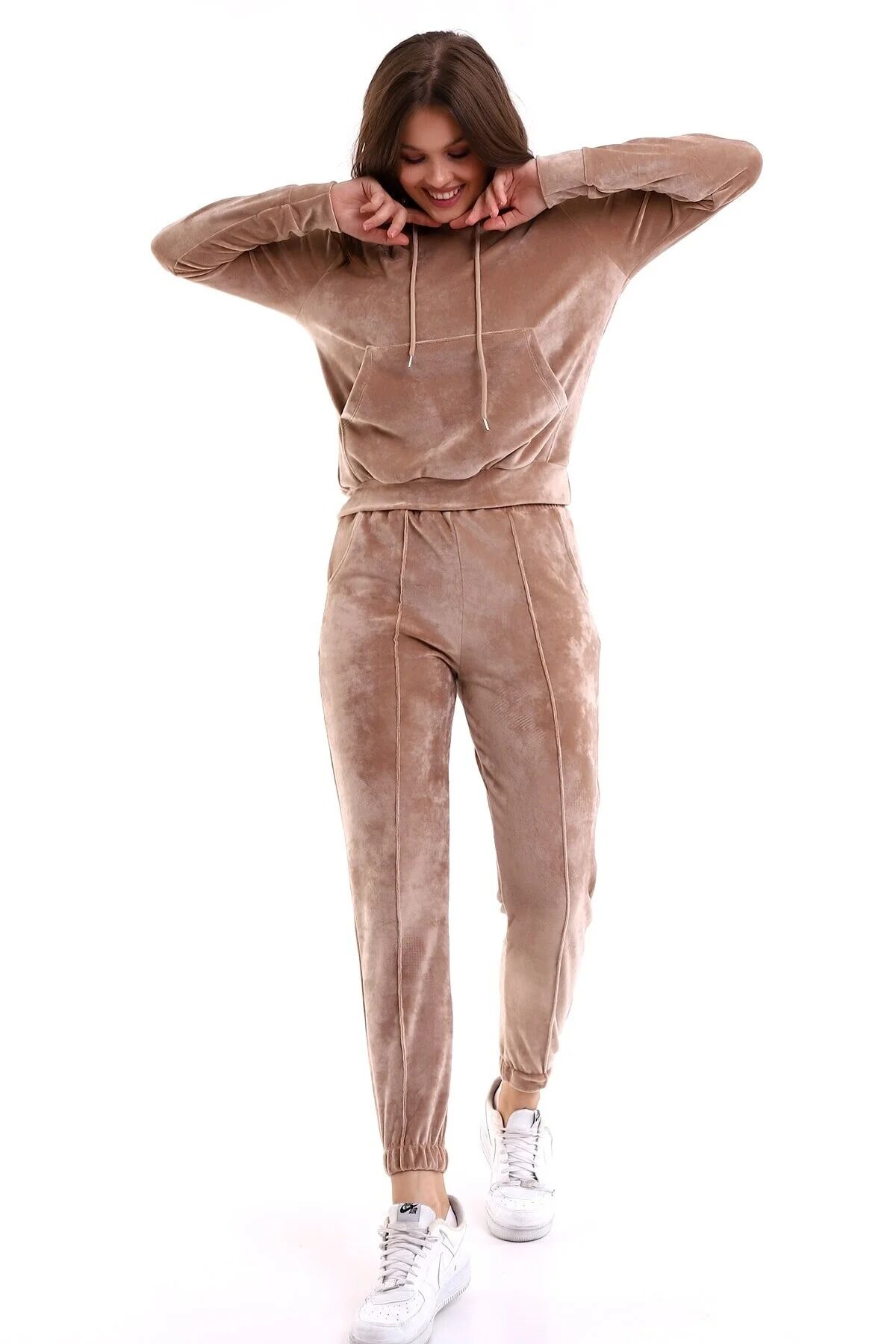 Kadın Yumoş Kadife Eşofman Takımı 6091 S - BEJ
