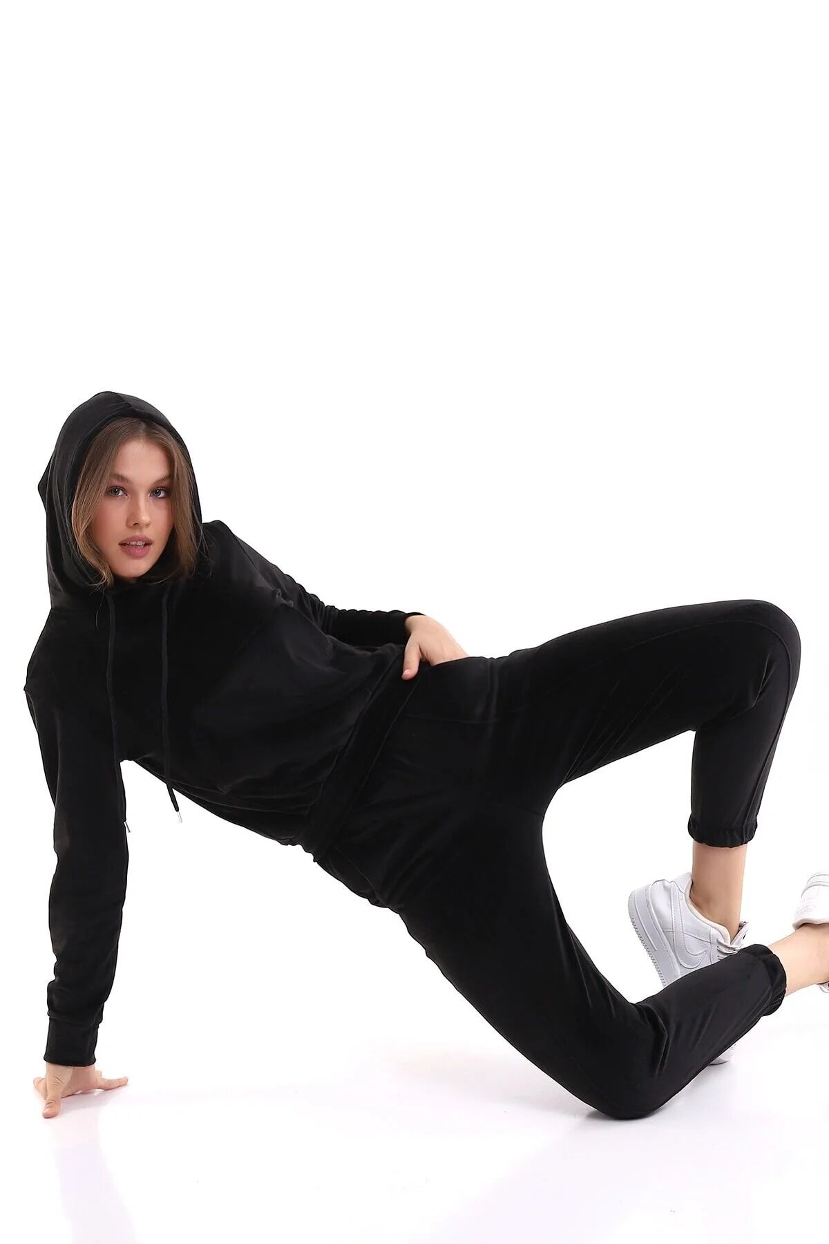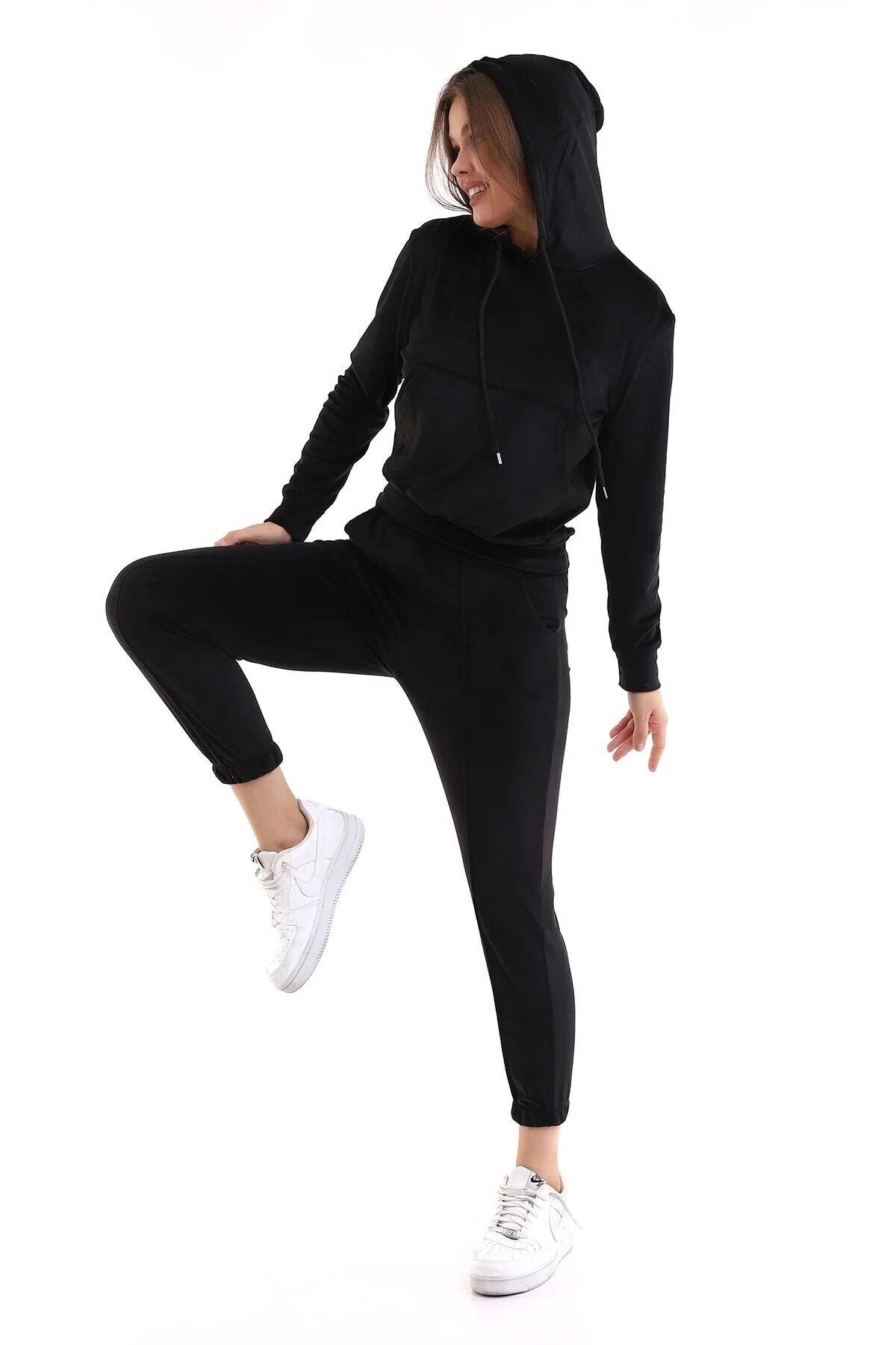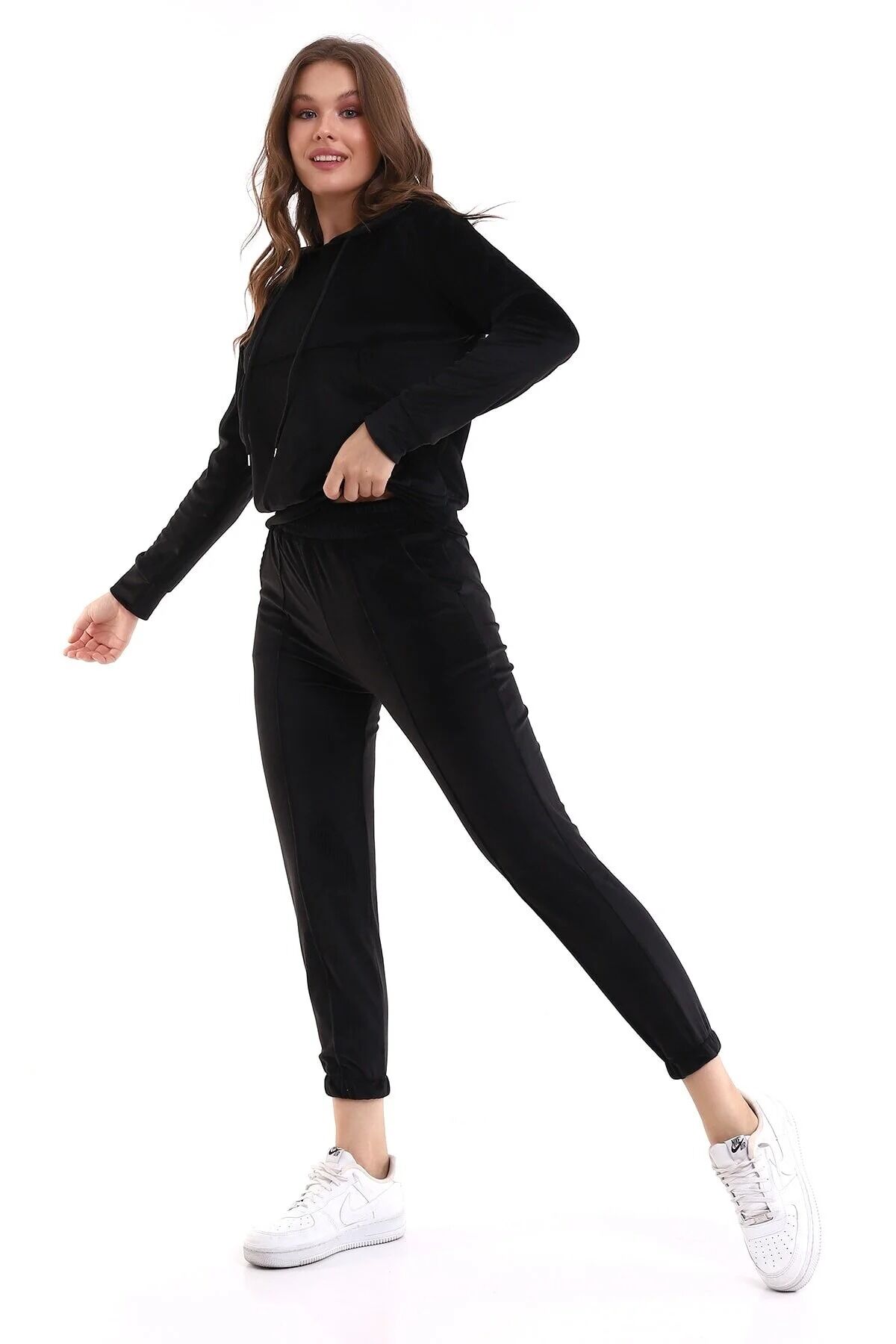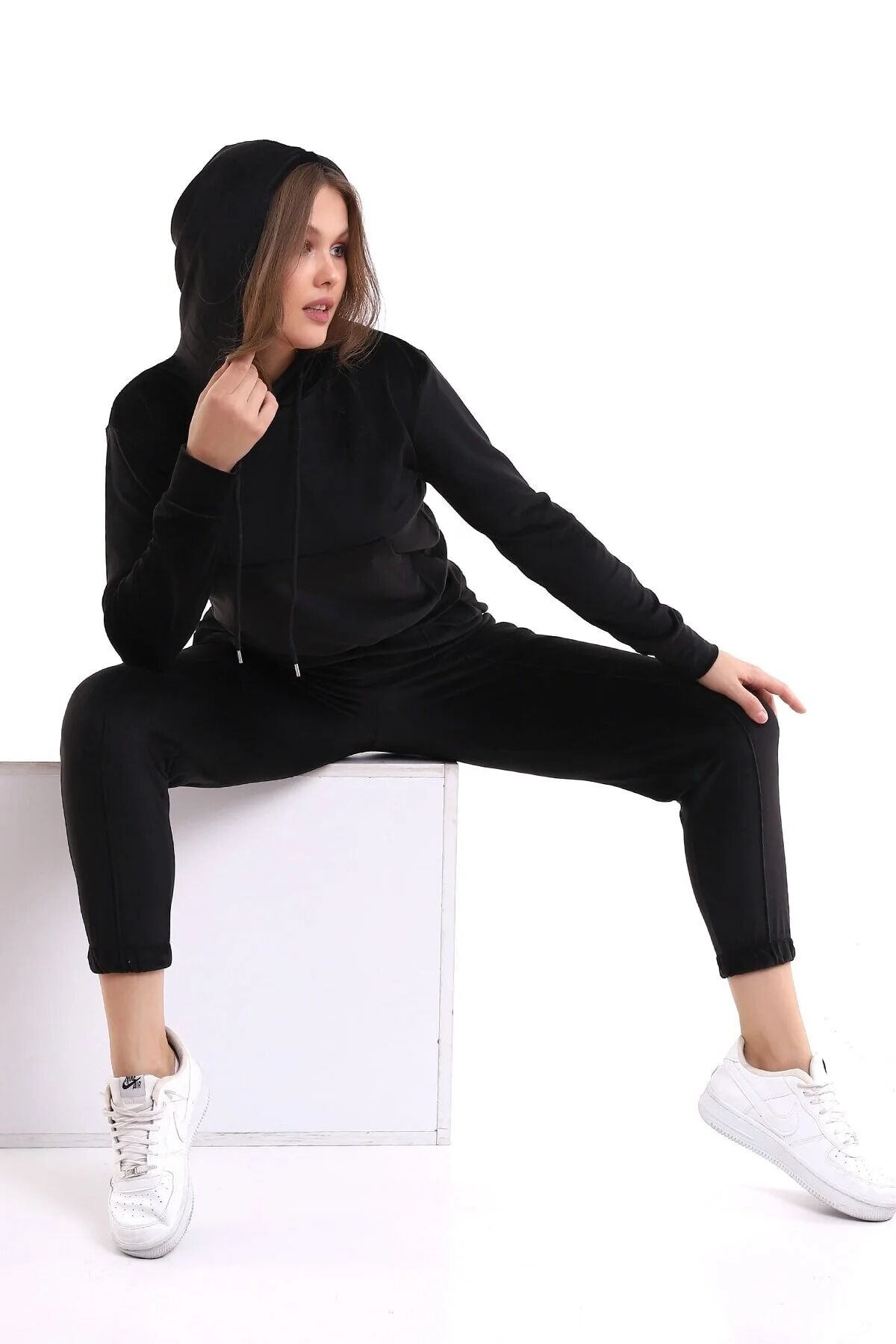 Kadın Yumoş Kadife Eşofman Takımı 6091 S - SİYAH