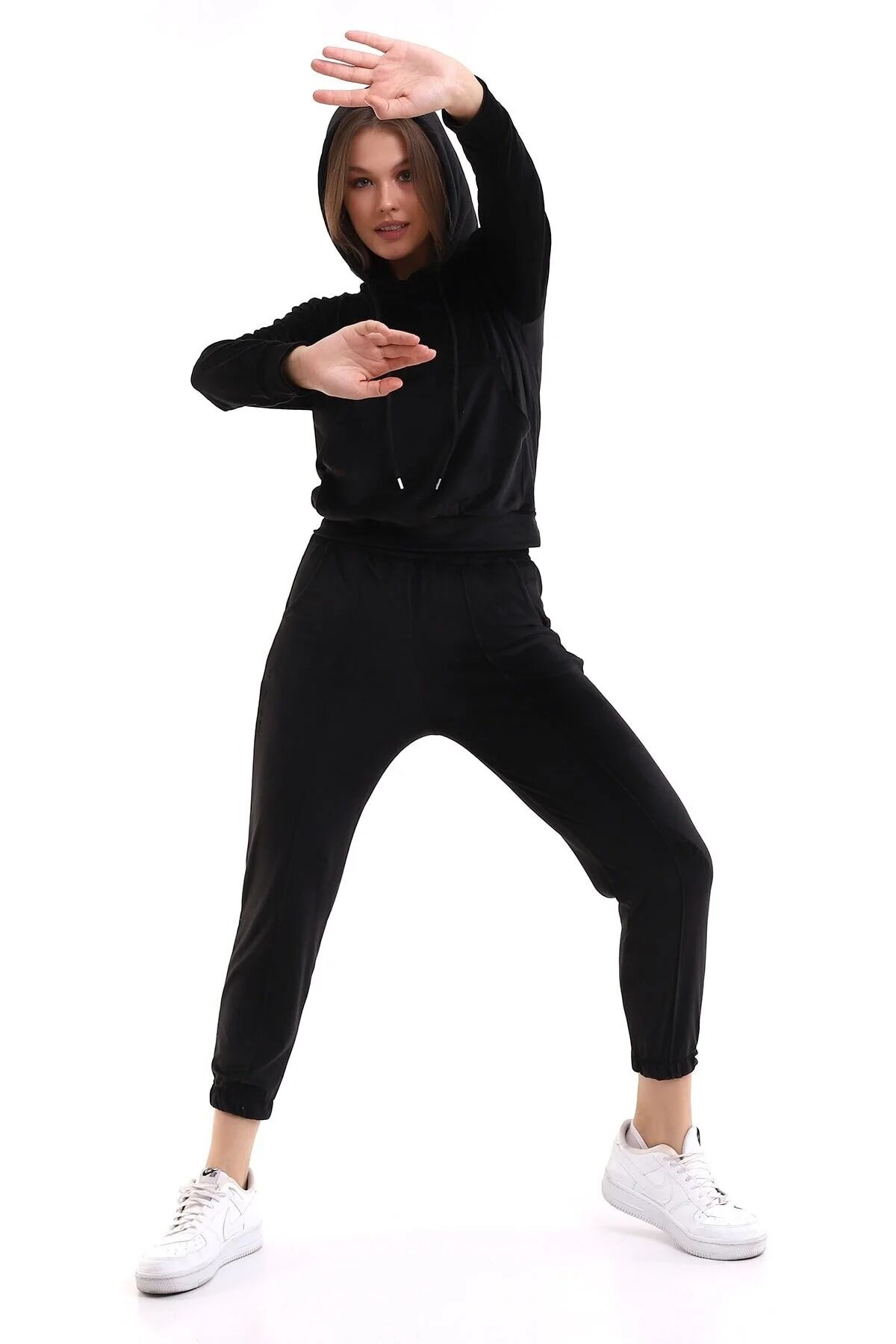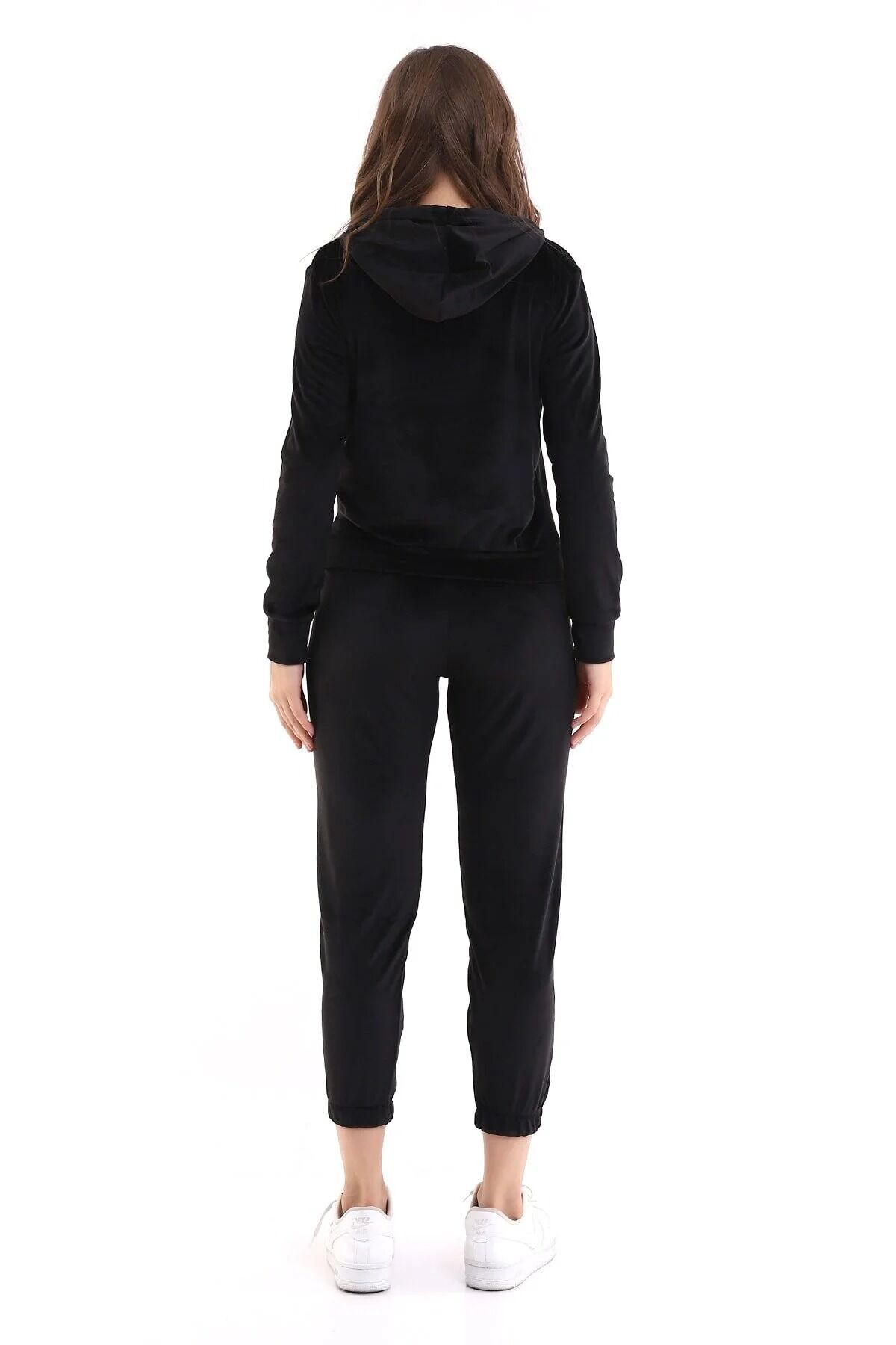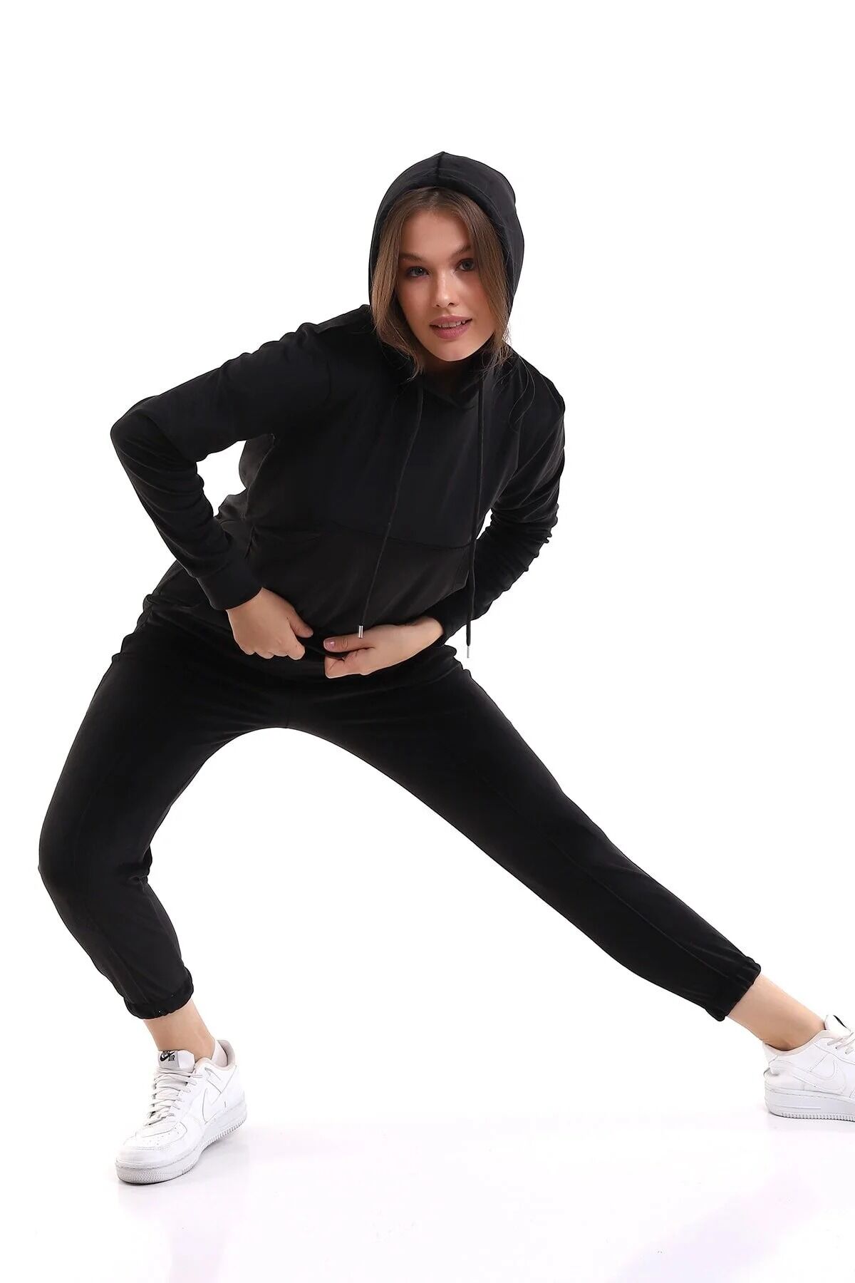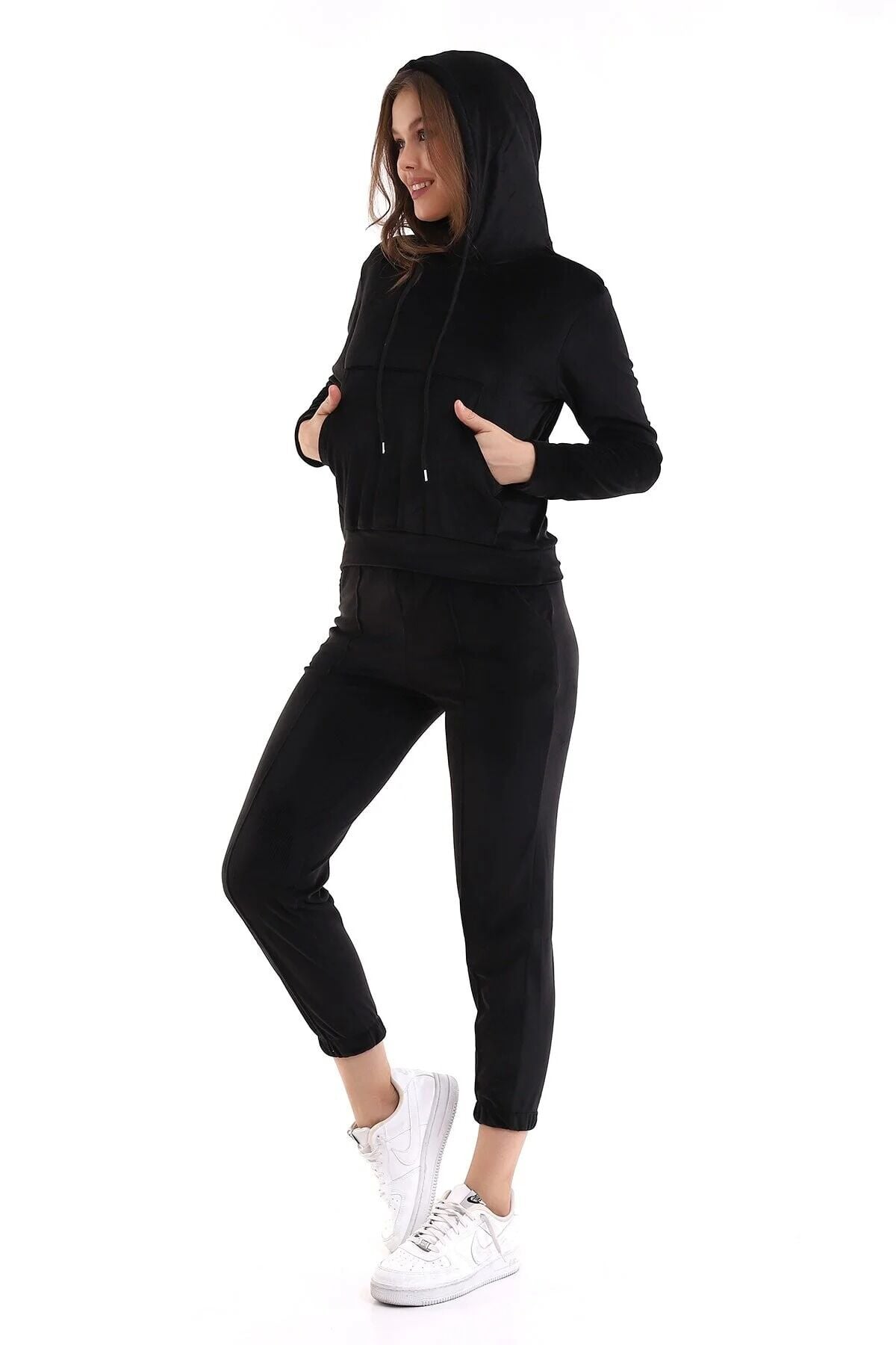 Kadın Yumoş Kadife Eşofman Takımı 6091 S - SİYAH