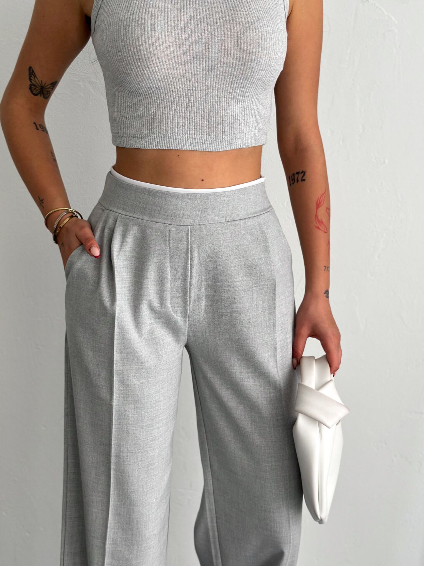 Kadın Kemer Detaylı Palazzo Kumaş Detaylı Kadın Pantolon 2460 L - SİYAH