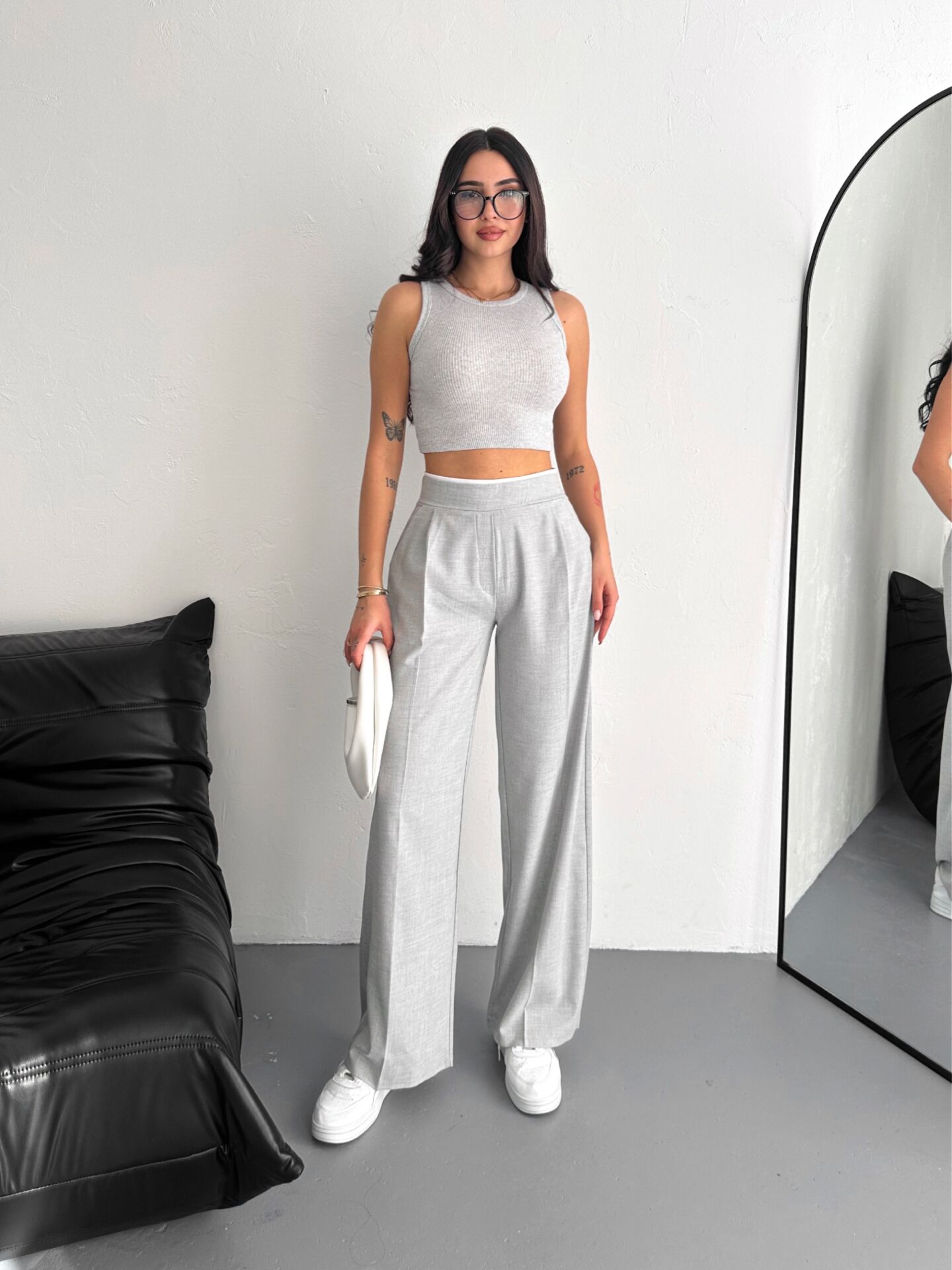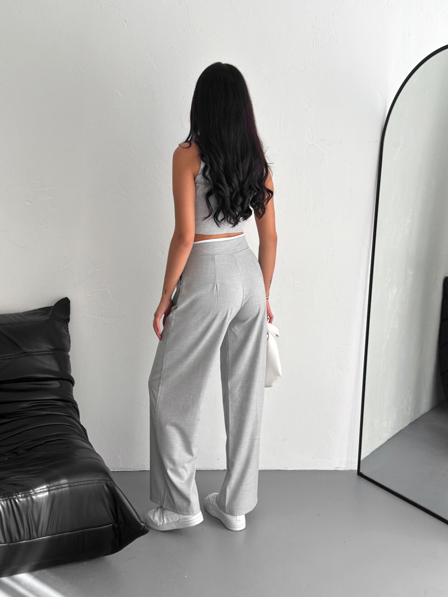 Kadın Kemer Detaylı Palazzo Kumaş Detaylı Kadın Pantolon 2460 M - GRİ