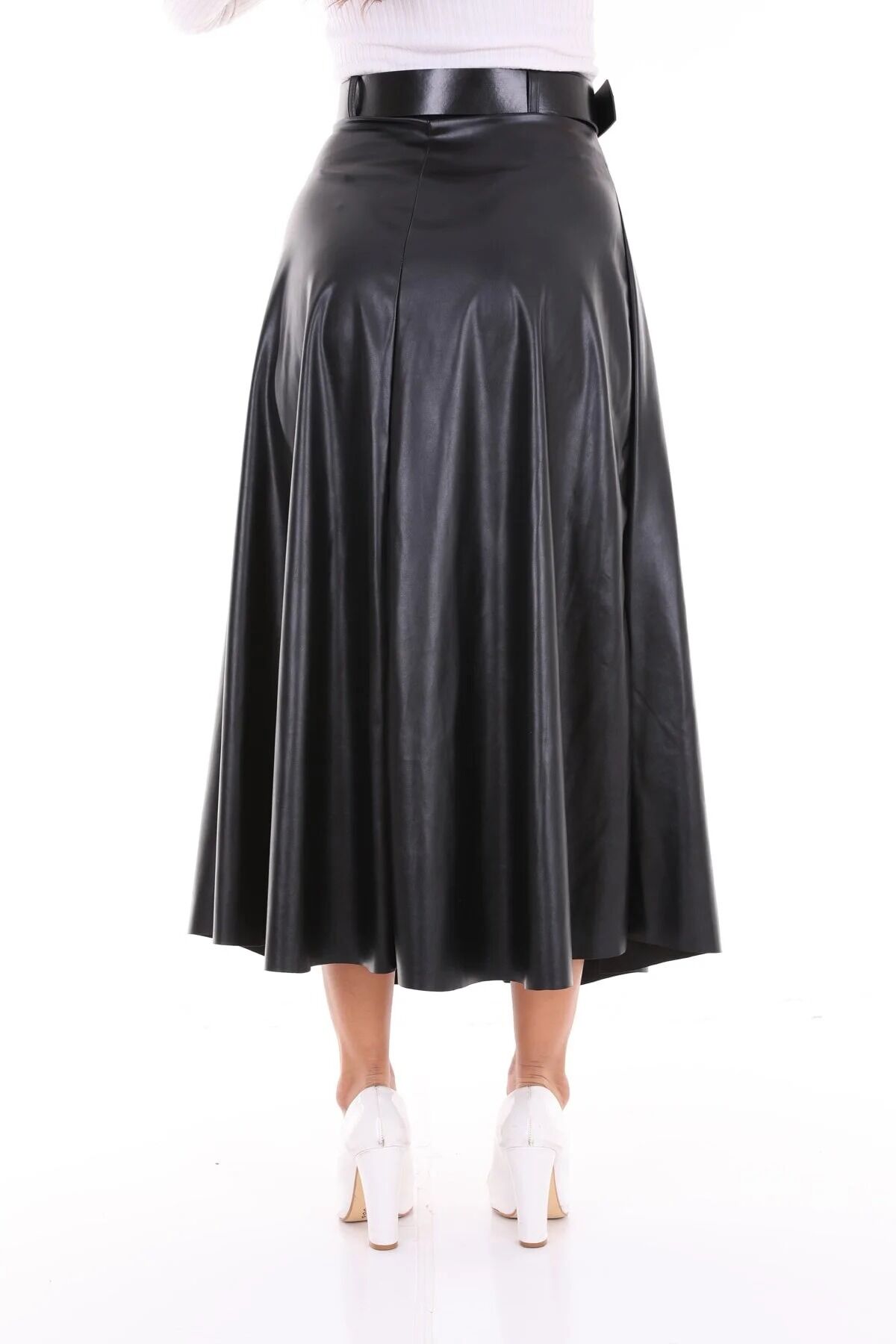 Kadın Suni Deri Uzun Kloş Etek M - SİYAH
