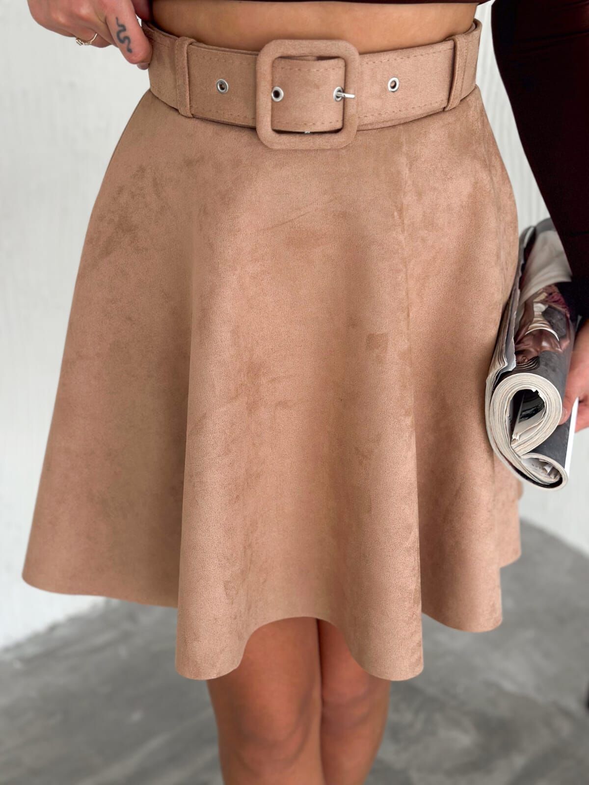 KLOŞ SÜET ETEK KEMERLİ / SUEDE SKIRT S - BEJ