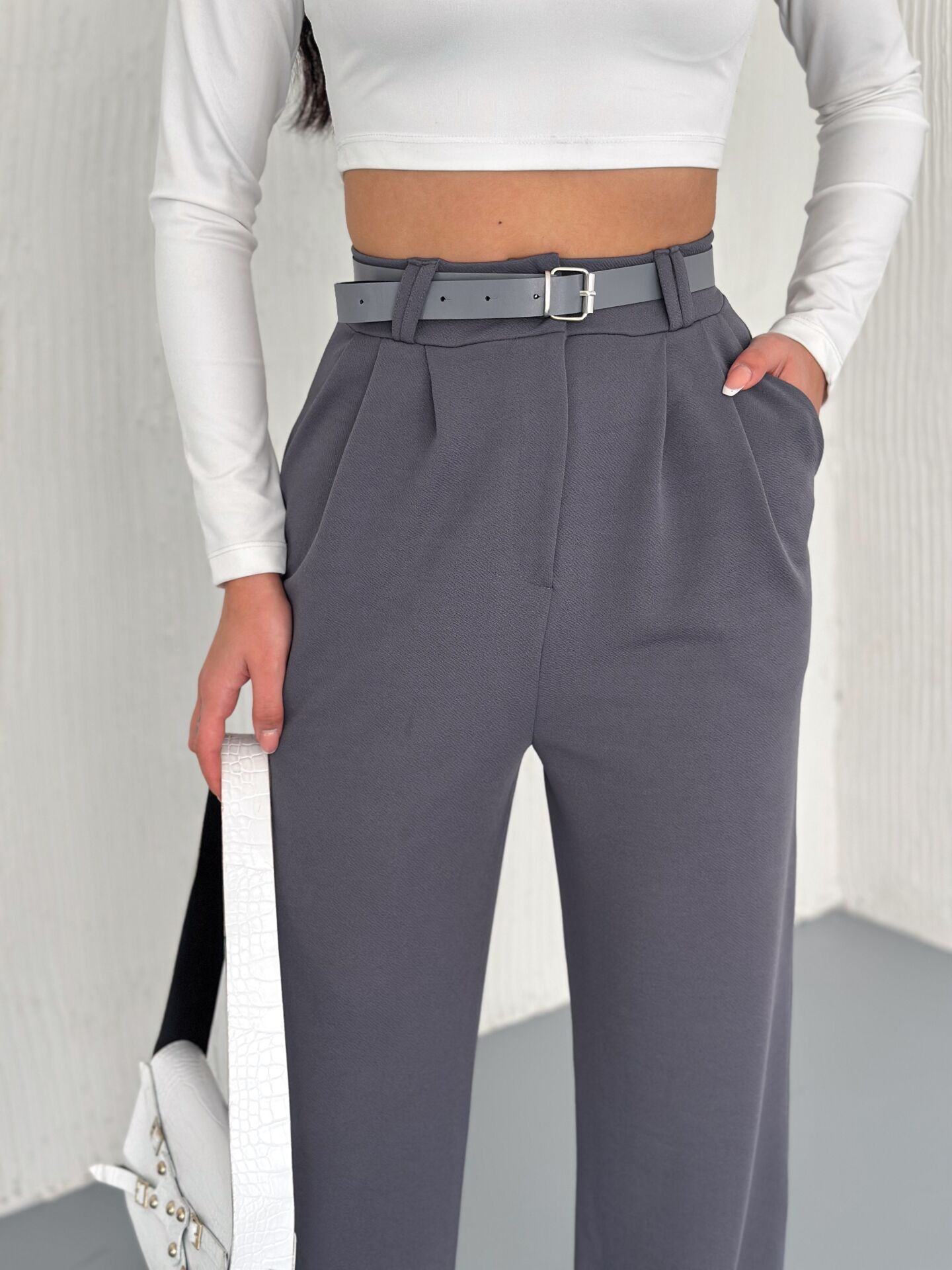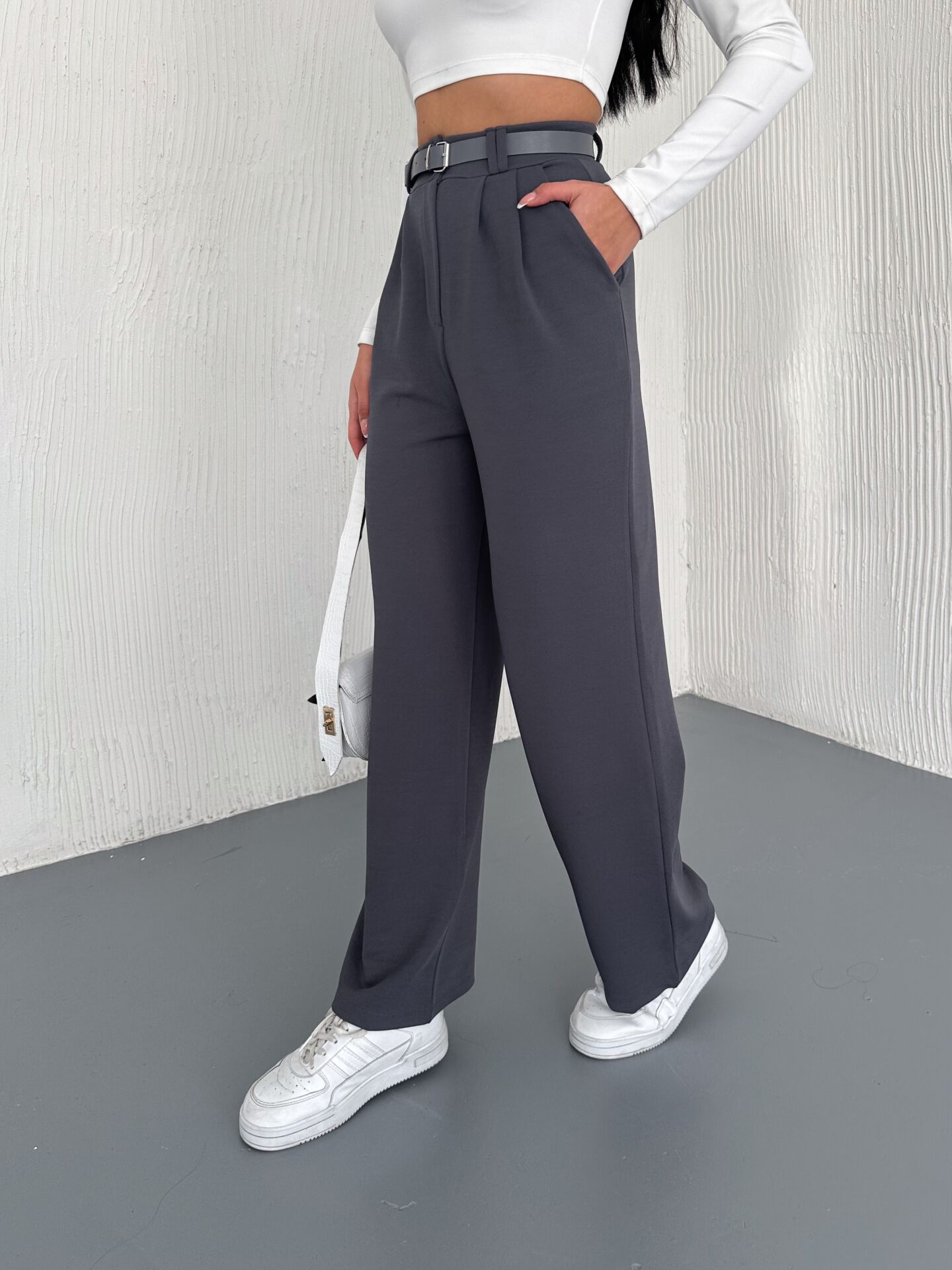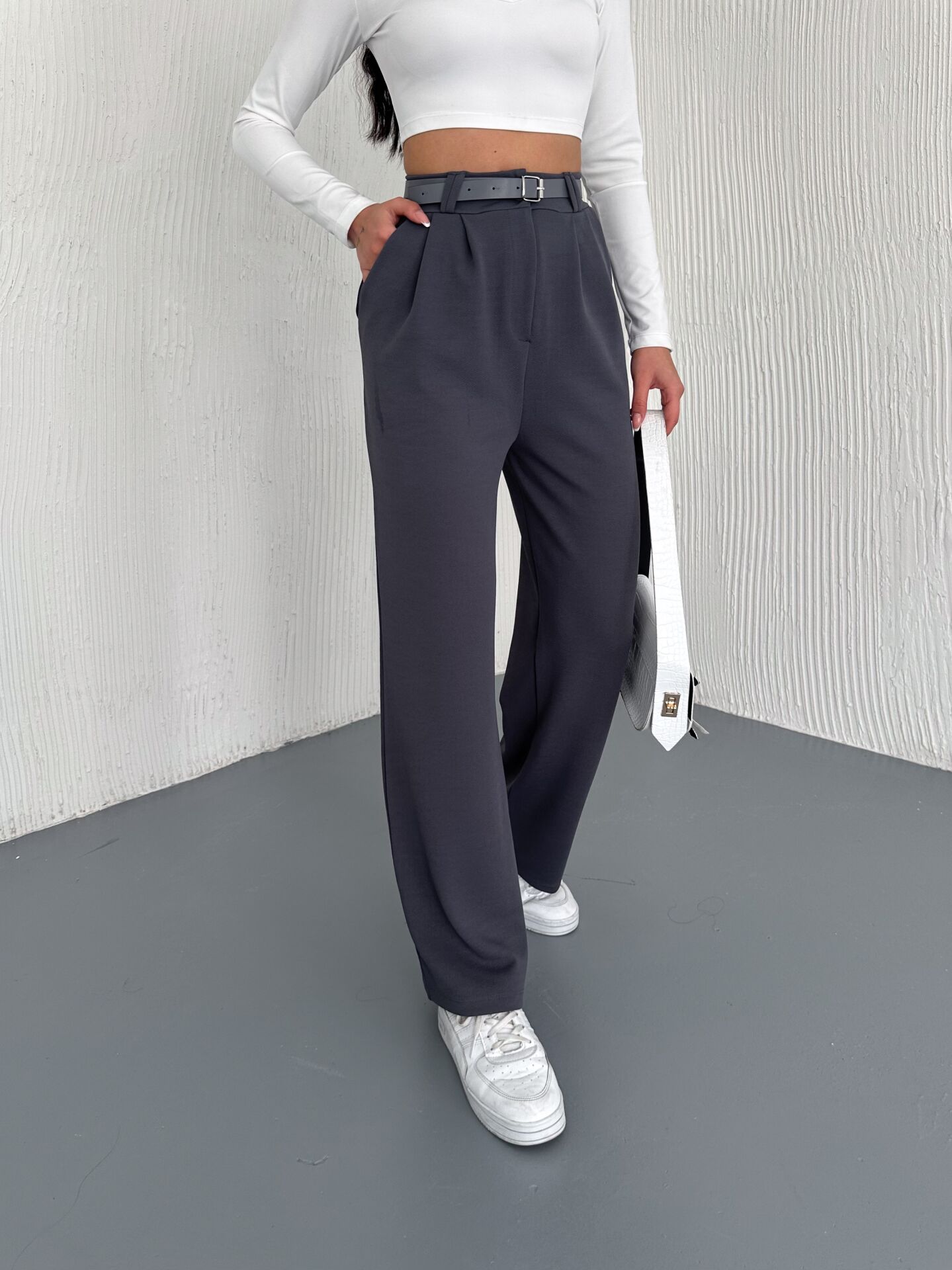 KEMERLİ VE ÖN PİLELİ PANTOLON /KADIN KUMAŞ PANTOLON SALAŞ KESİM