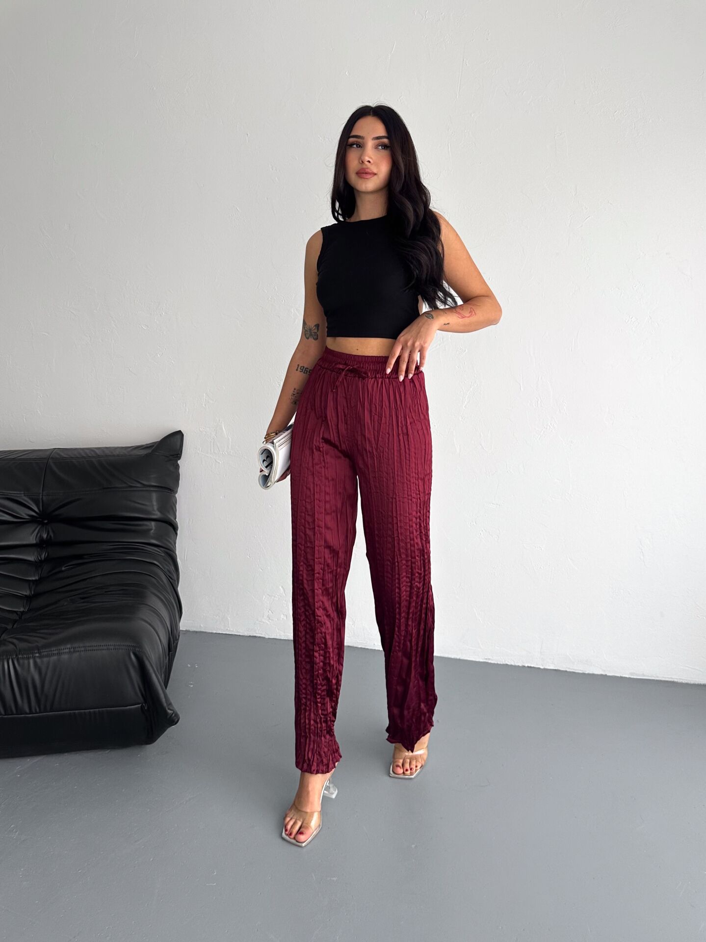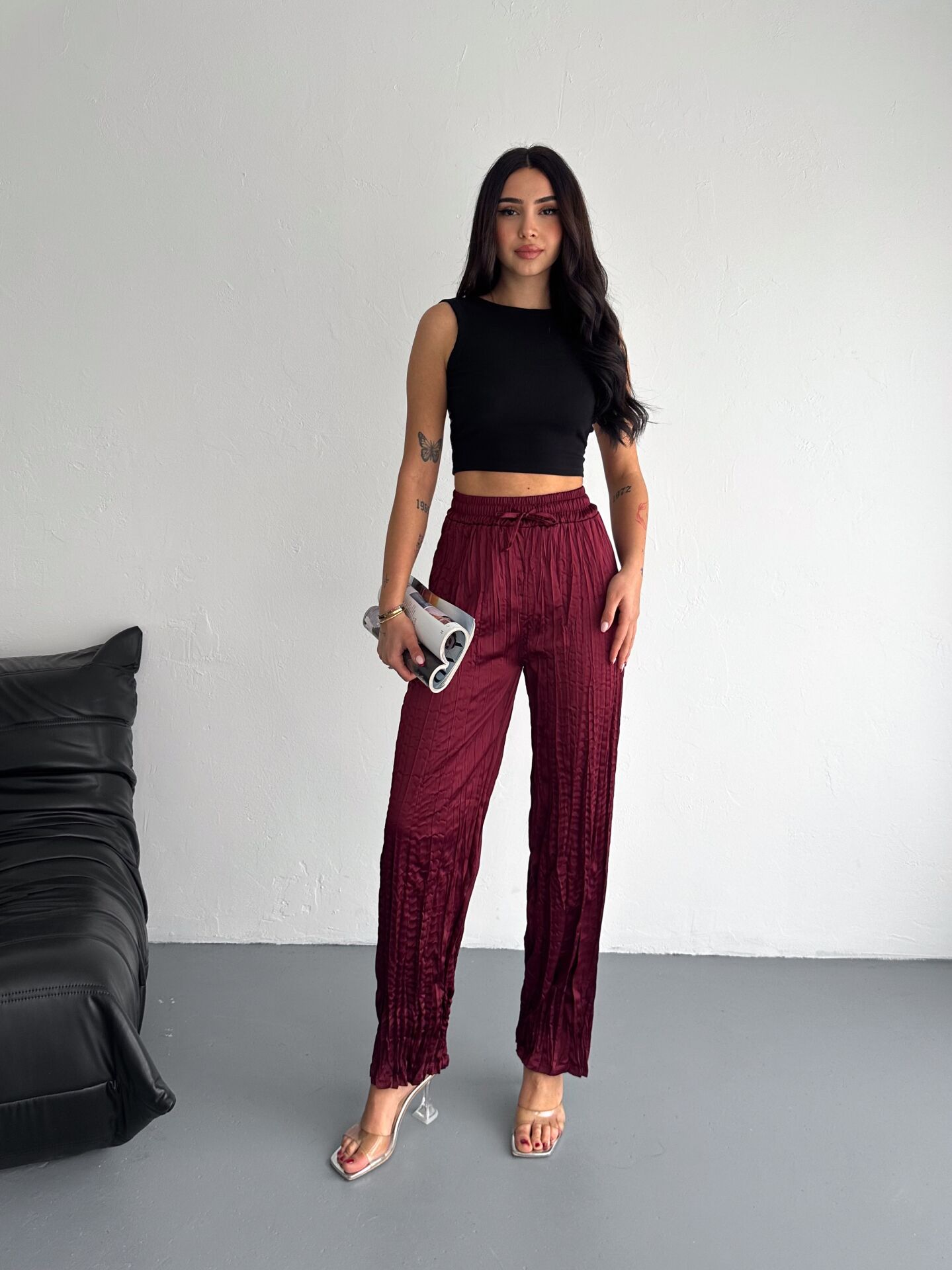 Kadın Günlük ve Spor Kırışık Saten Pantolon WM M - BORDO