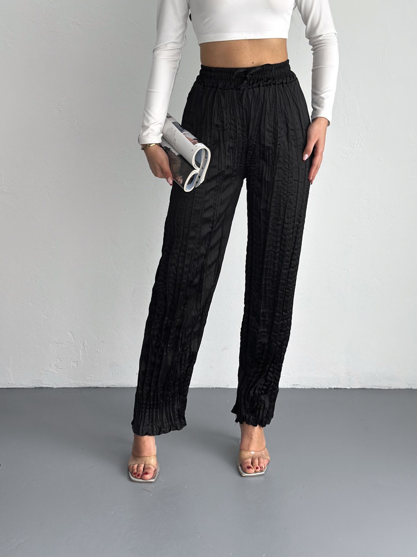 Kadın Günlük ve Spor Kırışık Saten Pantolon WM S - SİYAH