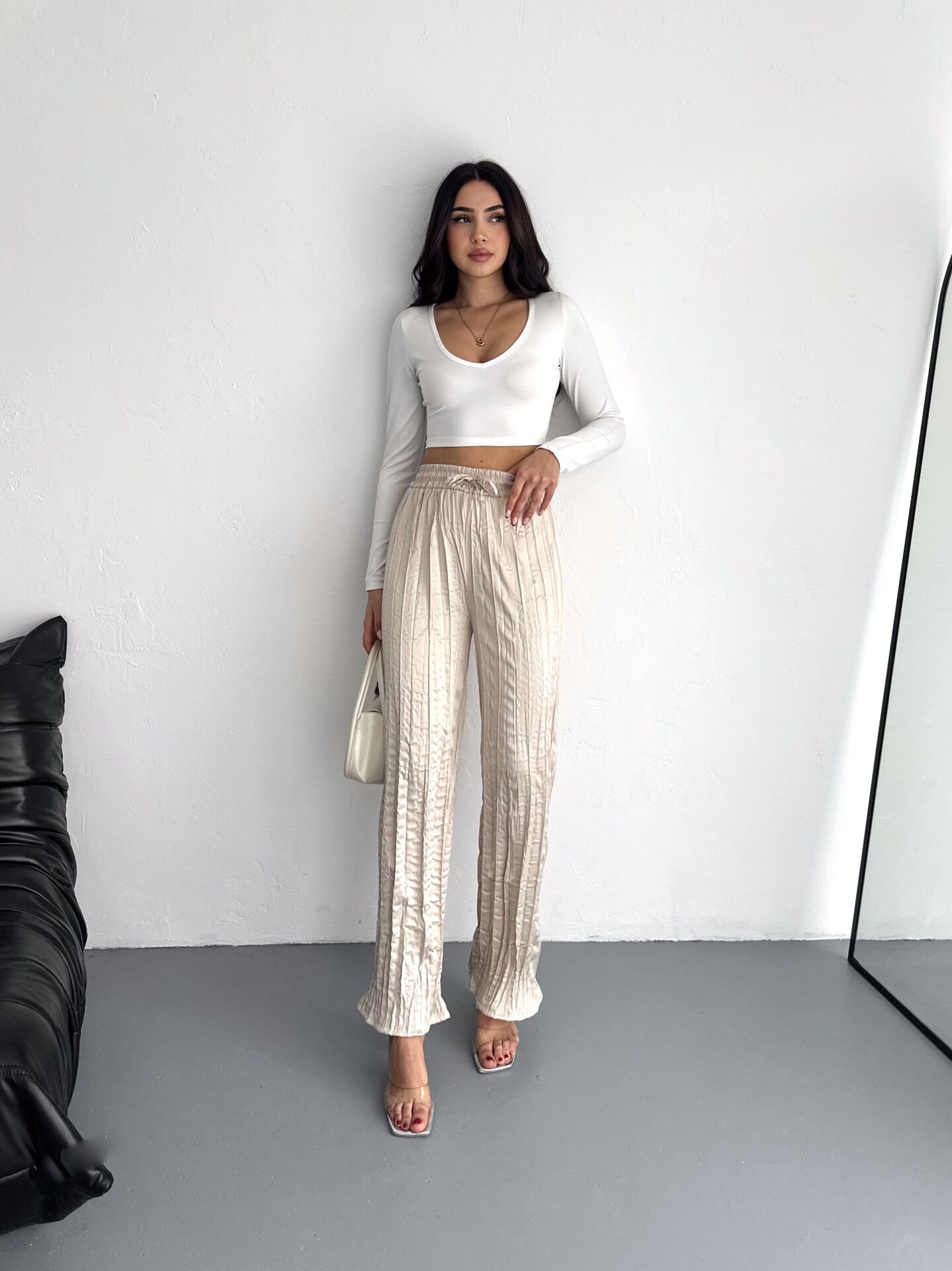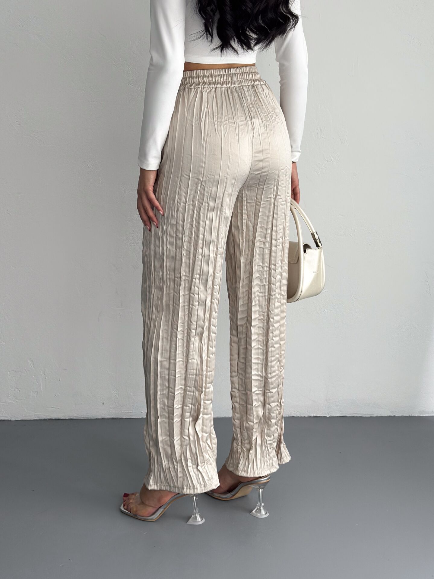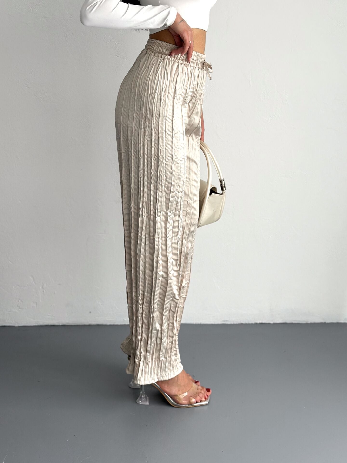 Kadın Günlük ve Spor Kırışık Saten Pantolon WM XL - KREM