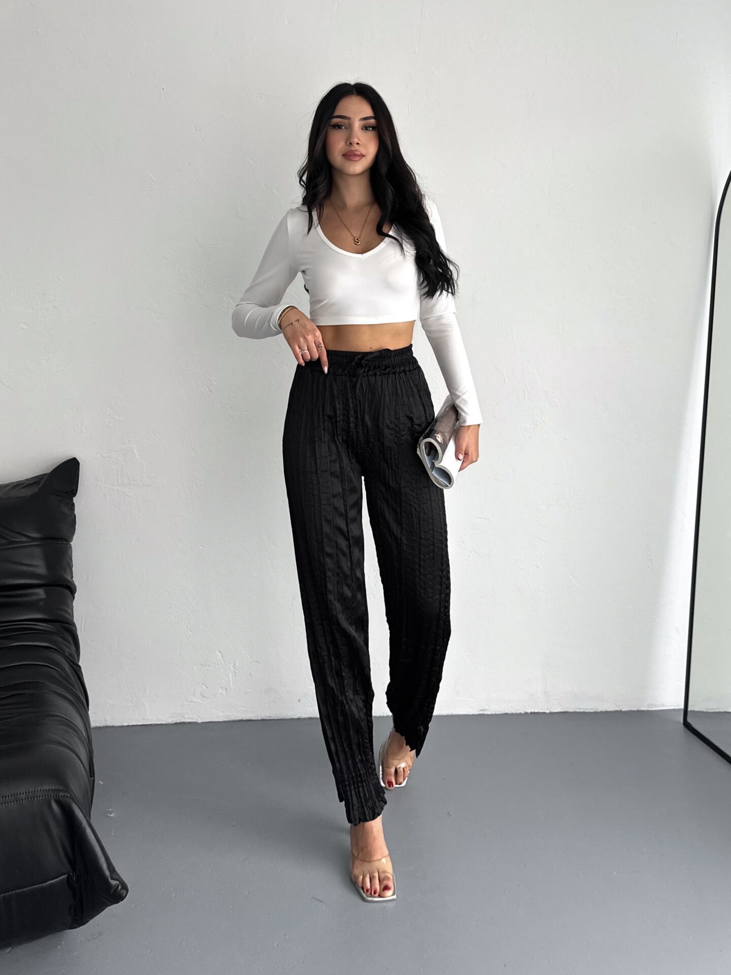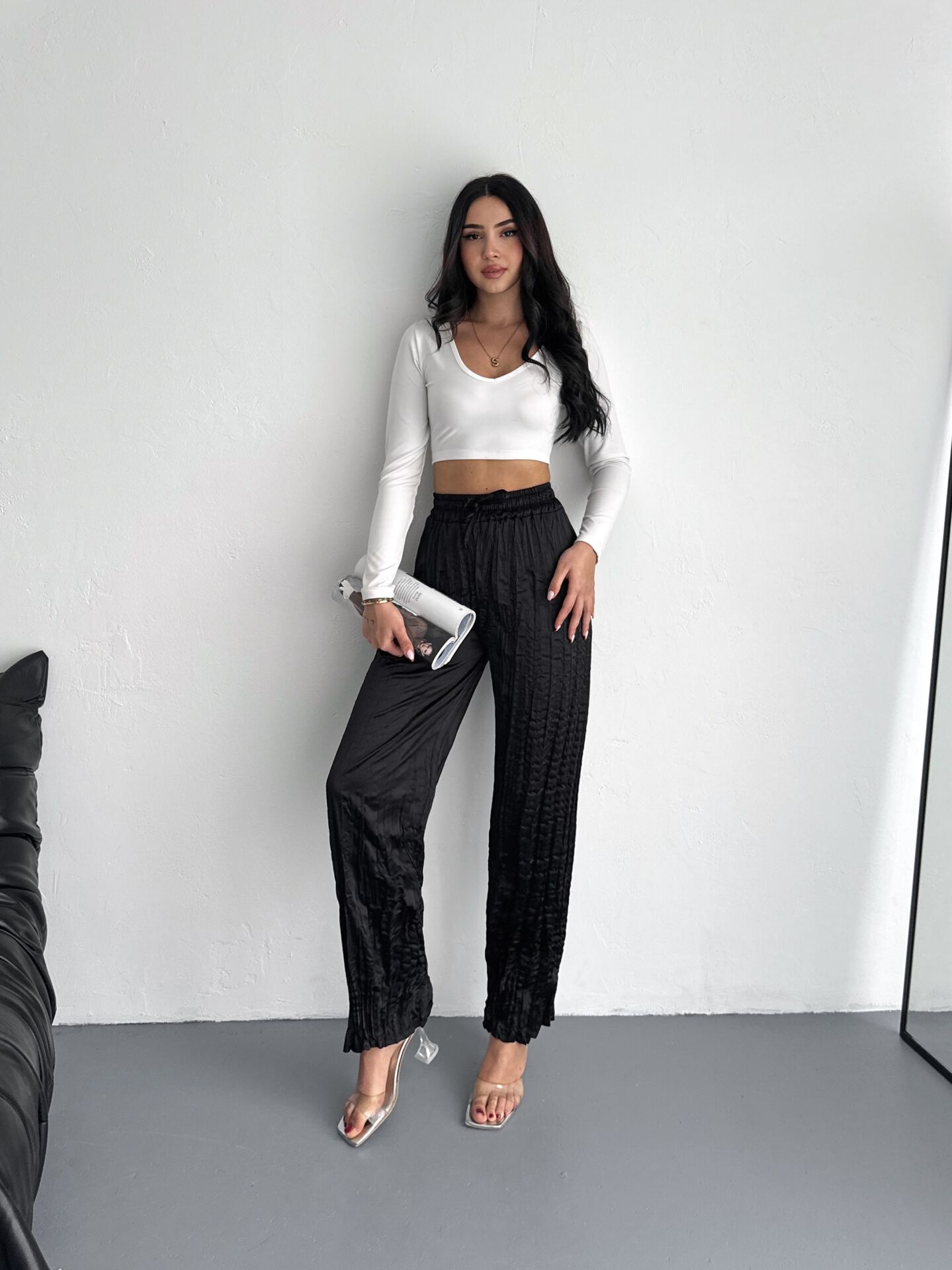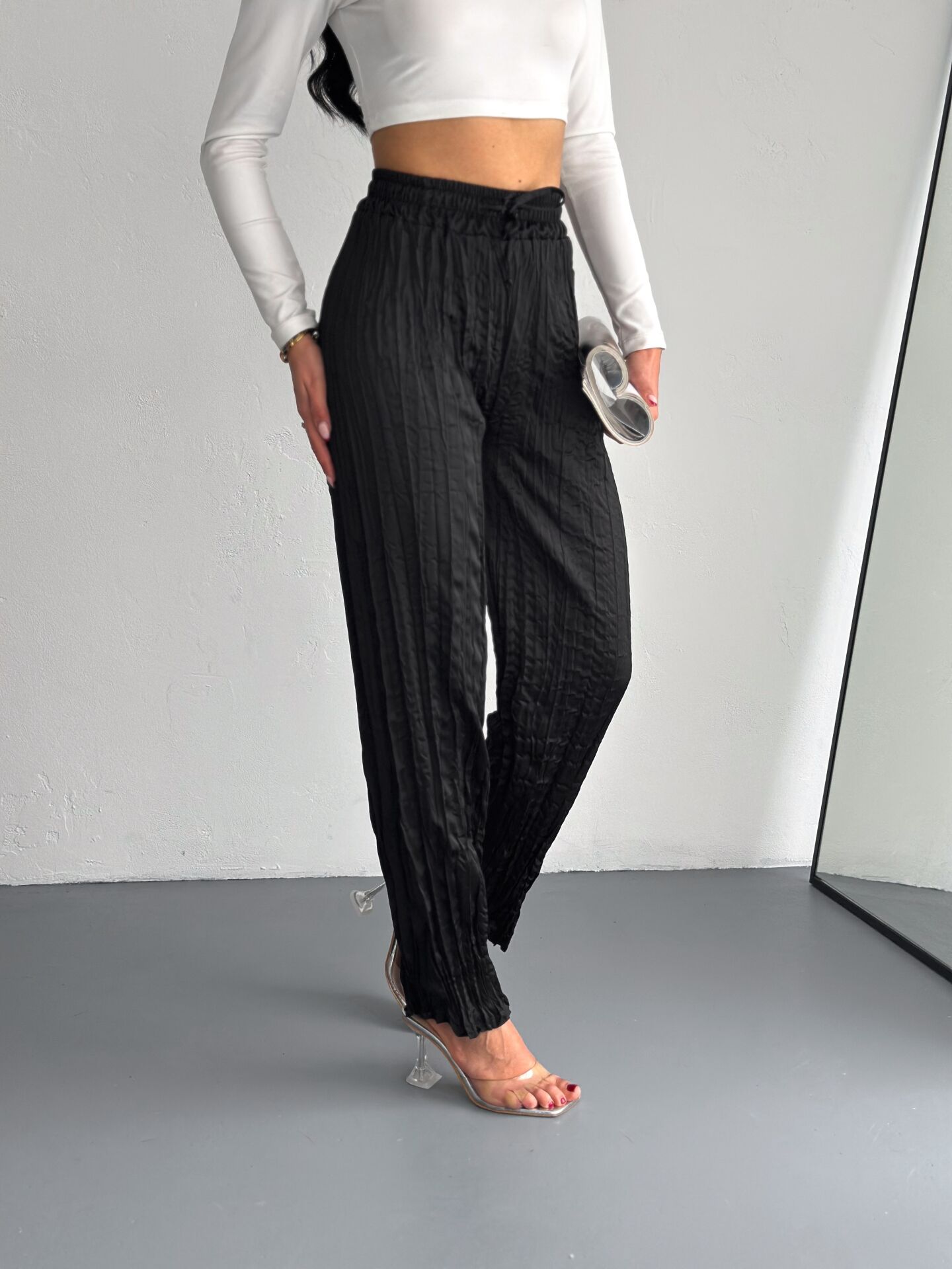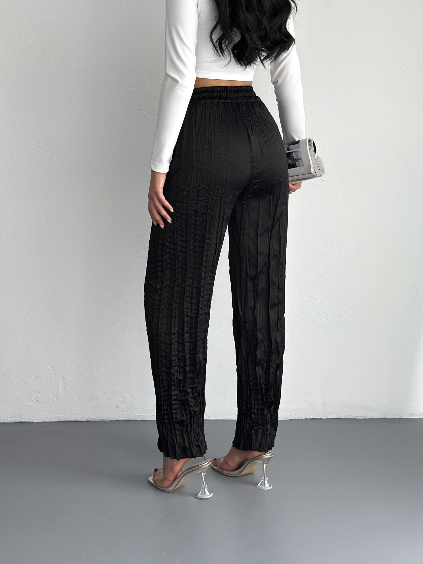 Kadın Günlük ve Spor Kırışık Saten Pantolon WM XL - SİYAH
