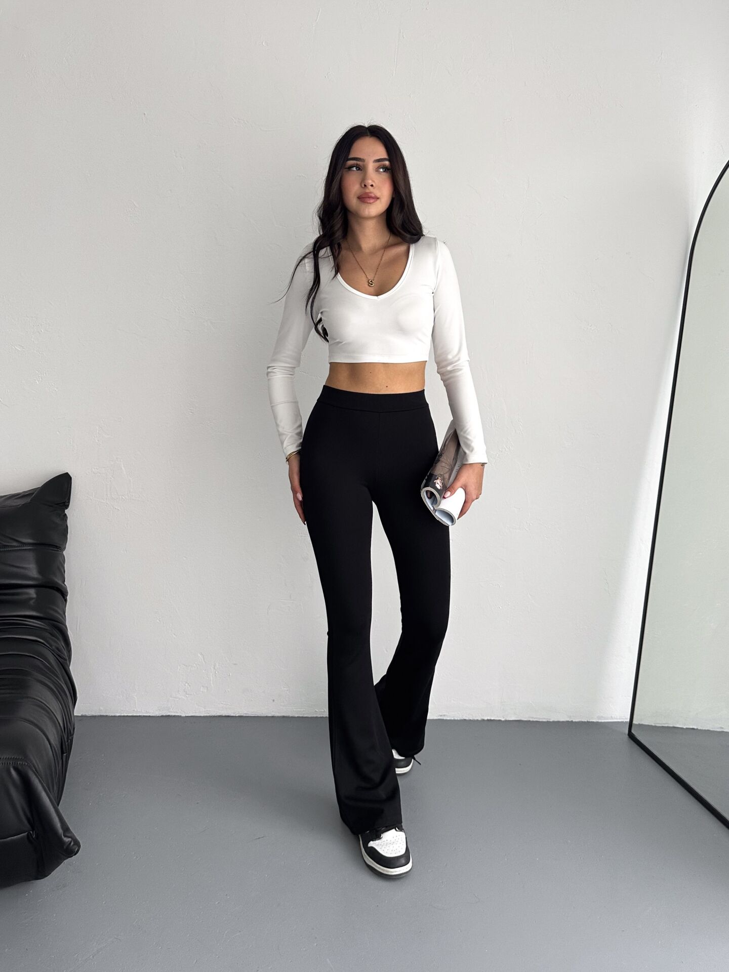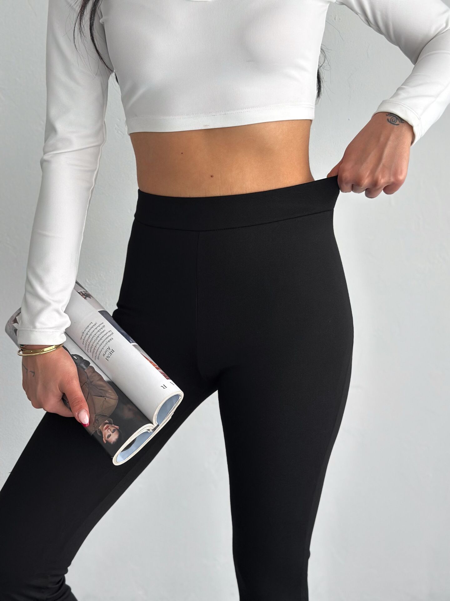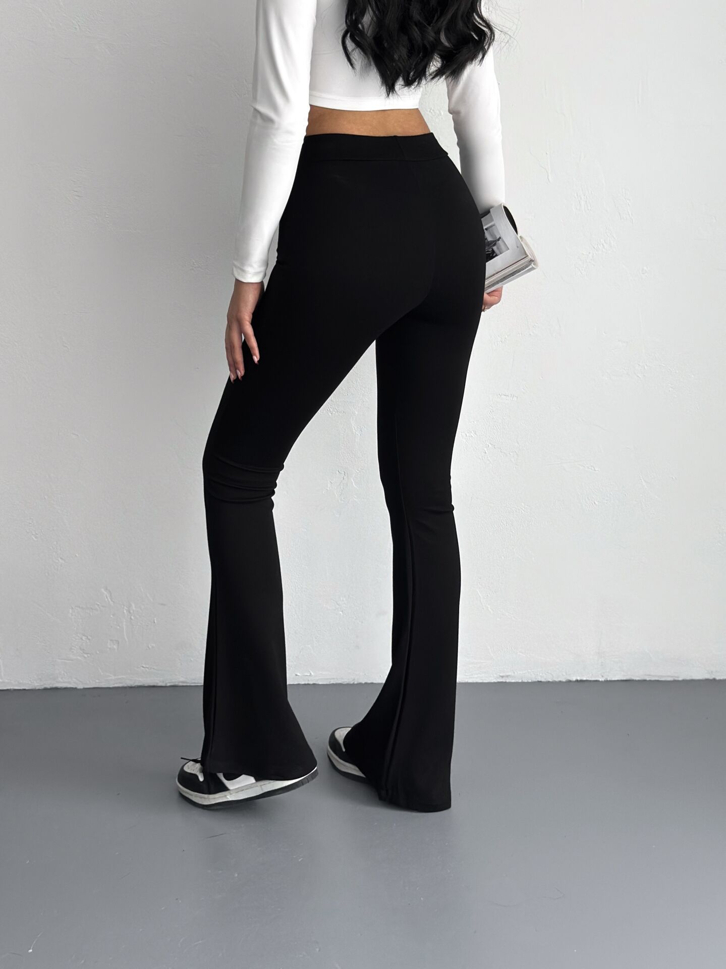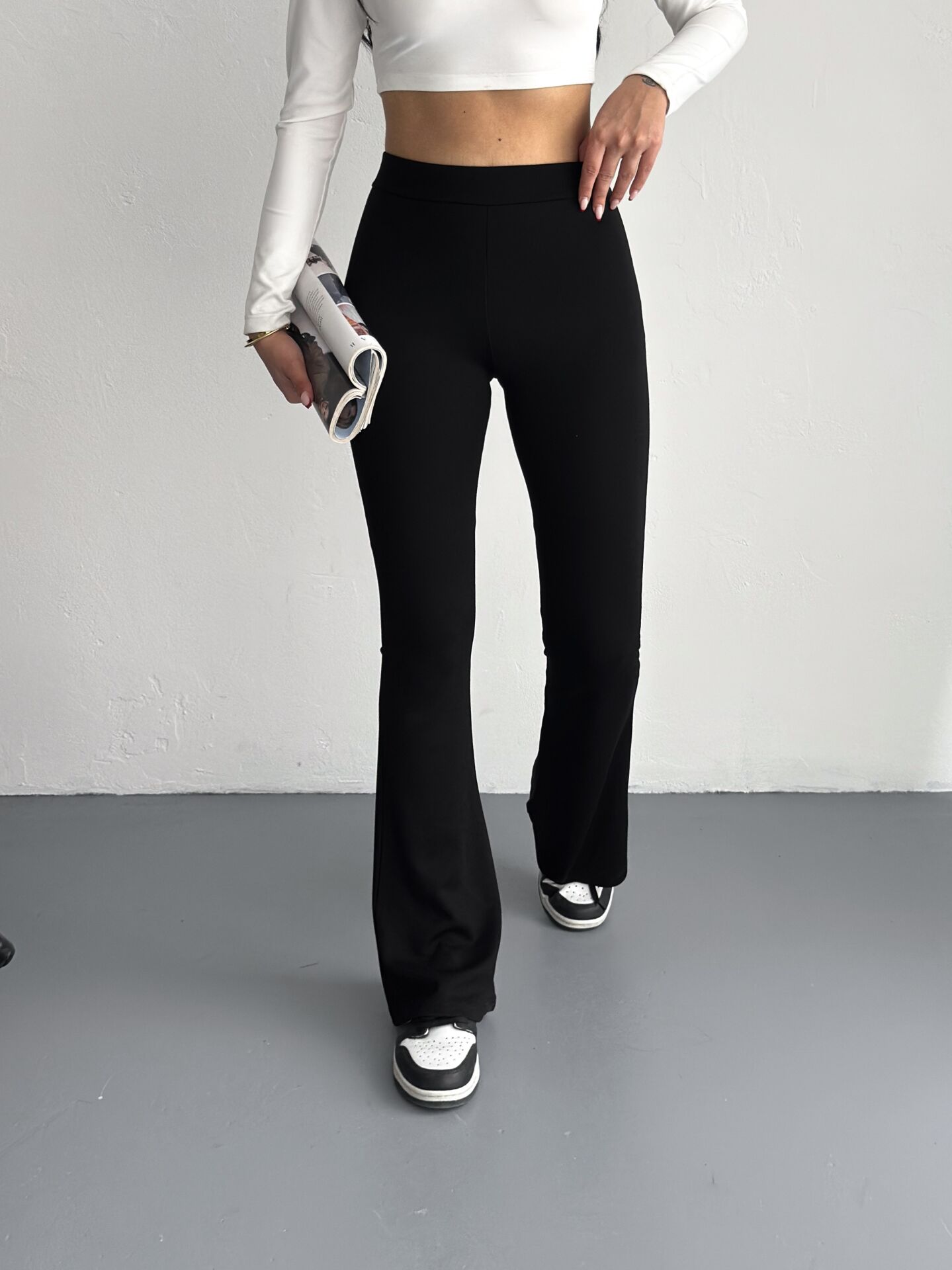 Kadın Likralı Günlük ve Spor İspanyol Paça Pantolon - 1633 M - SİYAH