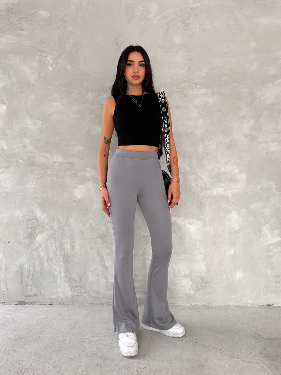 Kadın Likralı Günlük ve Spor İspanyol Paça Pantolon - 1633 XL - AÇIK GRİ