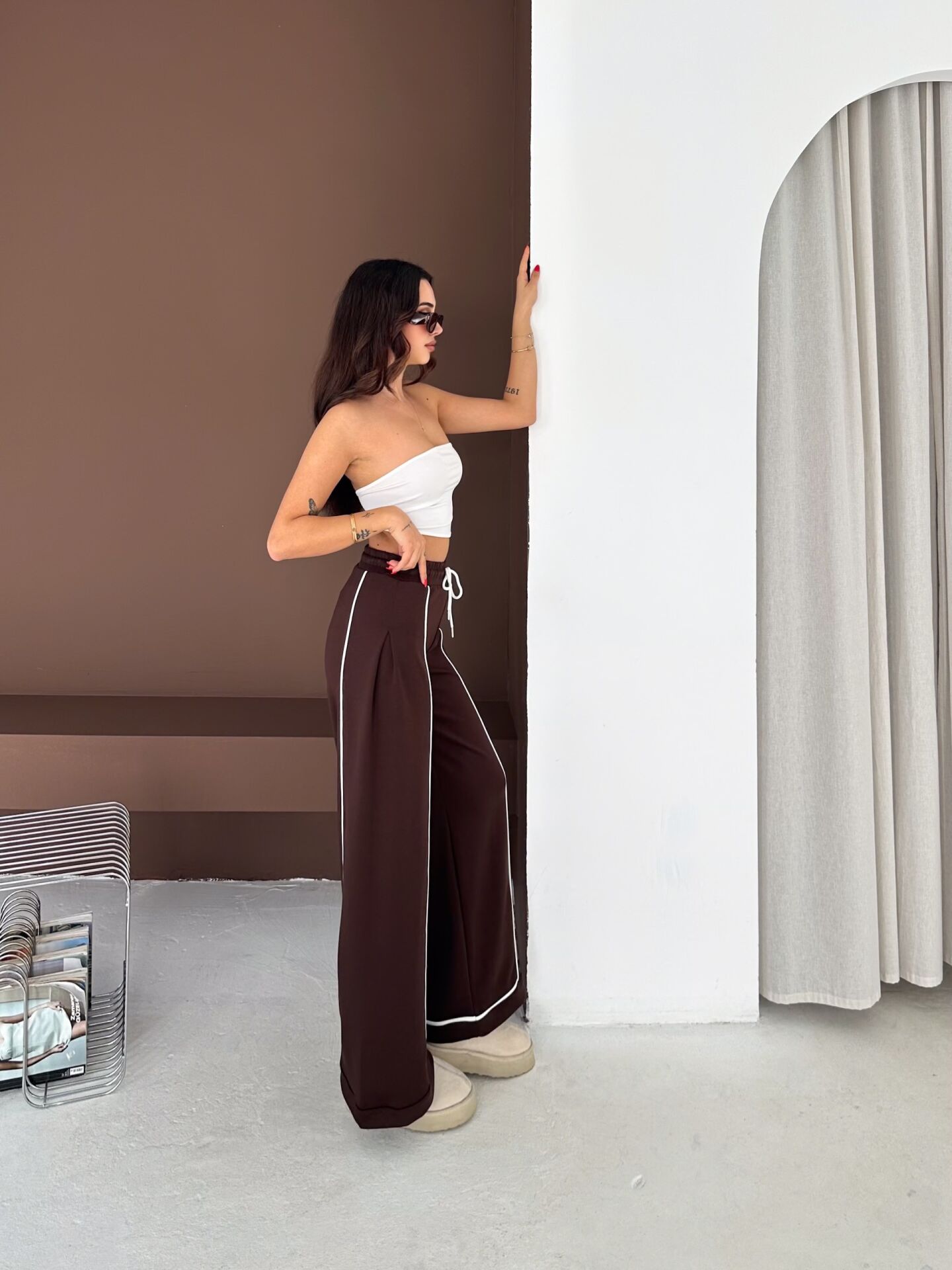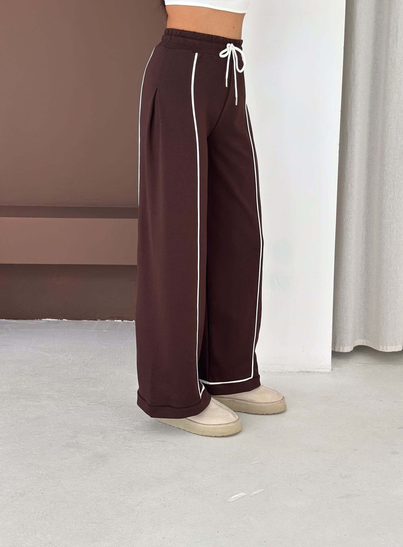Kadın Altı Paça Bilyeli Yandan Pileli Model Eşofman Altı 6236 XL - KAHVERENGİ
