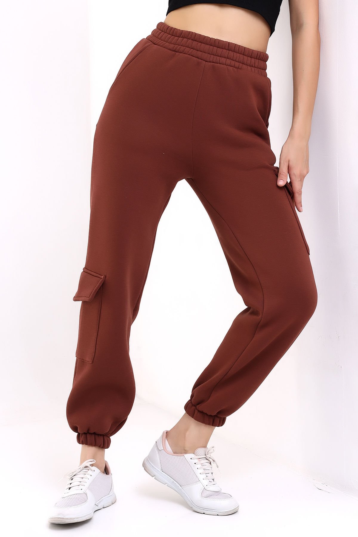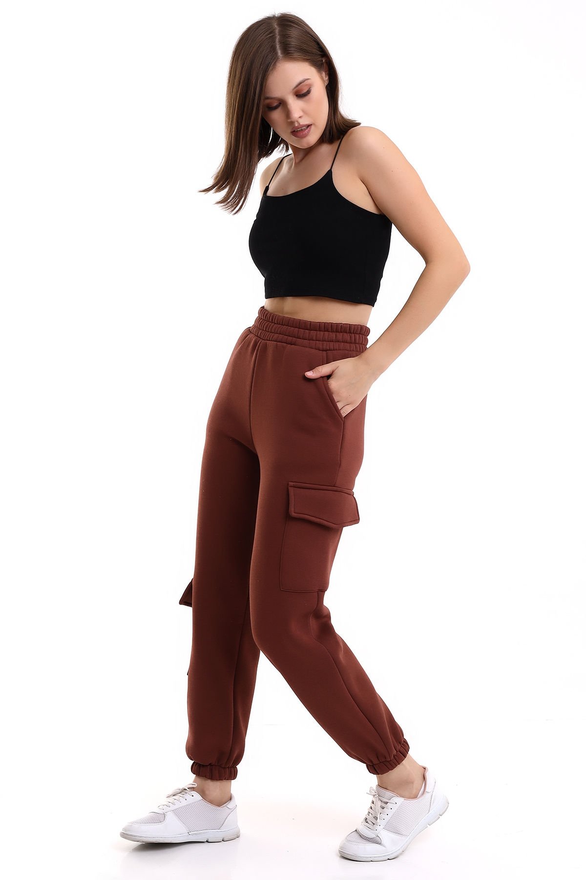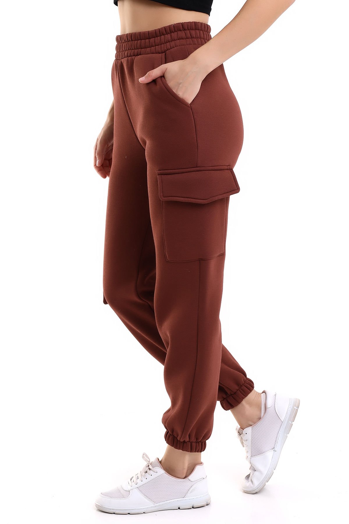 Kadın Yan Kargo Cepli  Modern Jogger Paça Eşofman Altı M - ACI KAHVE