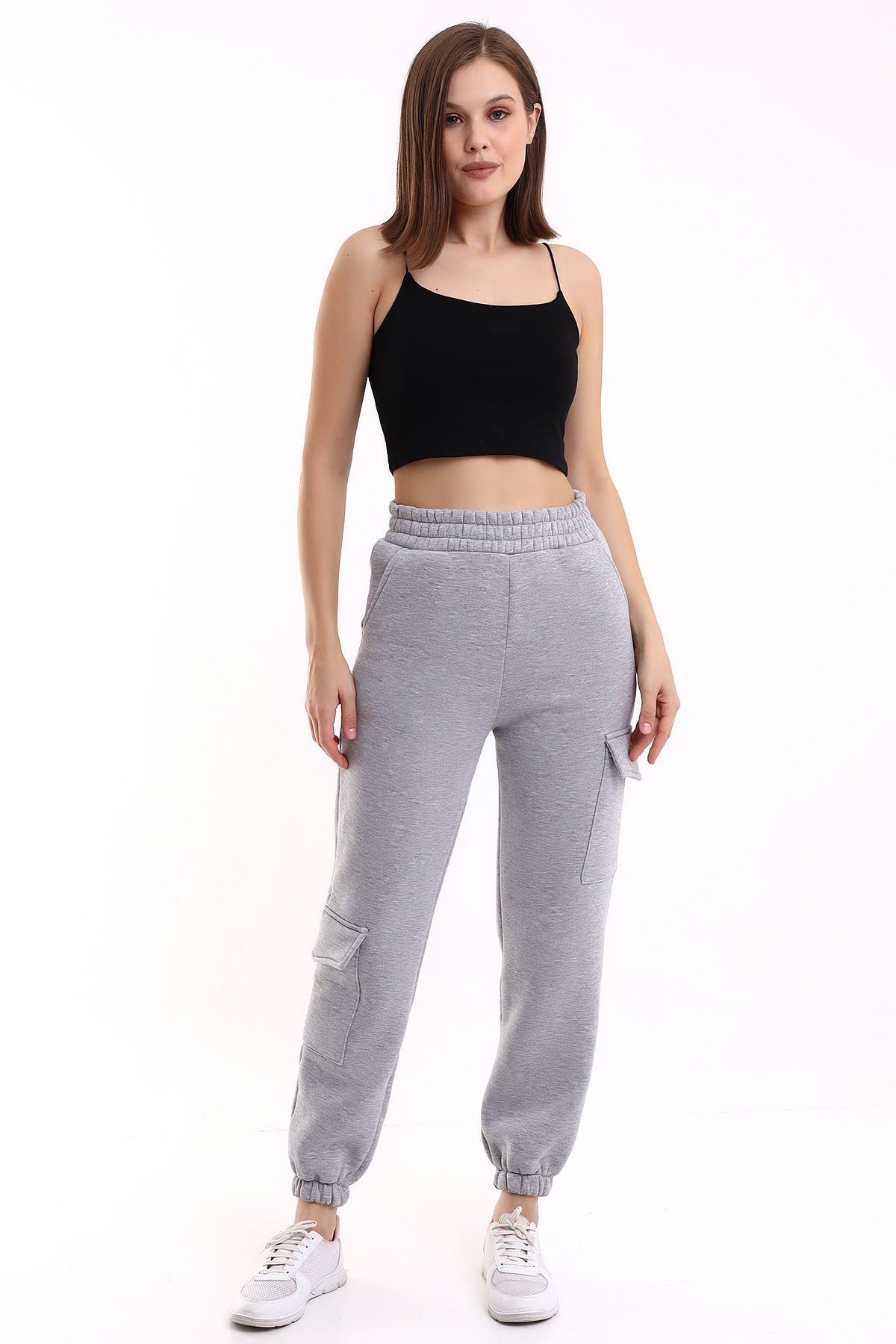 Kadın Yan Kargo Cepli  Modern Jogger Paça Eşofman Altı S - GRİ