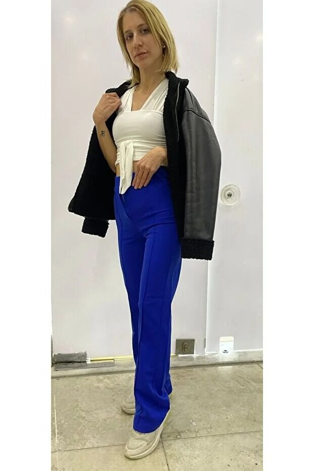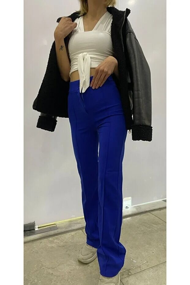 Kadın Önden Dikişli Likralı Kumaş Pantolon 1976 M - MAVİ