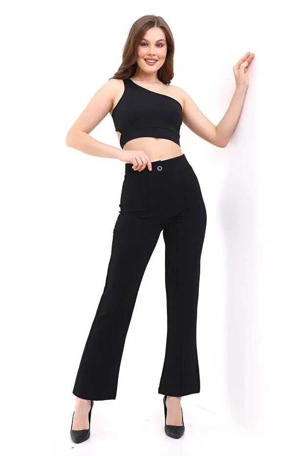 Kadın Önden Dikişli Likralı Kumaş Pantolon 1976 M - SİYAH
