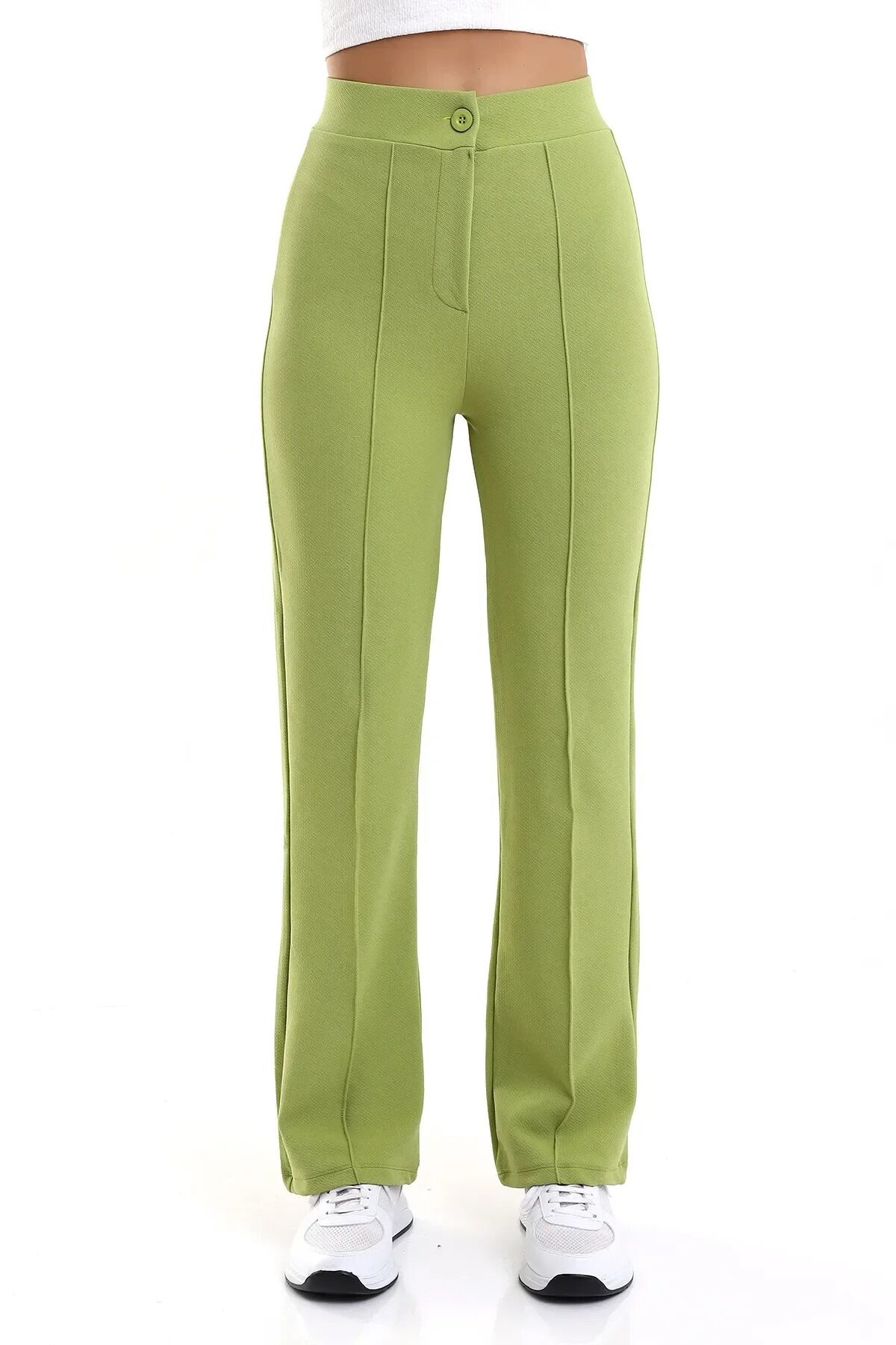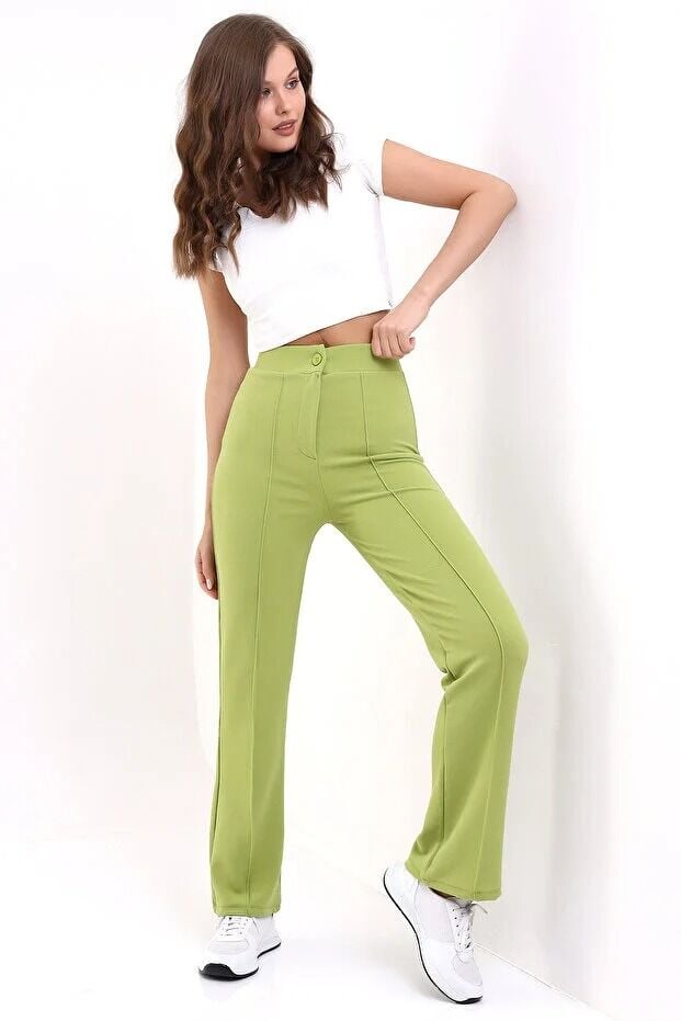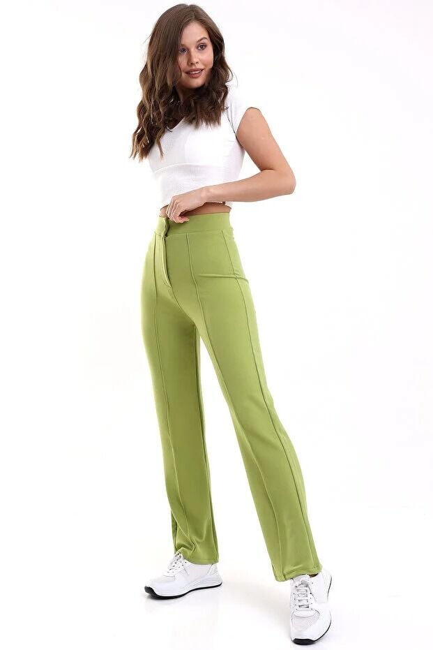 Kadın Önden Dikişli Likralı Kumaş Pantolon 1976 M - YEŞİL