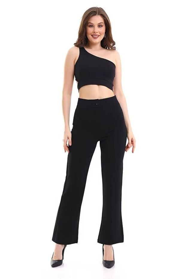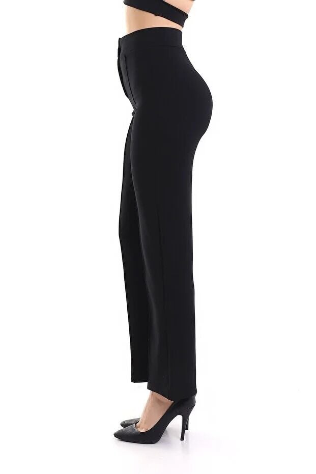 Kadın Önden Dikişli Likralı Kumaş Pantolon 1976 S - SİYAH