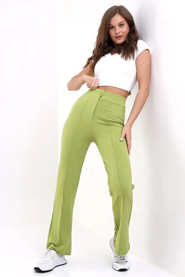 Kadın Önden Dikişli Likralı Kumaş Pantolon 1976 XL - YEŞİL