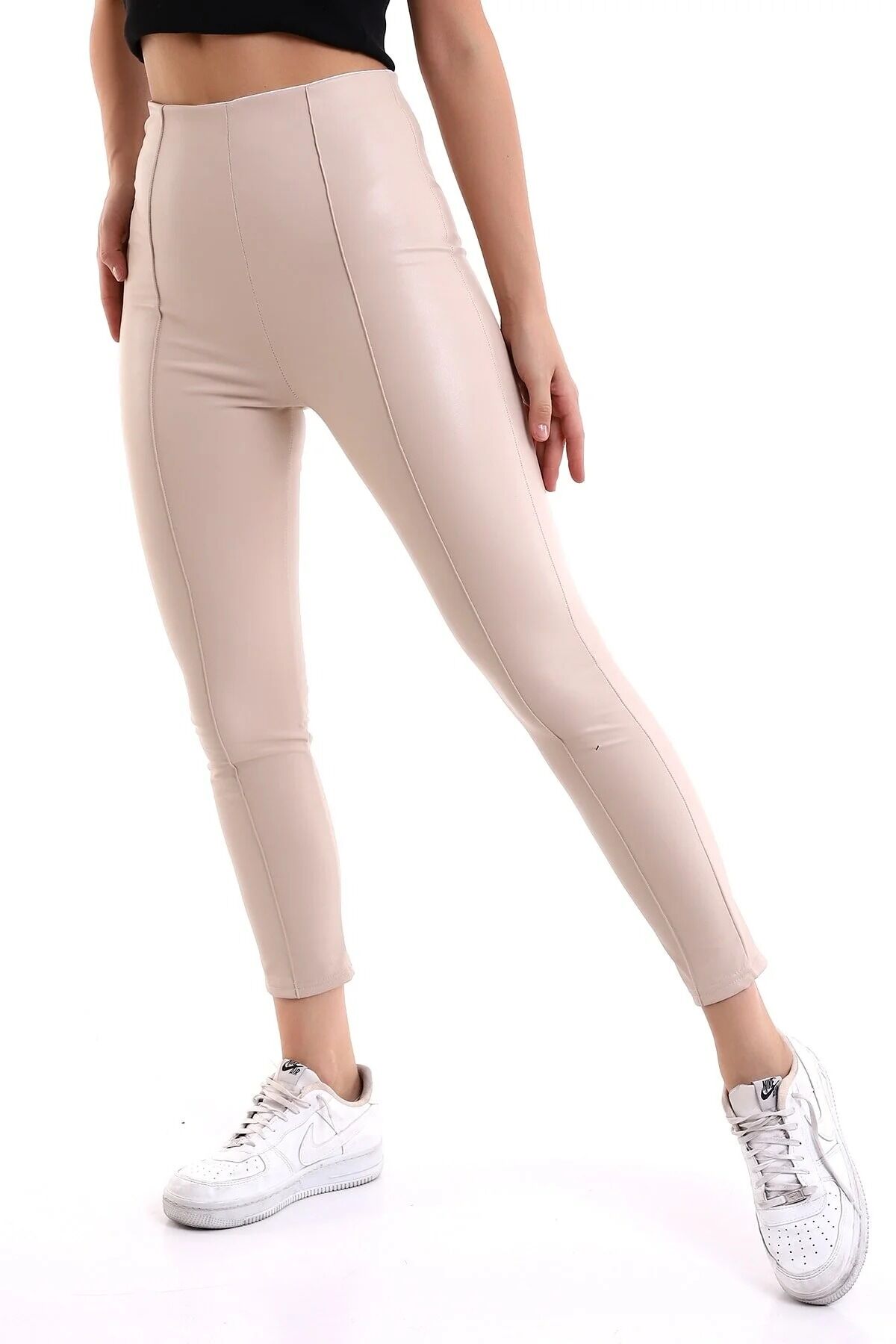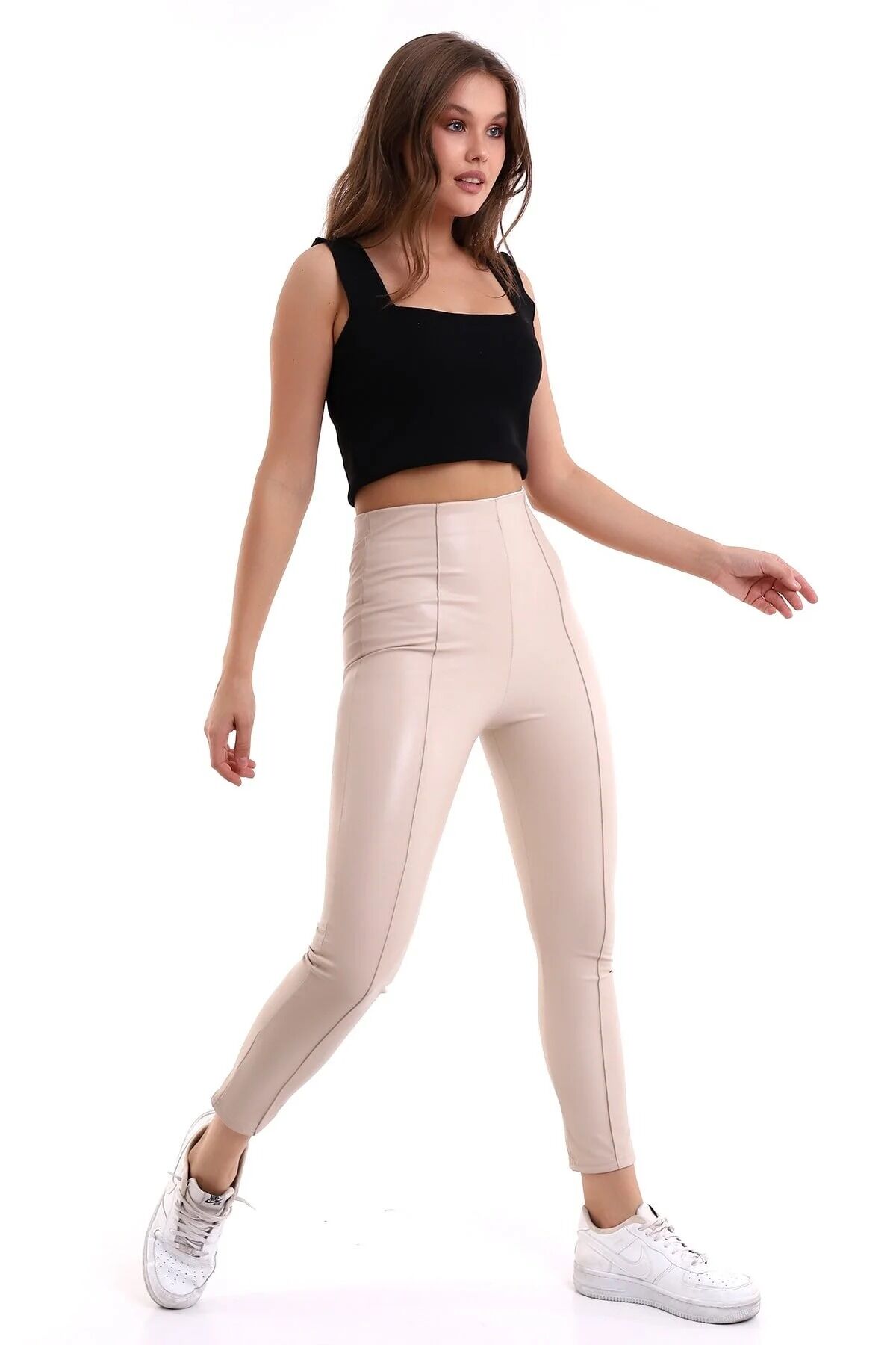 Ön Dikişli Yüksek Bel Suni Deri Tayt 1882 XL - EKRU