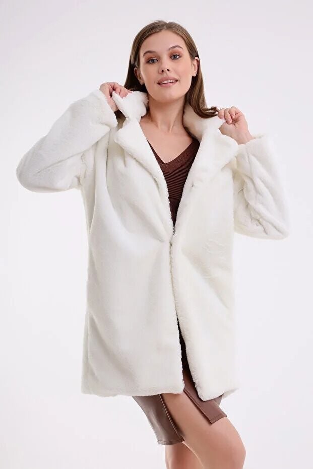 Kadın İçi Astarlı Peluş Ceket Kaban