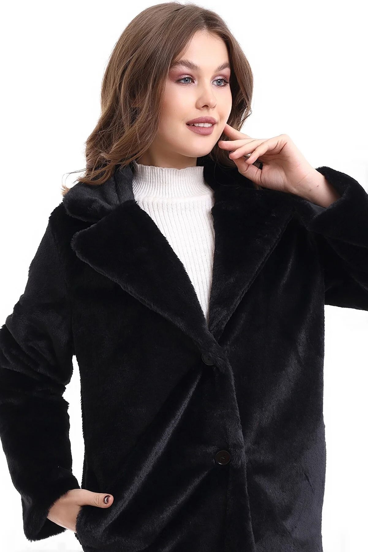 Düğmeli kapama şekli ve ceket yaka formu ile öne çıkan bu kadın peluş ceket, şık ve gece kombinlerinde zarif bir duruş sergiler. Regular kalıbı ve orta kalınlığı mevsim boyunca rahatlık sunar.