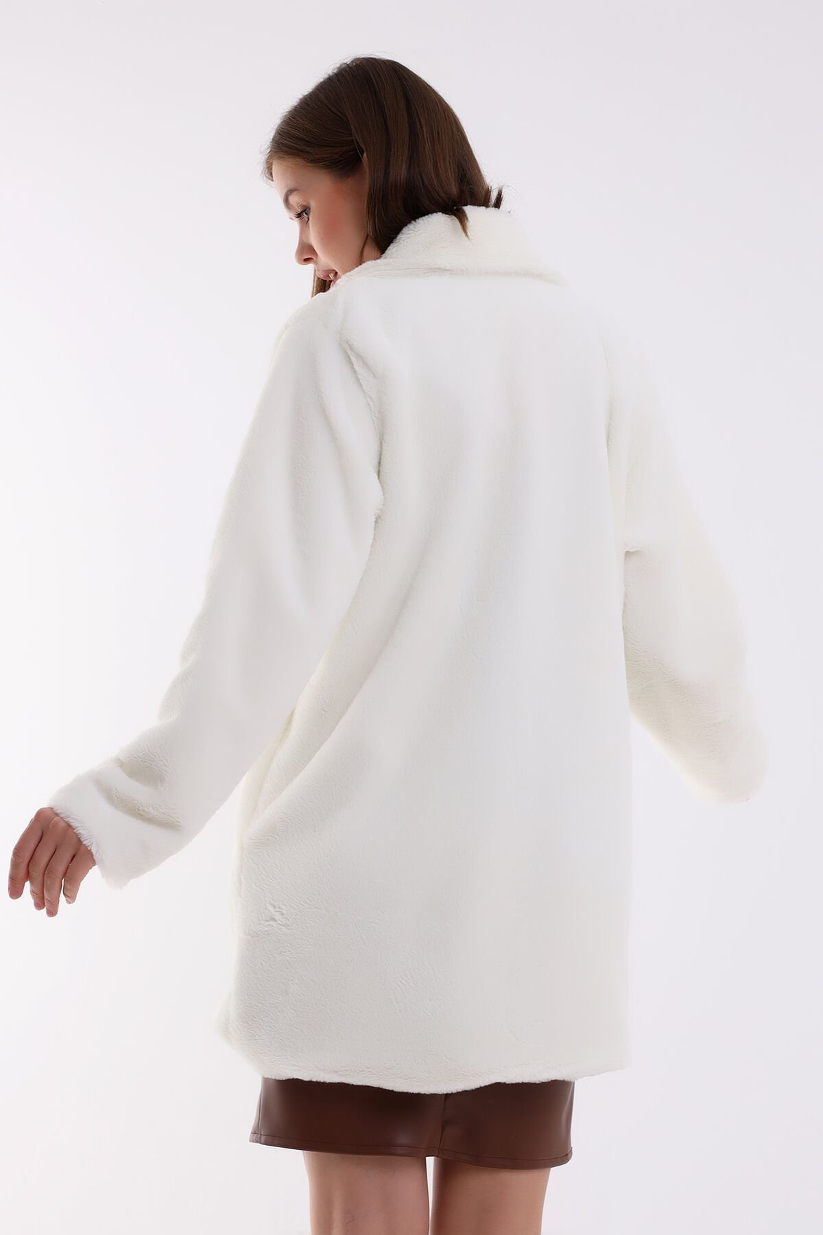 Kadın İçi Astarlı Peluş Ceket Kaban M - BEYAZ