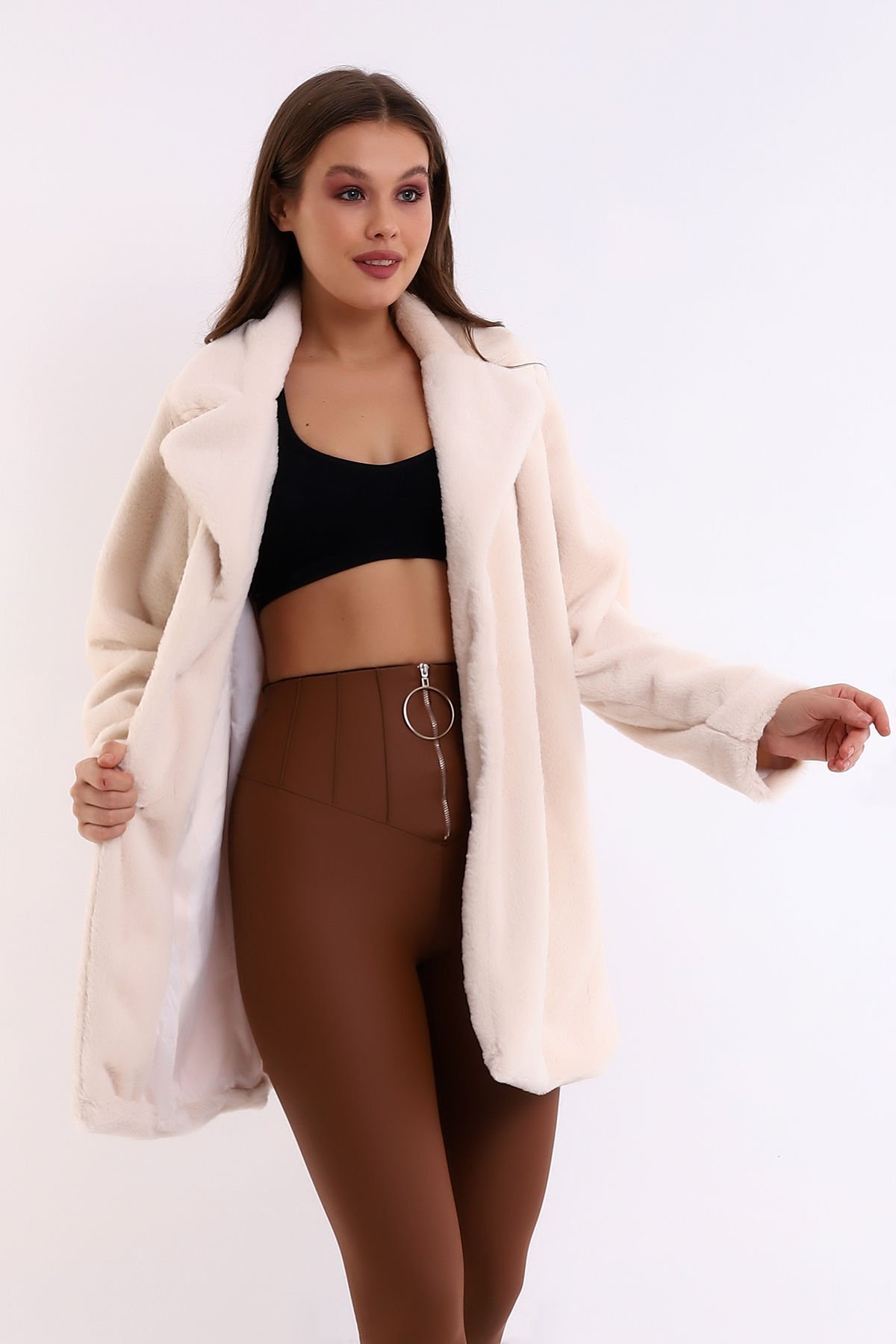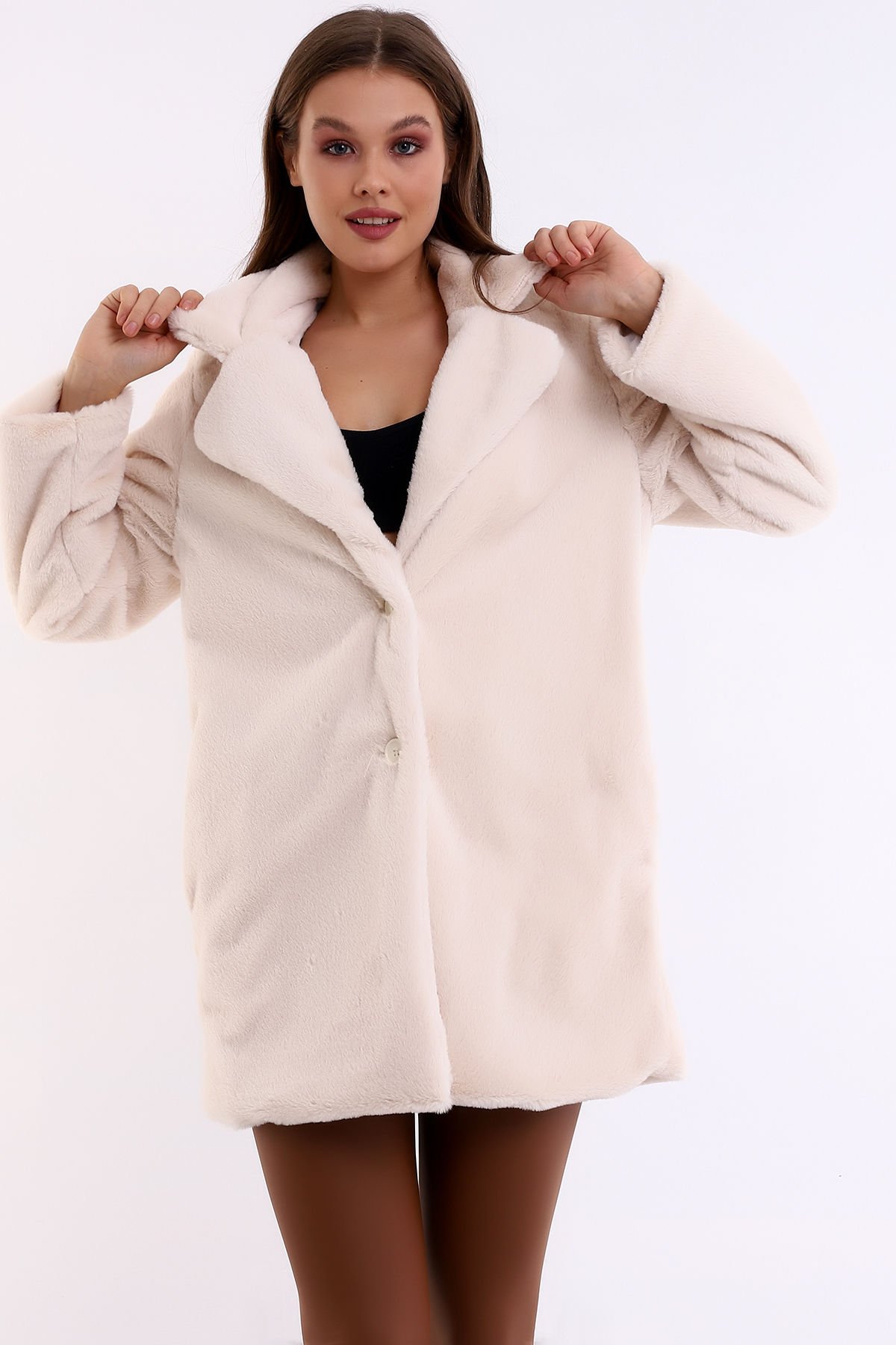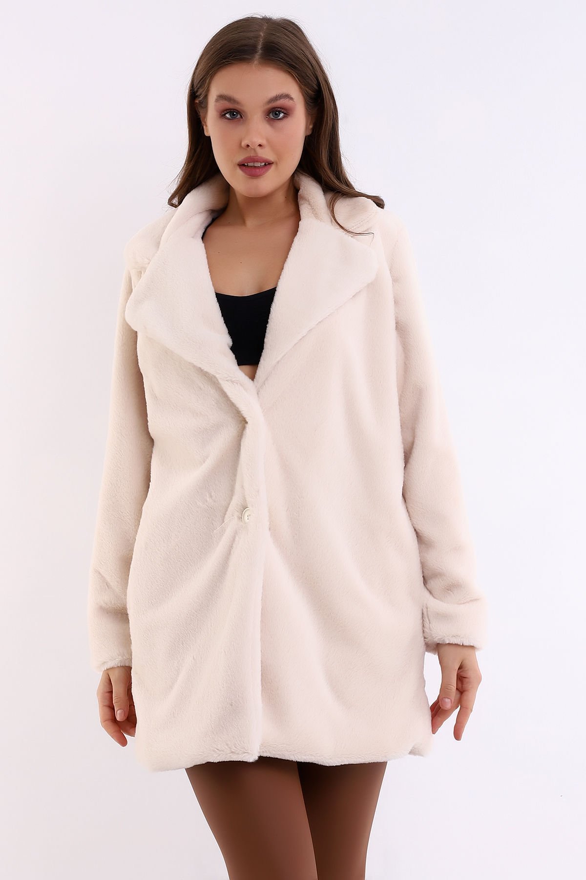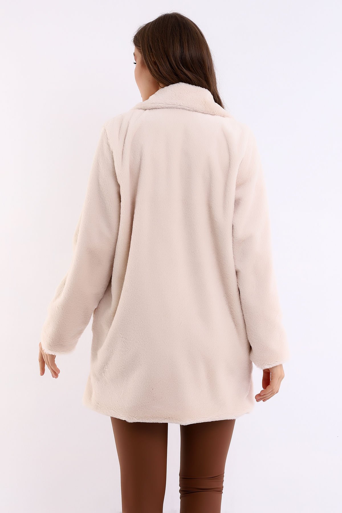 Kadın İçi Astarlı Peluş Ceket Kaban XL - BEJ