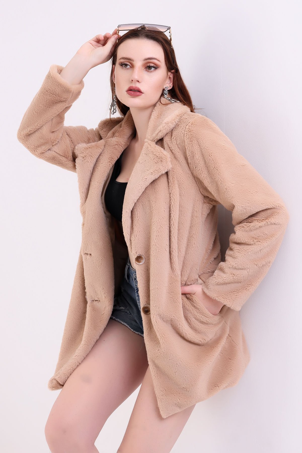 Düğmeli kapama şekli ve ceket yaka formu ile öne çıkan bu kadın peluş ceket, şık ve gece kombinlerinde zarif bir duruş sergiler. Regular kalıbı ve orta kalınlığı mevsim boyunca rahatlık sunar.