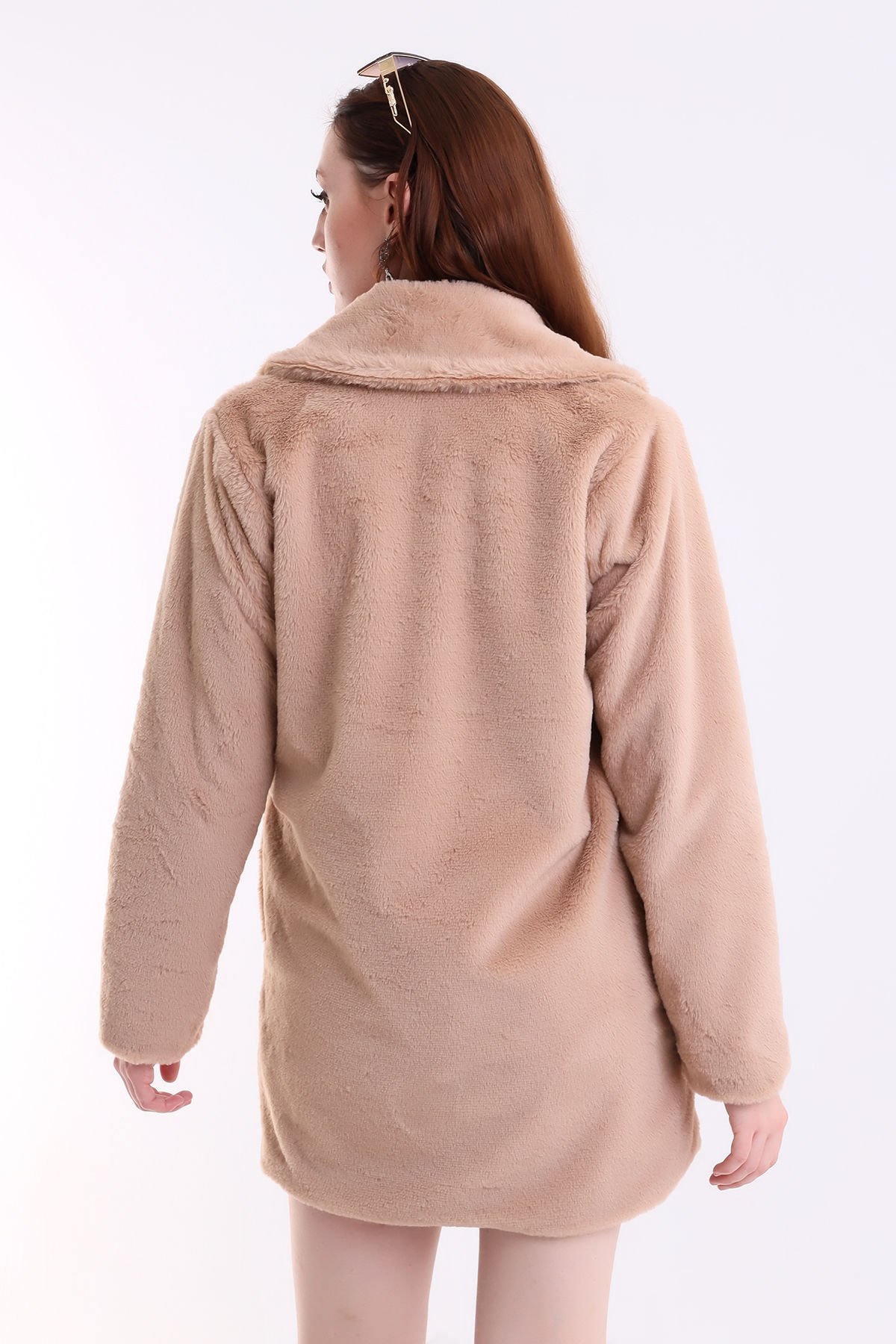 Kadın İçi Astarlı Peluş Ceket Kaban XL - KAHVE