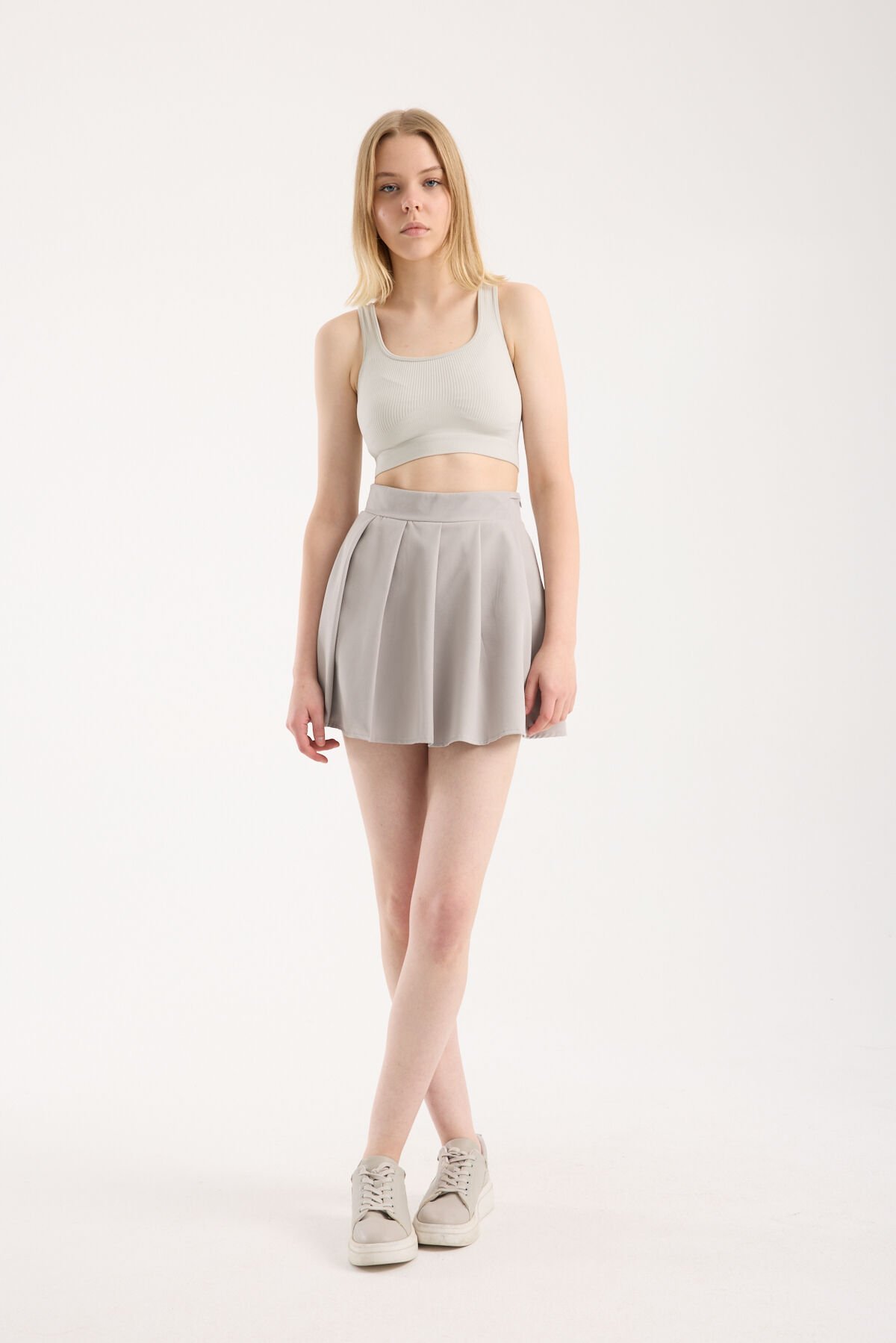 Kadın Pileli Önden Etek Arka Şortlu Özel Üretim Etek 2477 L - AÇIK GRİ