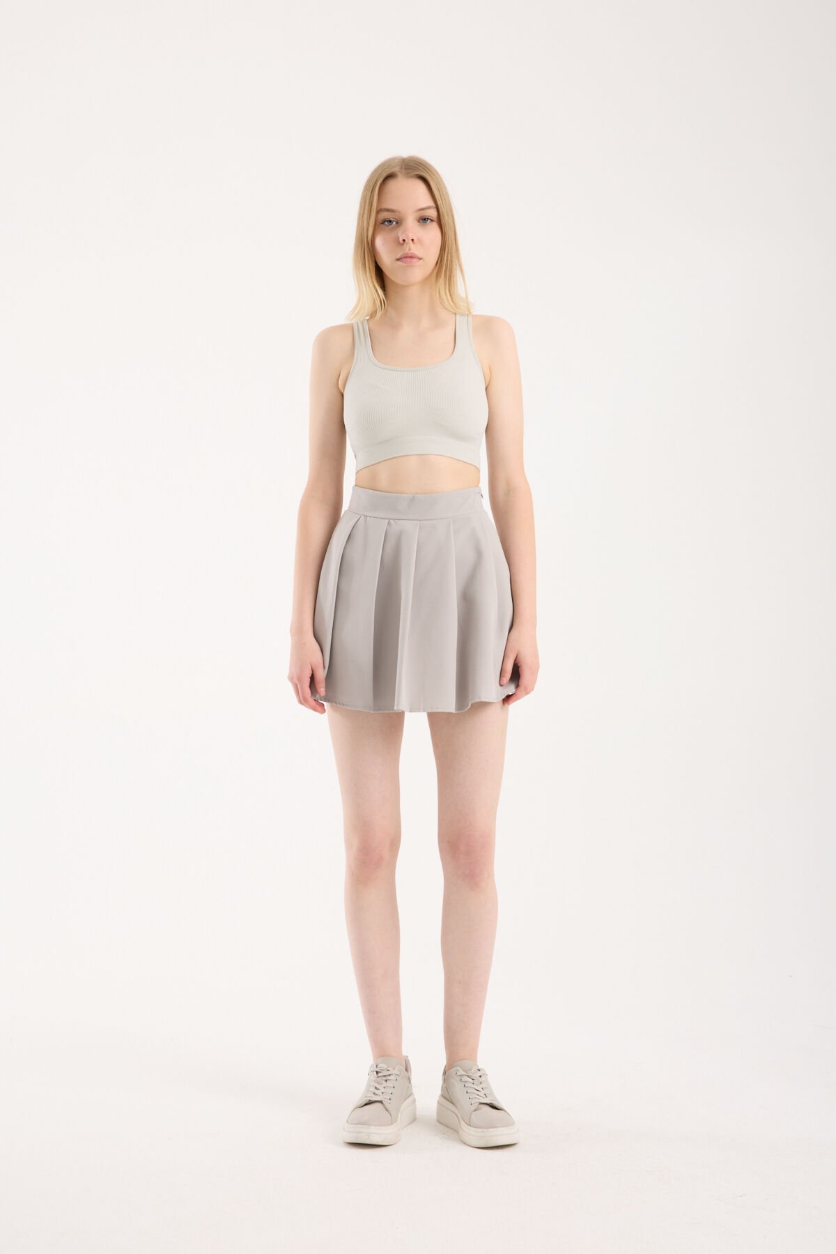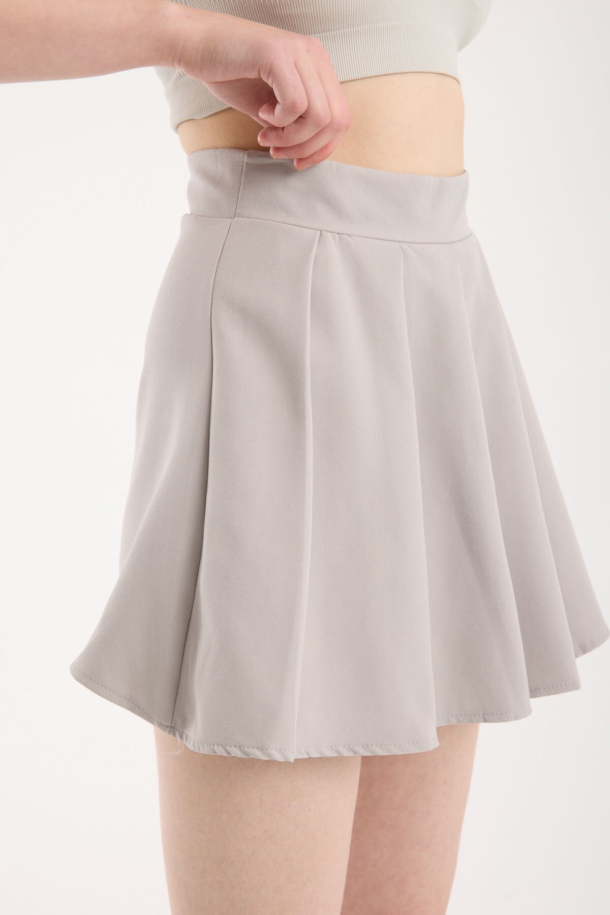 Kadın Pileli Önden Etek Arka Şortlu Özel Üretim Etek 2477 S - AÇIK GRİ