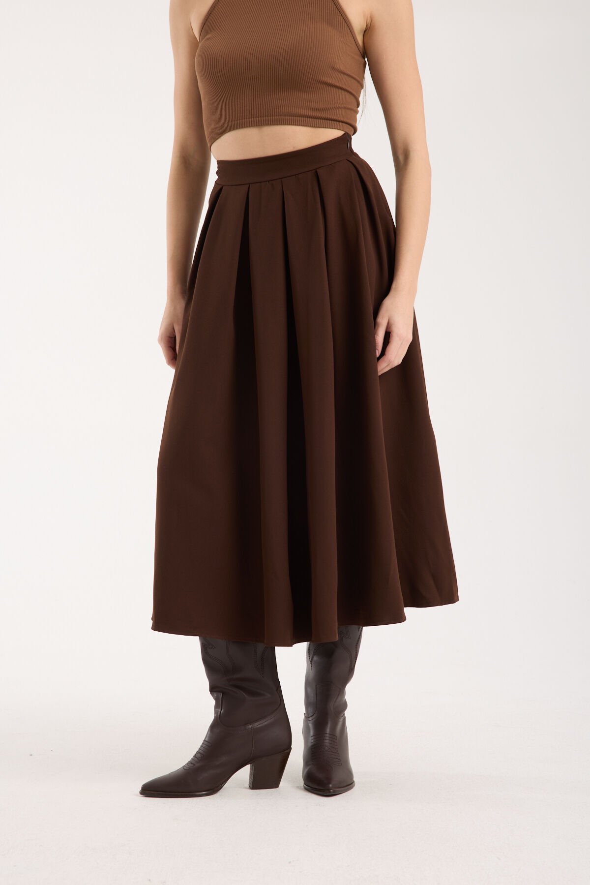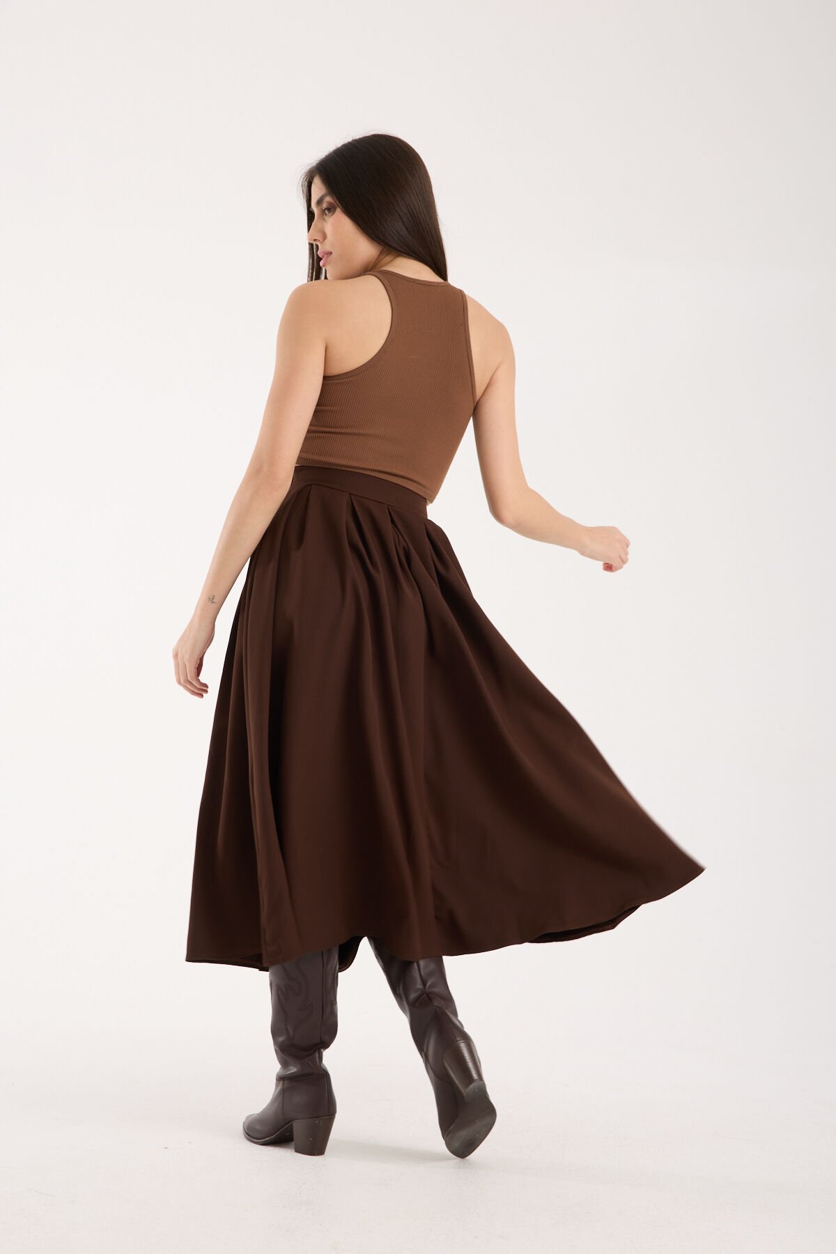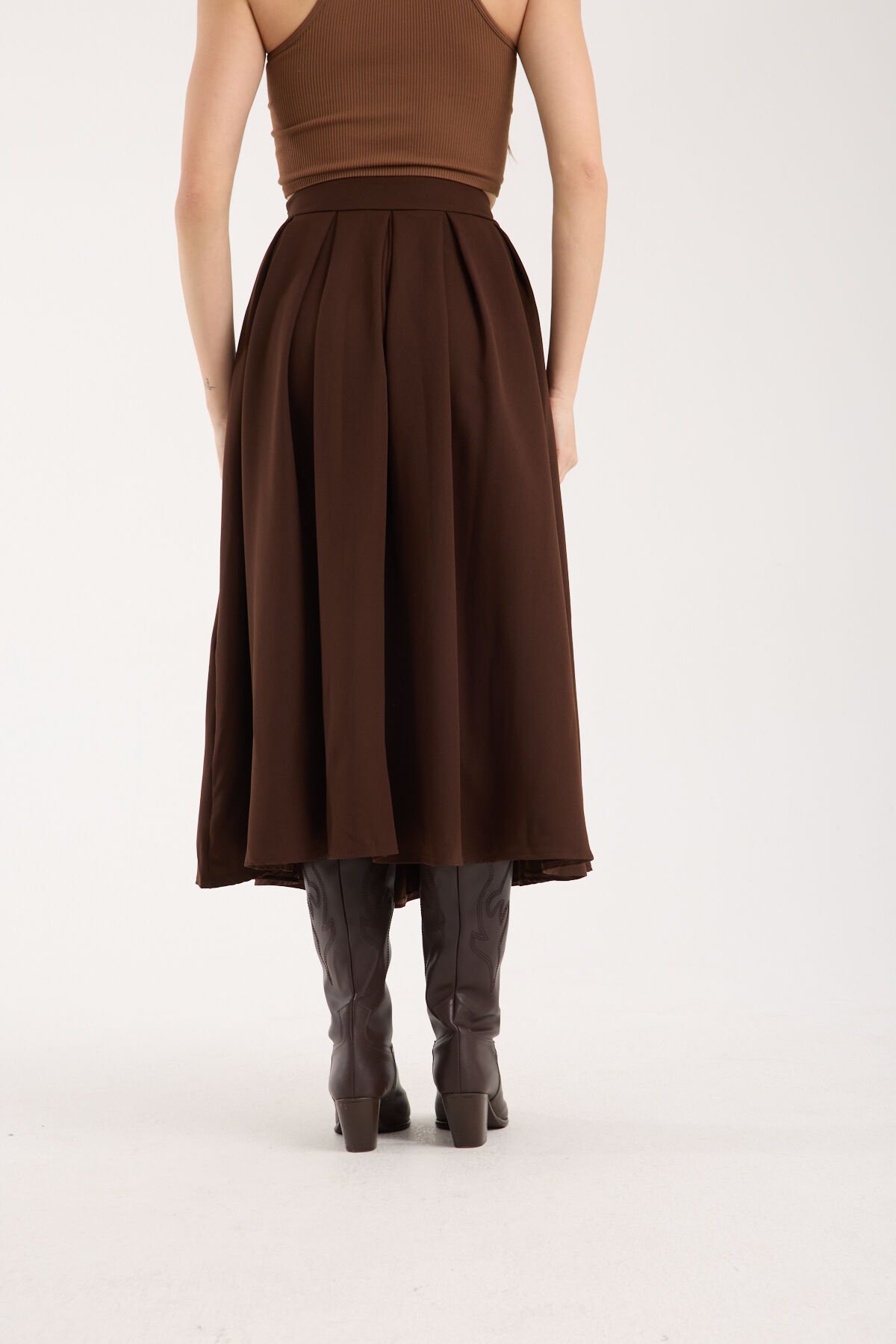 Kadın 91cm Pileli Uzun A Kesim Günlük Uzun Etek 2488 L - KAHVERENGİ