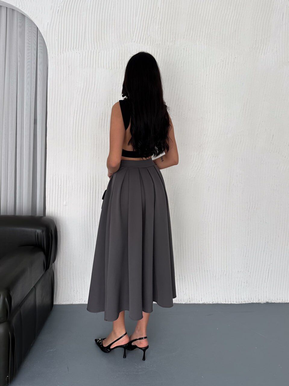 Kadın 91cm Pileli Uzun A Kesim Günlük Uzun Etek 2488 XL - KOYU GRİ