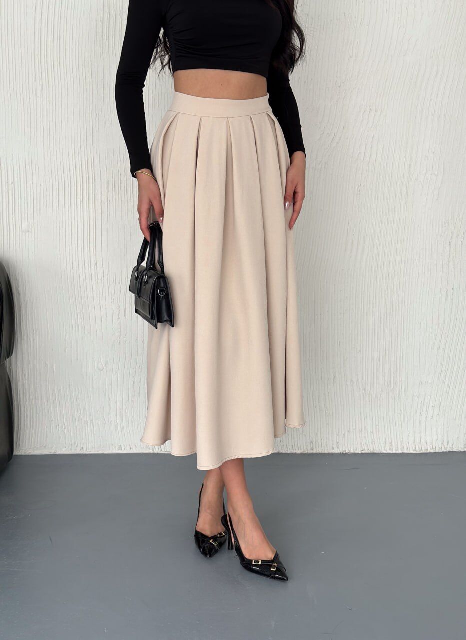 Kadın 91cm Pileli Uzun A Kesim Günlük Uzun Etek 2488 XL - KREM