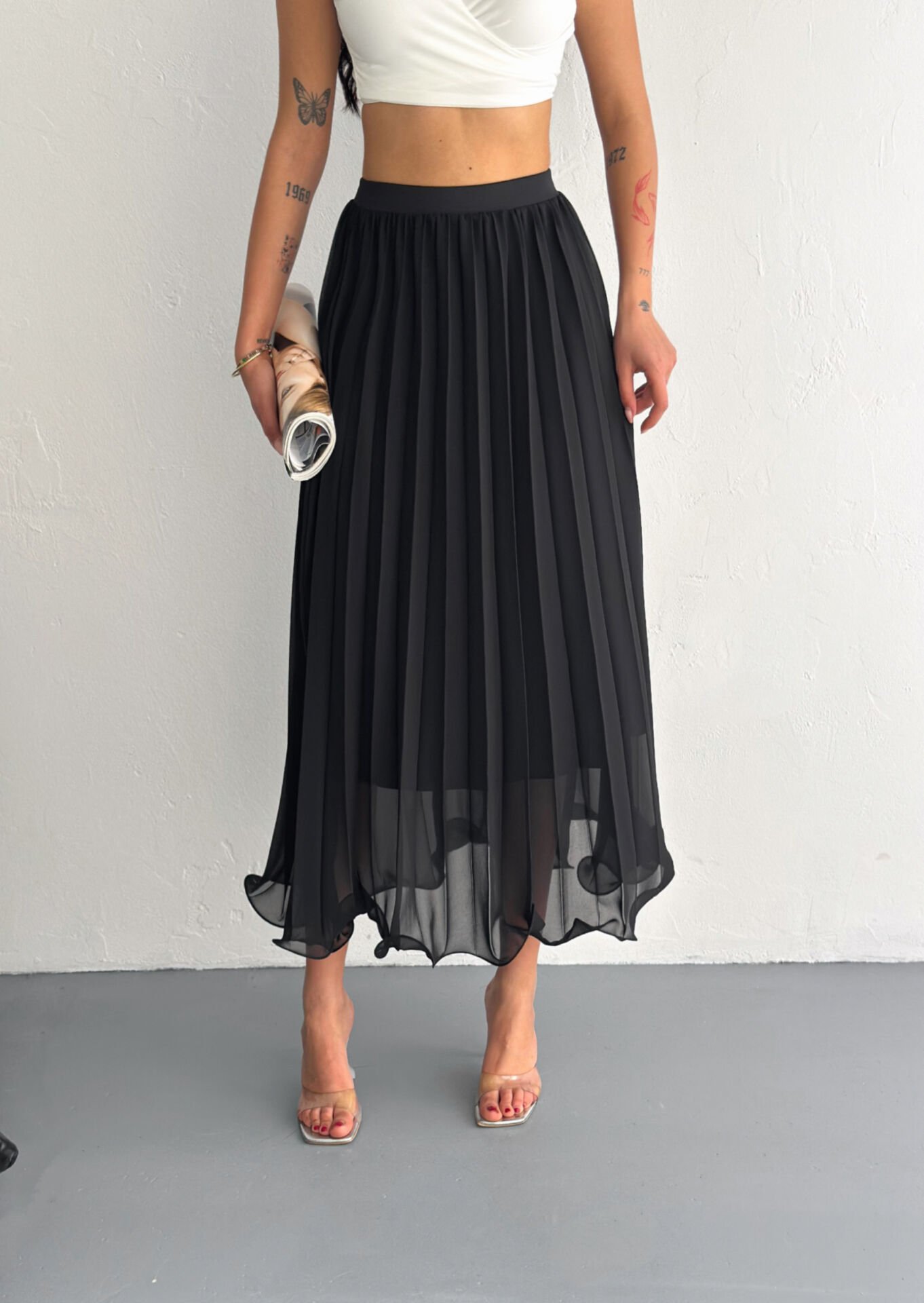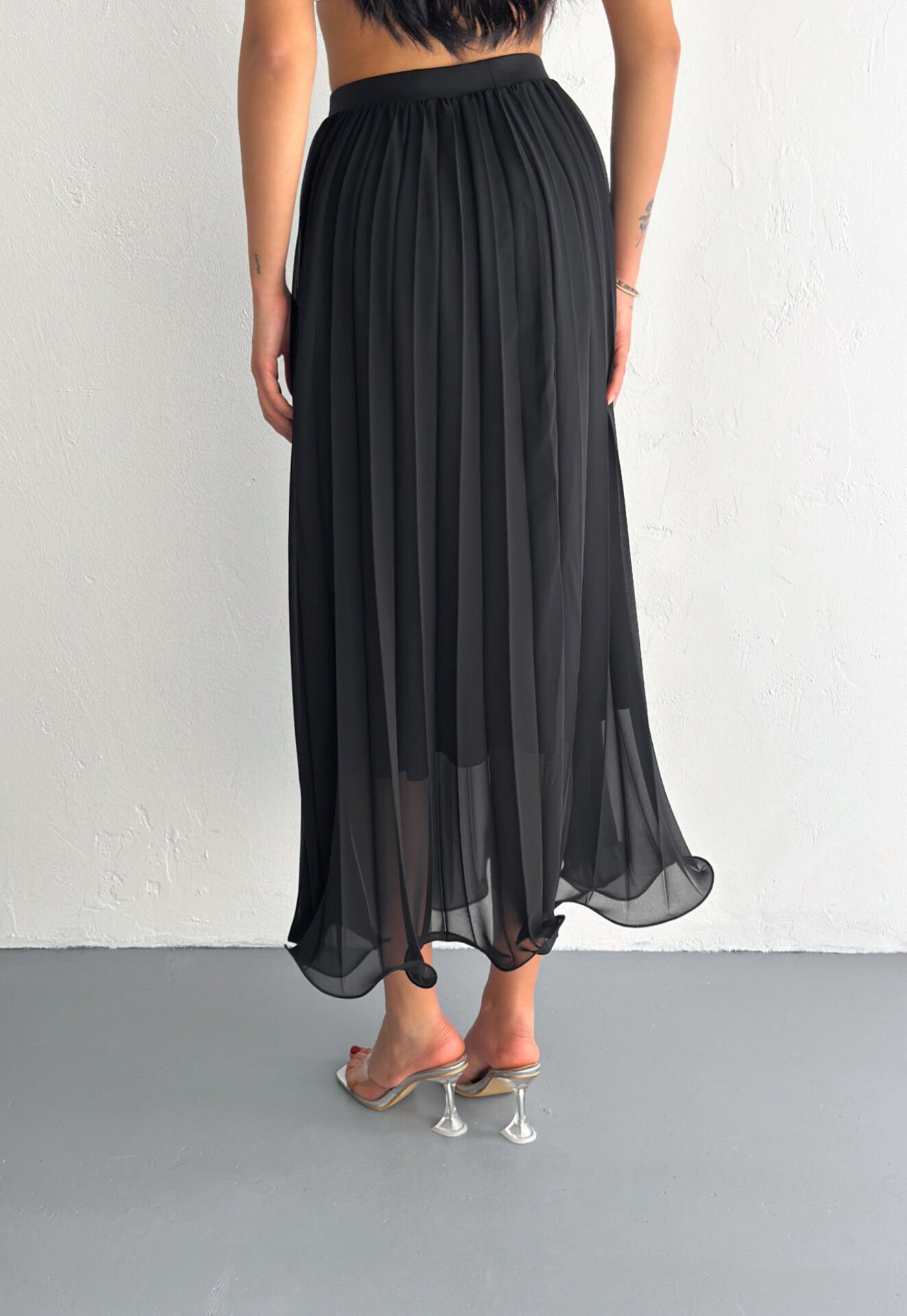 Kadın 88cm Ucu Dalgalı Piliseli Astarlı Tam Boy Tül Etek
