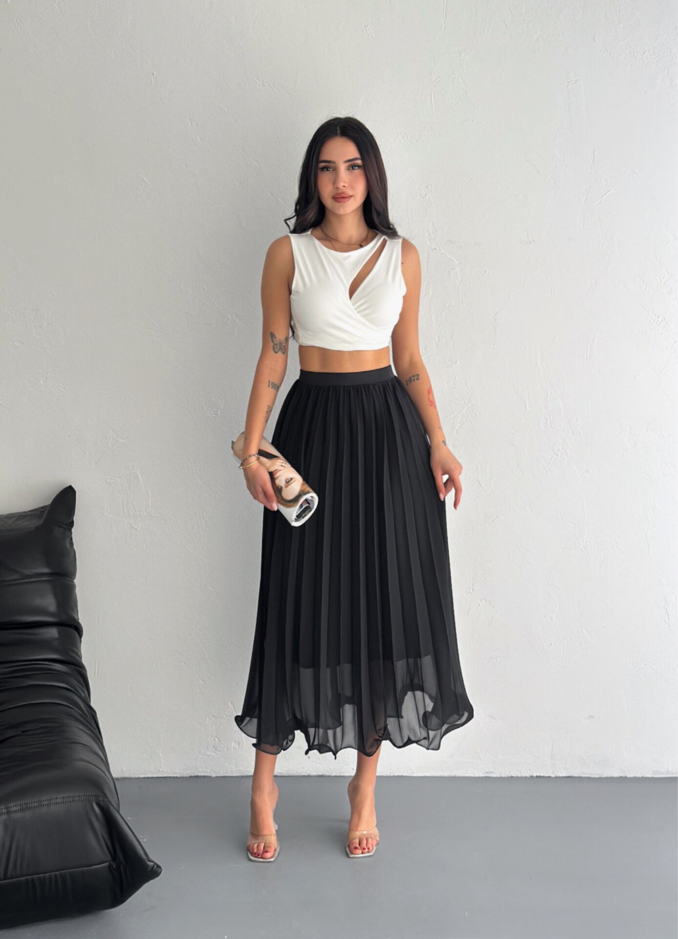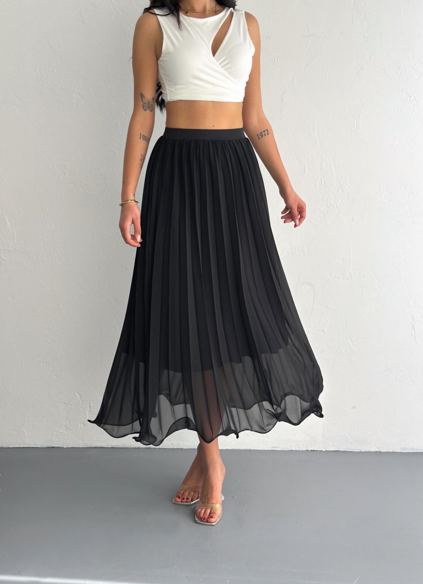 Kadın 88cm Ucu Dalgalı Piliseli Astarlı Tam Boy Tül Etek S - SİYAH