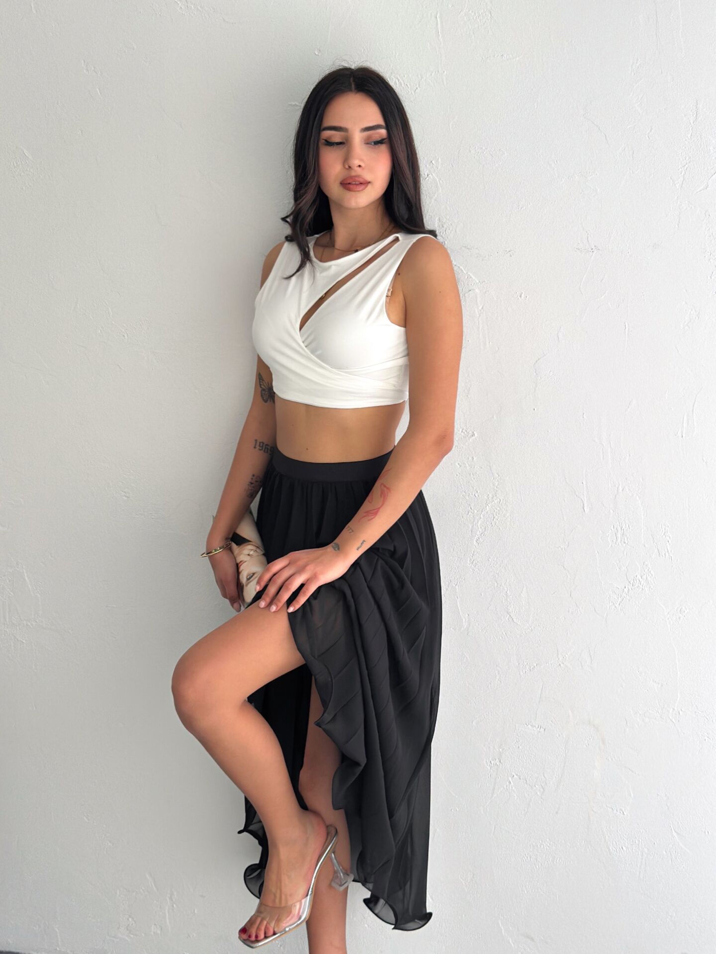 Beyaz uzun kloş etek modeli, dokuma kumaş yapısı ve akıcı siluetiyle hem zarif hem de modern bir görünüm sunar. Astarlı yapısı sayesinde iç gösterme problemi yaşatmaz ve gün boyu konforlu bir kullanım sağlar. Düz ve minimalist tasarımı, Basic koleksiyona ait sade şıklığı öne çıkarırken tül dokuma tipi eteğe hafif ve zarif bir duruş kazandırır. Kloş siluet, yürürken akıcı bir hareket sağlar ve her vücut tipine uyumlu bir form sunar. Normal bel yapısı ile rahat kullanım sağlayan etek, kemersiz formuyla doğal bir duruş elde etmenize yardımcı olur. Trend ortamlarda, özel günlerde ve günlük kullanımda kolayca kombinlenebilir. Winmoda tarafından satışa sunulan beyaz kloş etek, yaz-kış tüm sezonlarda tercih edilebilecek zamansız bir parçadır.