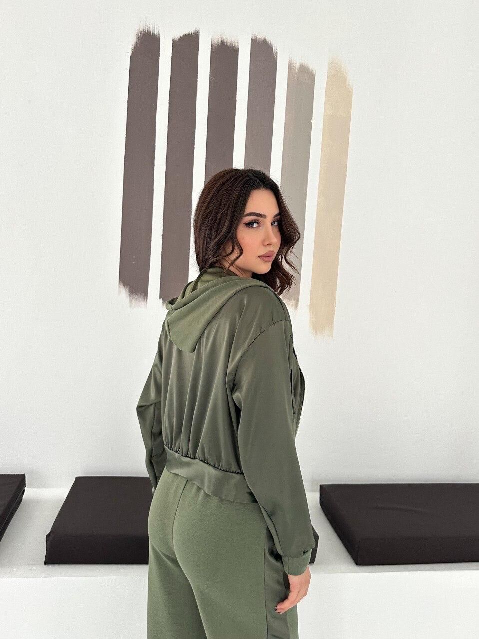 Premium Kadın Modal Baggy Eşofman Takımı Kapüşonlu Cepli Saten Detaylı Günlük 2634 S - HAKİ