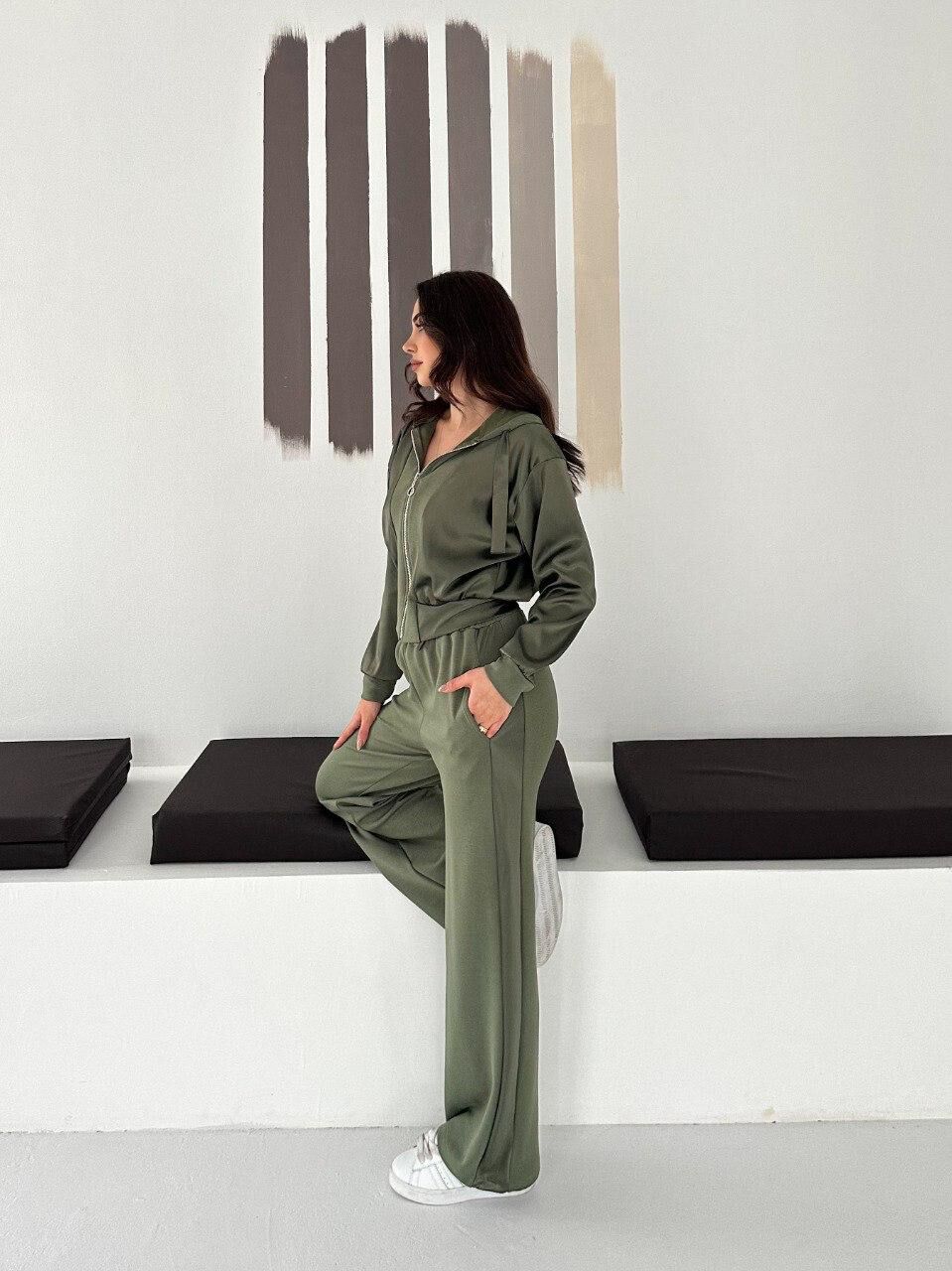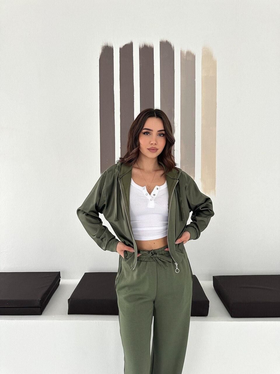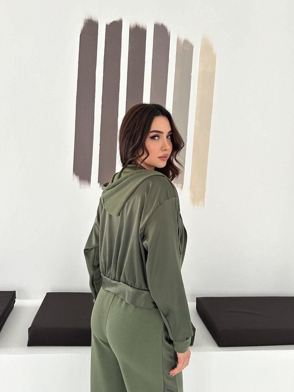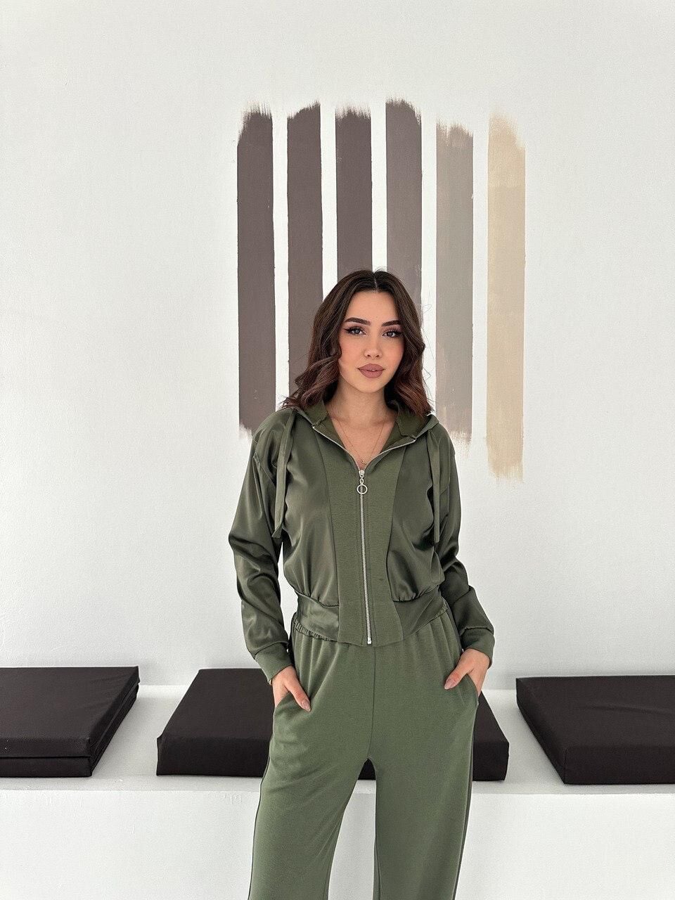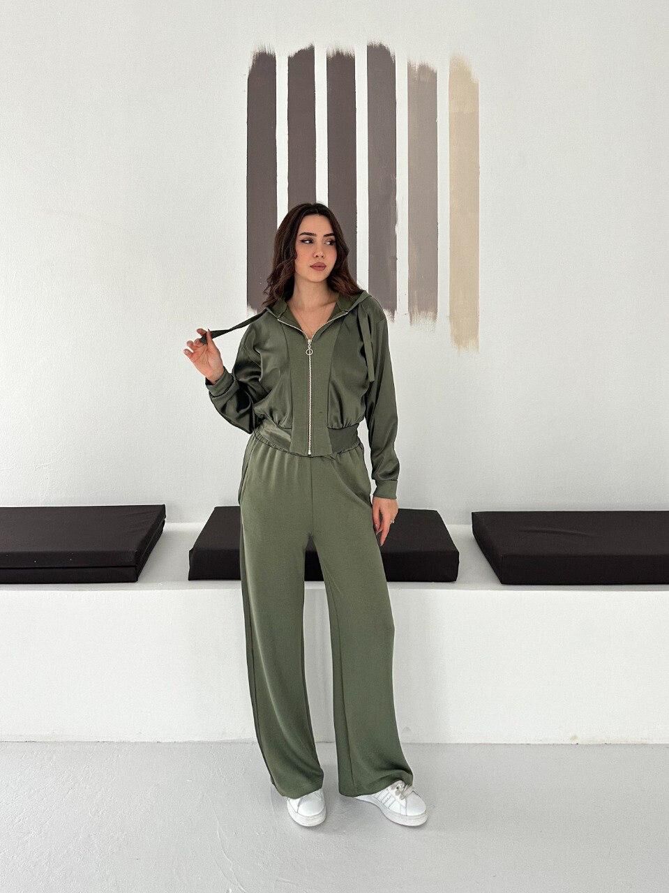 Premium Kadın Modal Baggy Eşofman Takımı Kapüşonlu Cepli Saten Detaylı Günlük XL - HAKİ