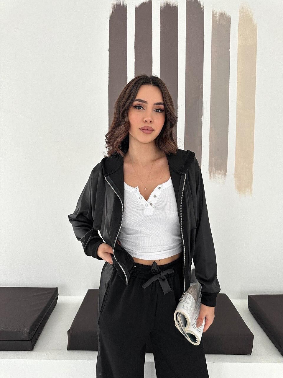 Full fermuar kapama özelliği kullanım kolaylığı sunar. Çift cepli tasarım günlük hayatta pratiklik sağlar. Saten detaylar premium görünüm kazandırarak ürünü klasik eşofman takımlarından ayırır.