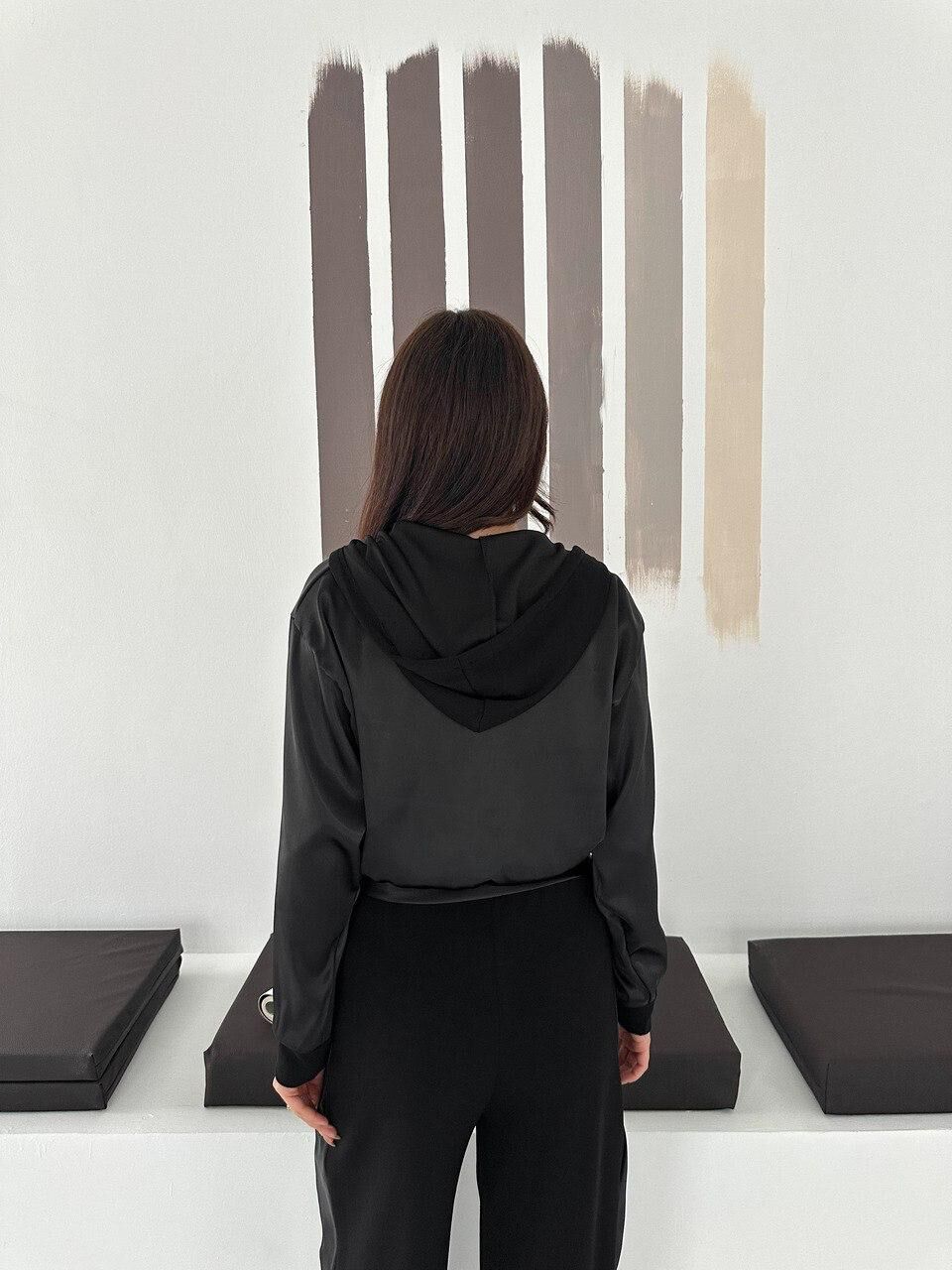 Premium Kadın Modal Baggy Eşofman Takımı Kapüşonlu Cepli Saten Detaylı Günlük XL - SİYAH