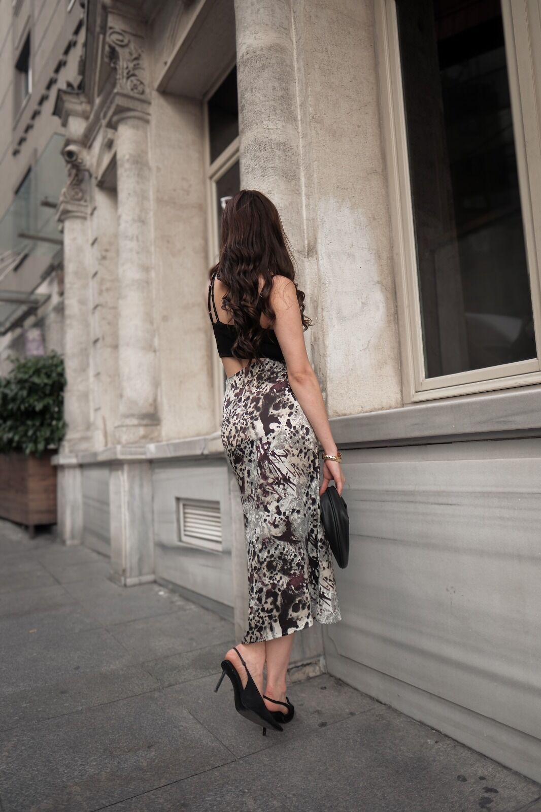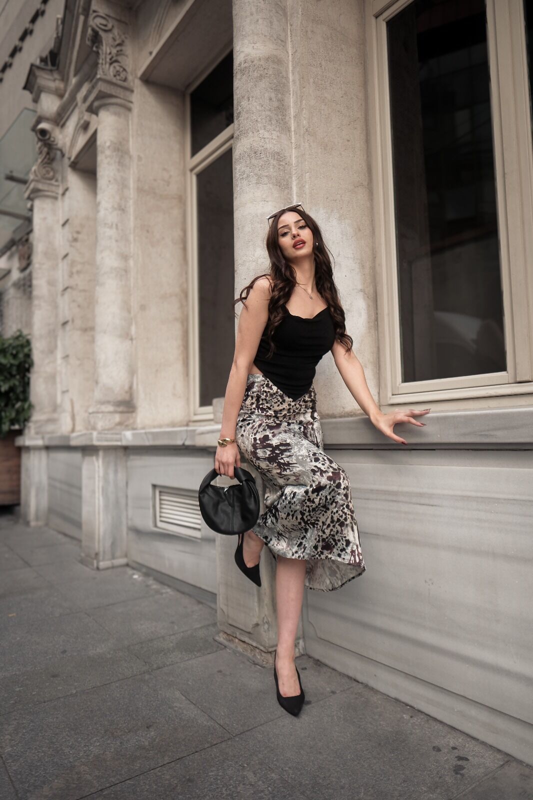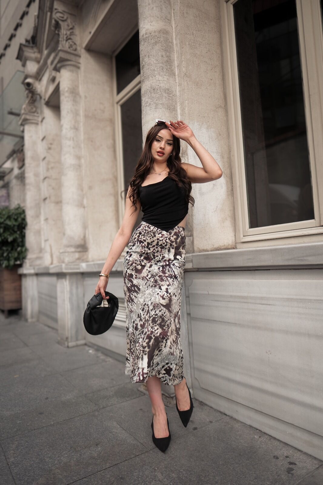 Saten etek modeli, çan ve kloş kesimiyle hem zarif hem de akıcı bir siluet sunan modern bir tasarımdır. Yan fermuarlı kapama detayı sayesinde rahat bir kullanım sağlar. Özel imal edilmiş orta kalın saten dokuma kumaşı iç göstermez ve gün boyu konfor sağlar. Model içerisinde leopar desenli saten etek, zebra desenli saten etek ve çok renkli baskılı saten etek gibi farklı varyant seçenekleri yer almaktadır. Düz siyah saten etek sevenler için de sade ve şık seçenekler eklenmiştir. Tam beden ölçülerinde üretildiği için kendi bedeninizi güvenle tercih edebilirsiniz. Hem günlük kombinlerde hem özel davetlerde kullanılabilecek çok yönlü bir modeldir. Winmoda tarafından satışa sunulan bu şık saten etek; kloş, çan, baskılı veya düz seçenekleriyle dolabınızın joker parçalarından biri olmaya adaydır.