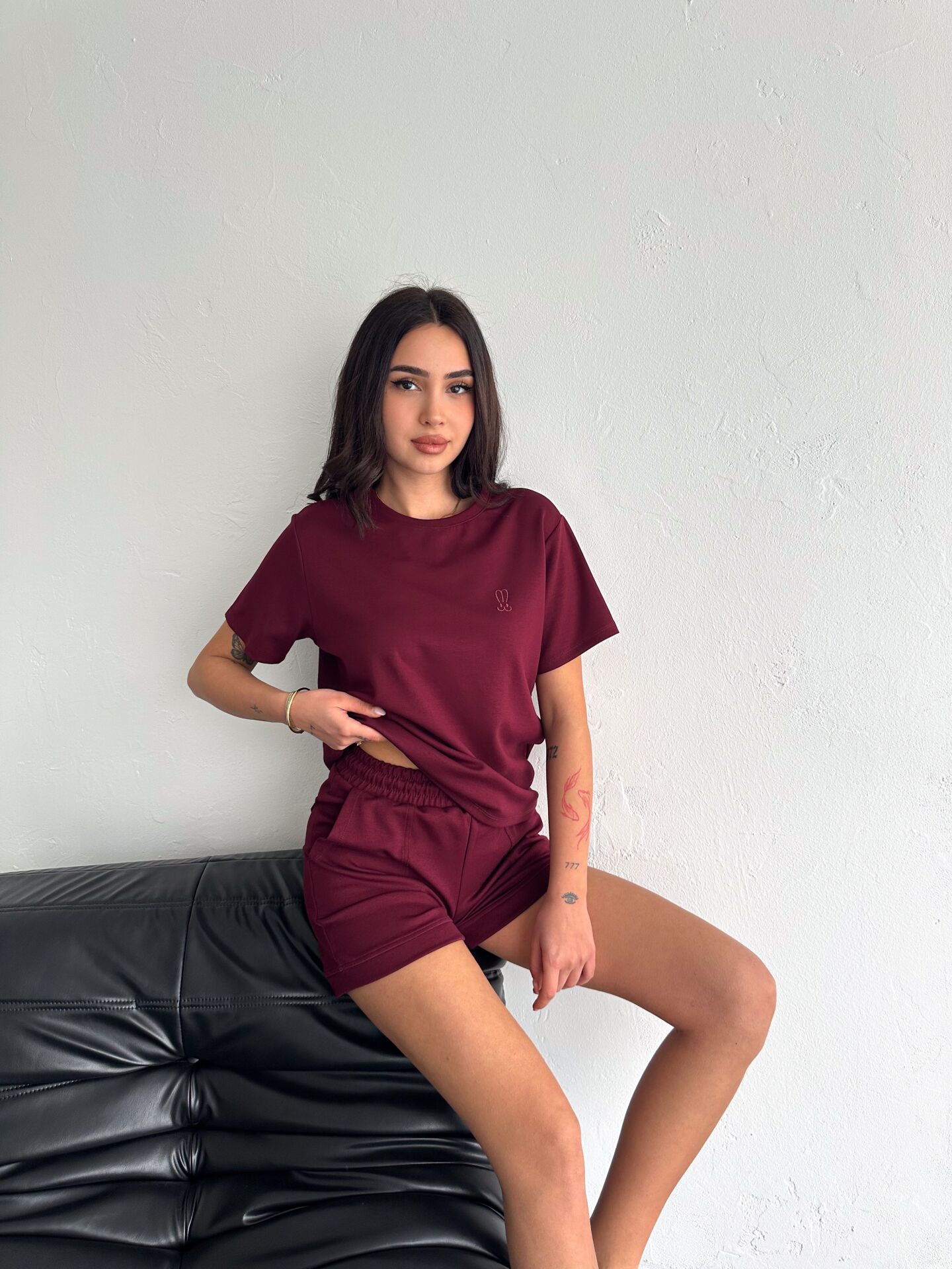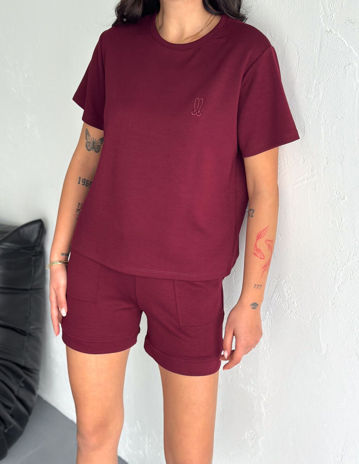 Kadın Tavşan NakışlıGünlük Kullanıma Uygun Şortlu Takım 2463 M - BORDO