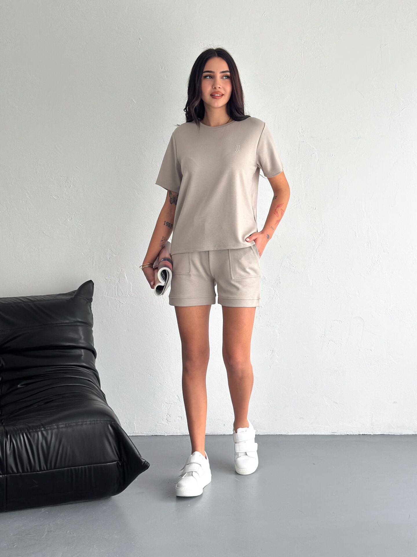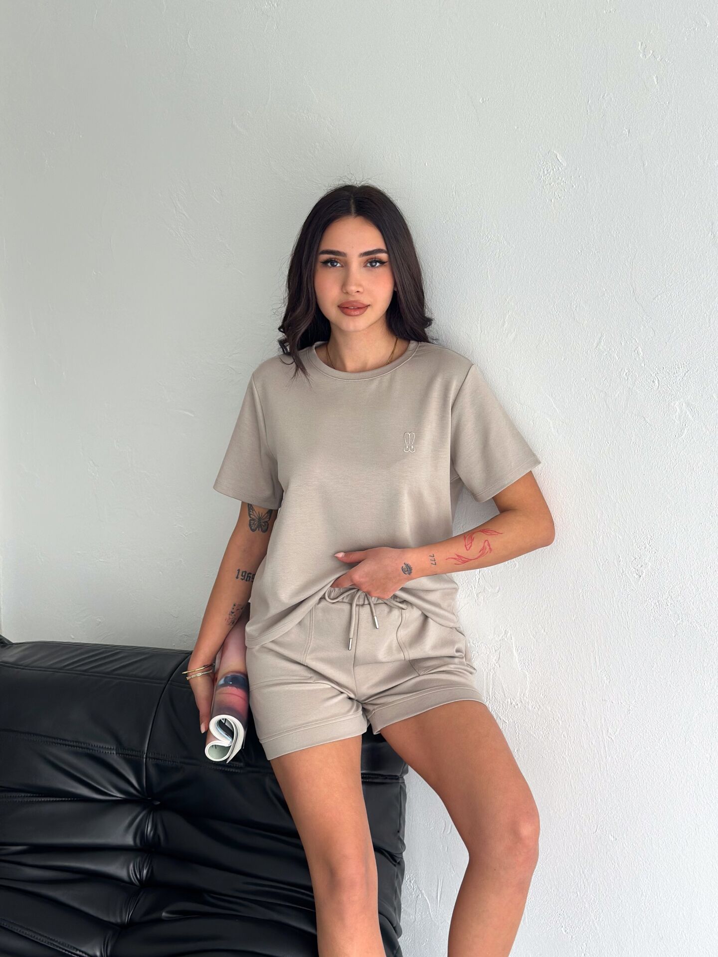 Kadın Tavşan NakışlıGünlük Kullanıma Uygun Şortlu Takım 2463 XL - BEJ