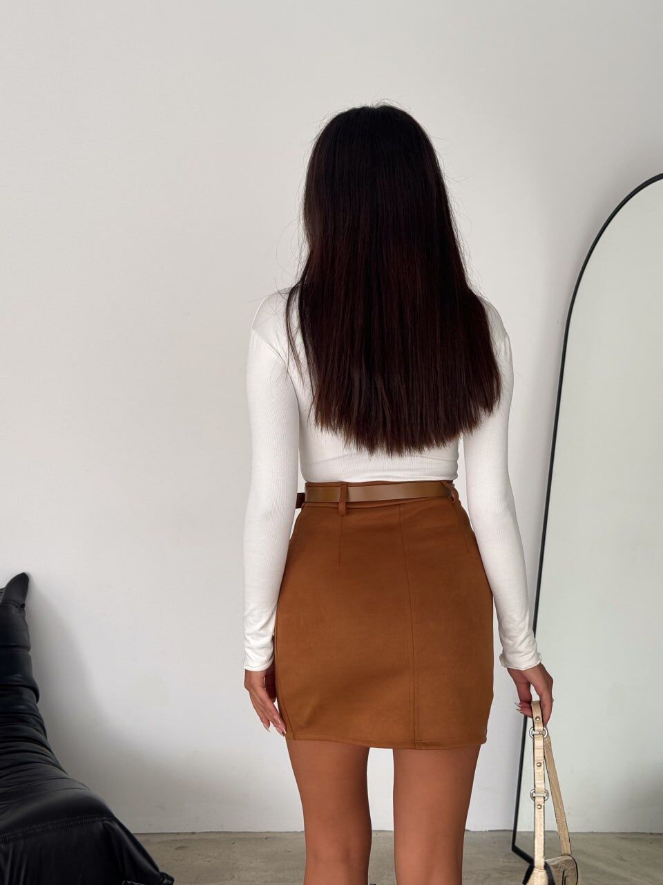 Kemerli süet mini etek, polyester ve likra karışımlı örme süet kumaşıyla hem dayanıklılık hem esneklik sağlar. Şık/Gece konseptine uygun zarif tasarımıyla özellikle kış aylarında tercih edilen modern ve etkileyici bir parçadır.