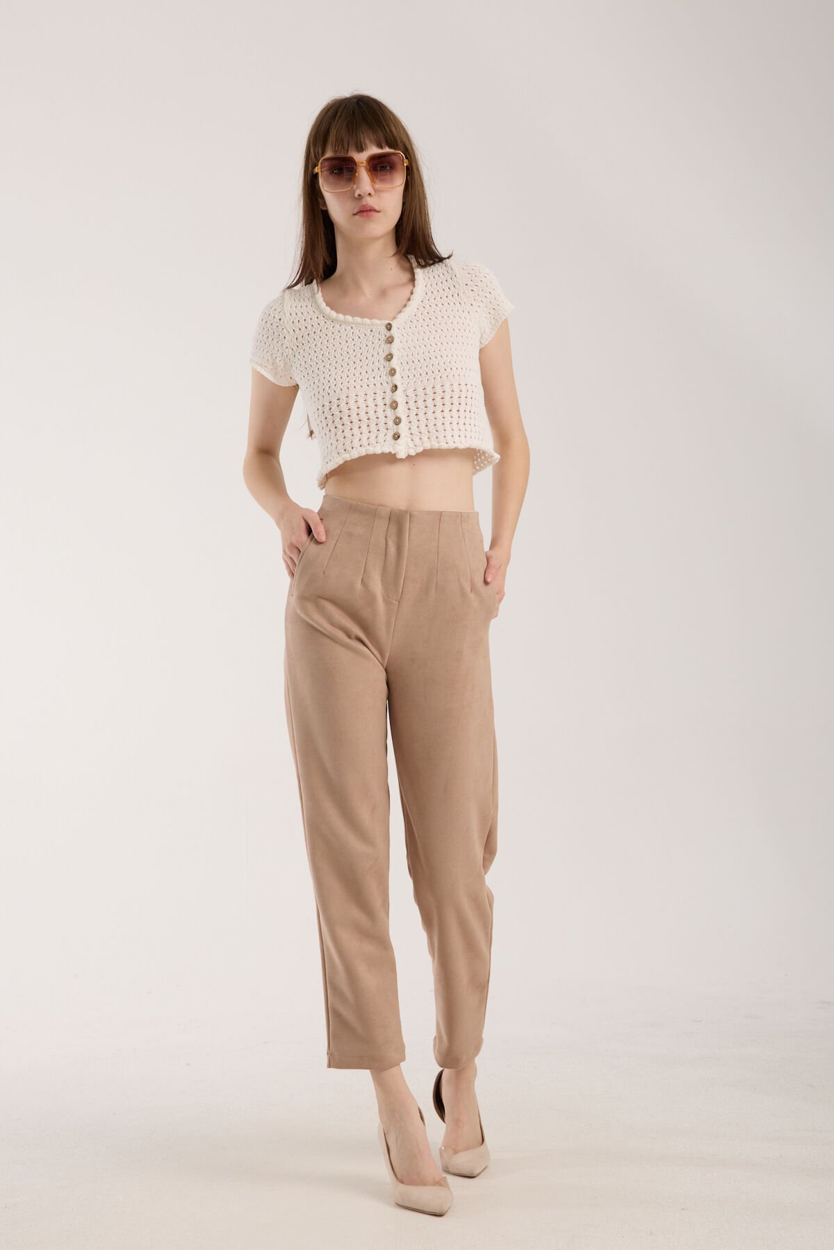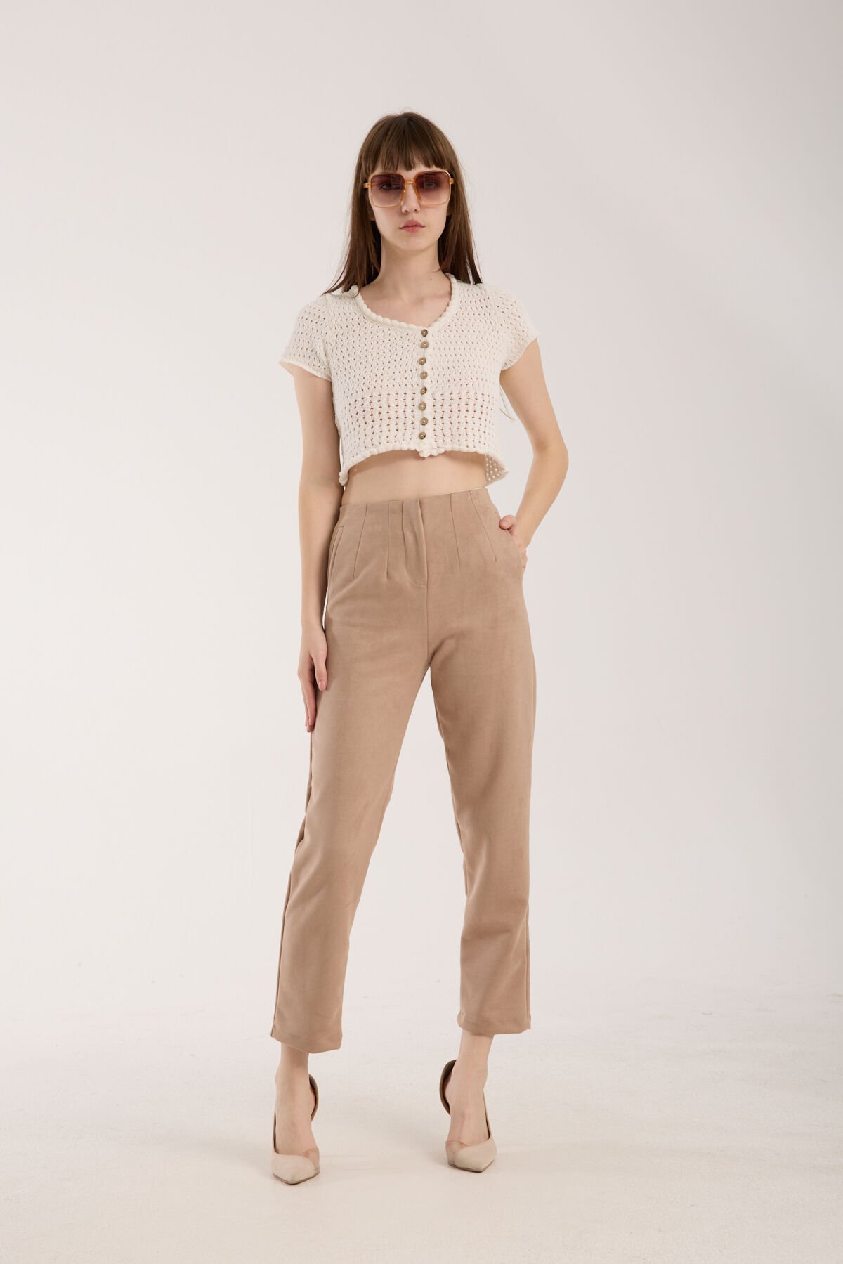Kadın Pensli Süet Cepli Pantolon WM 2XL - EKRU