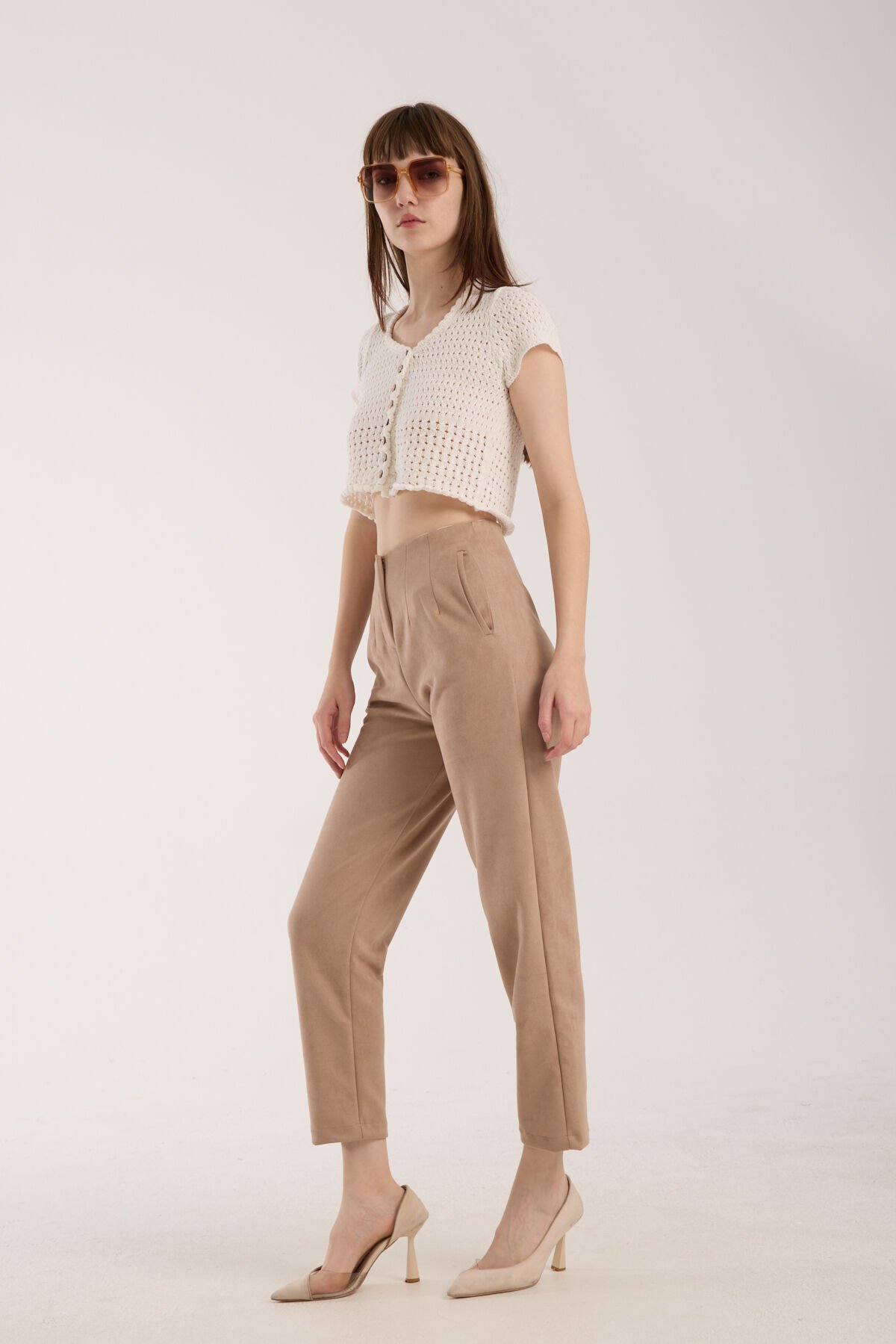 Kadın Pensli Süet Cepli Pantolon WM M - EKRU