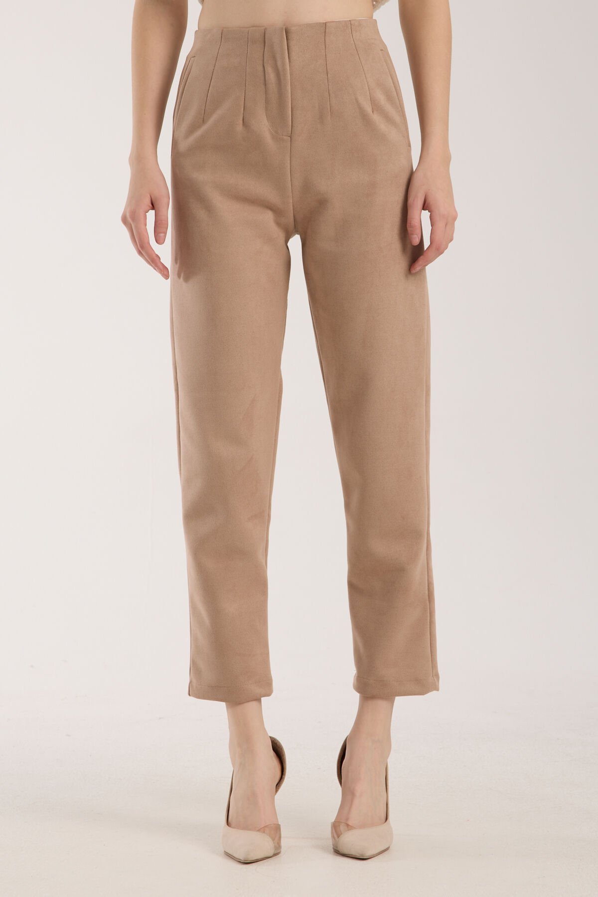 Kadın Pensli Süet Cepli Pantolon WM S - EKRU